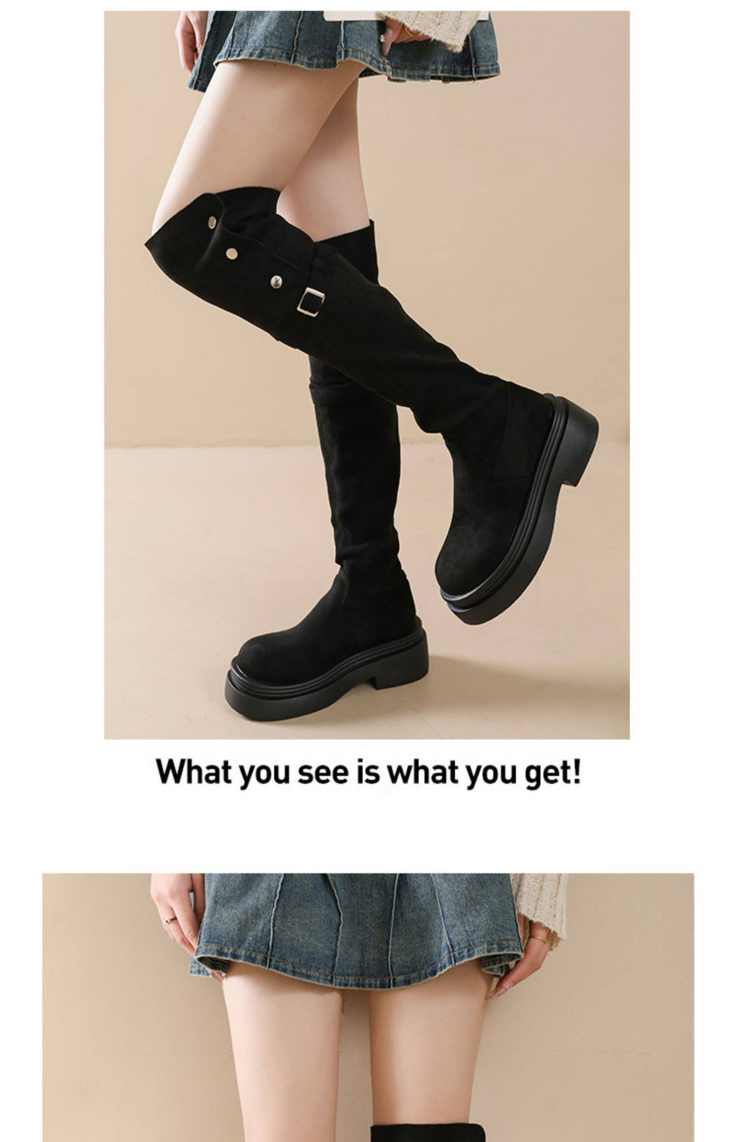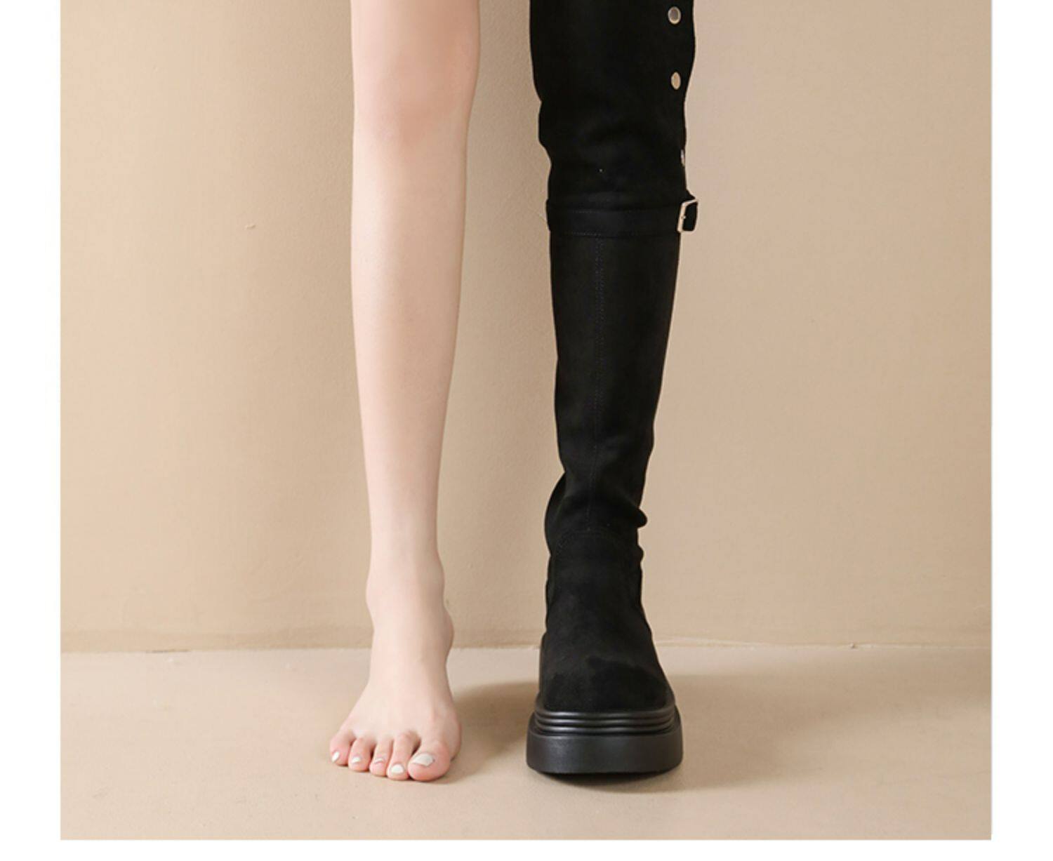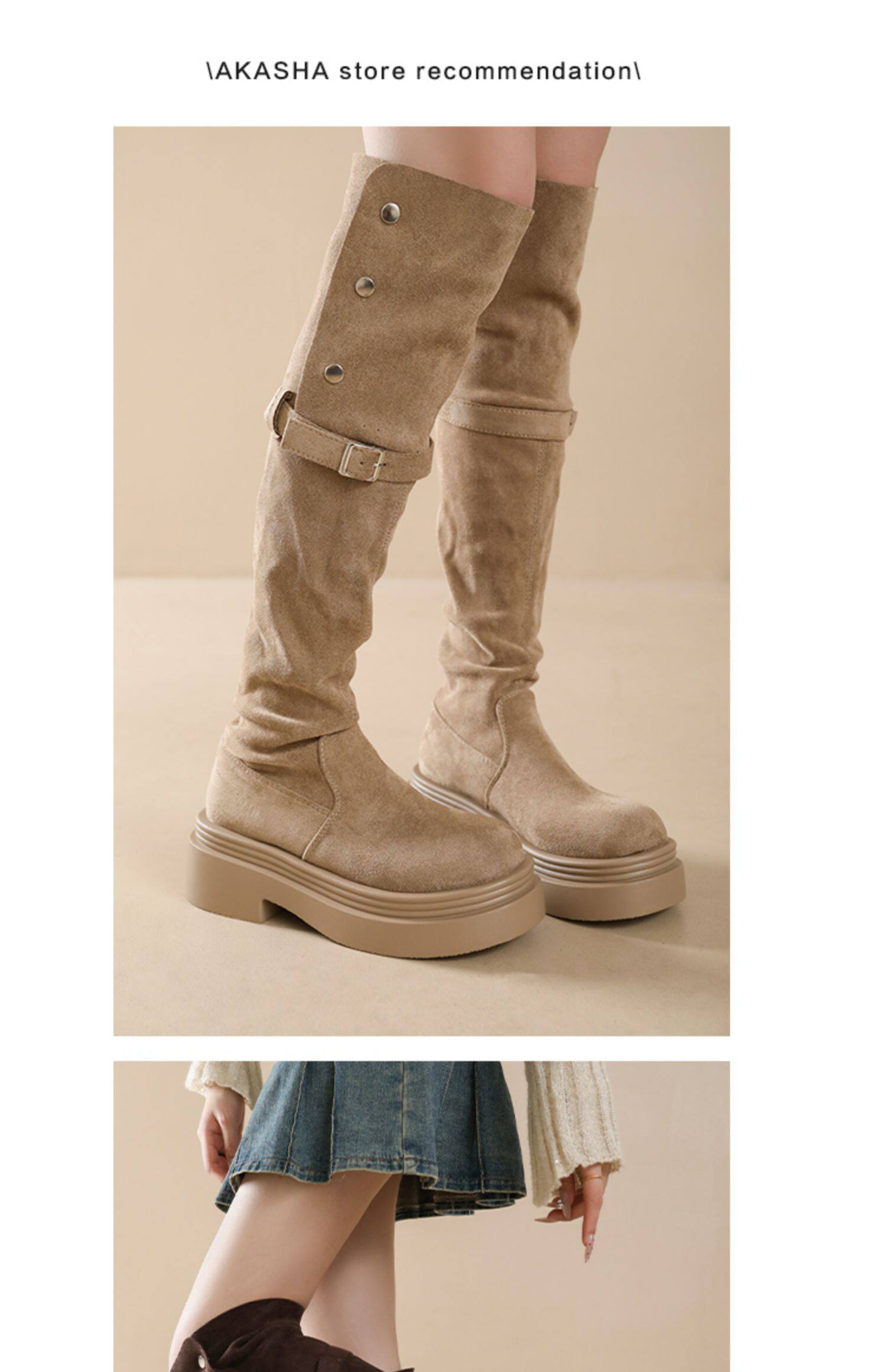 時尚百搭顯瘦長筒靴子女2025年春秋新款粗跟厚底增高過膝騎士靴子