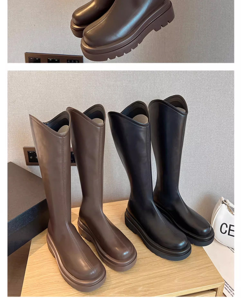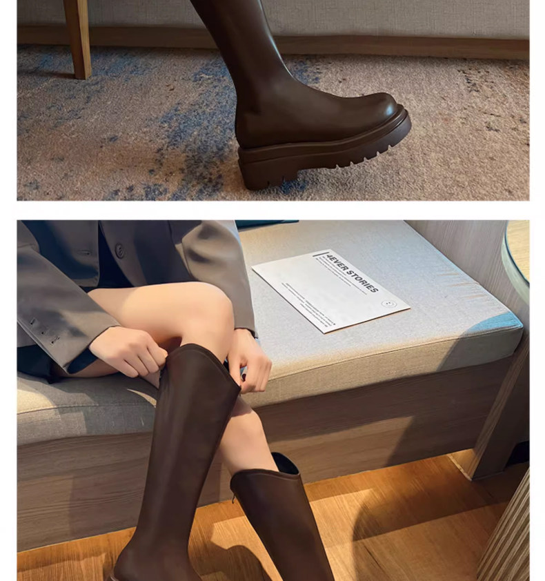 長筒靴女胖mm粗腿大碼長靴2026秋冬新款加寬高筒厚底大筒圍騎士靴