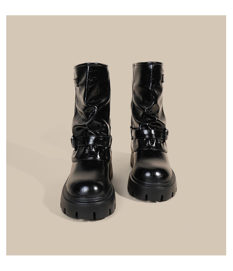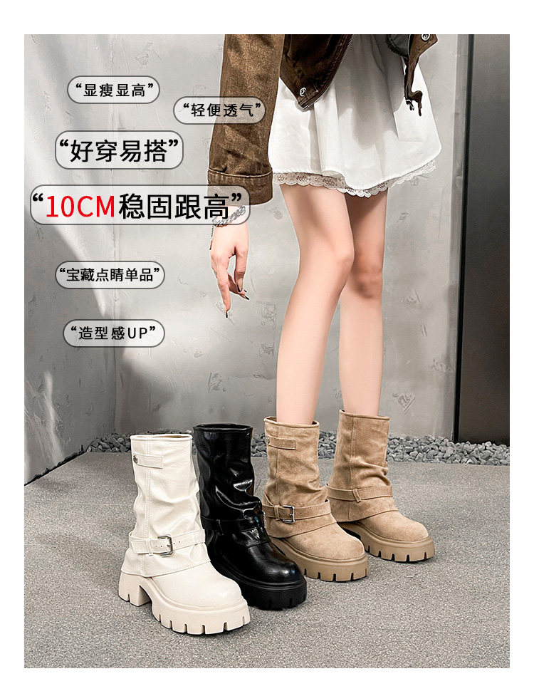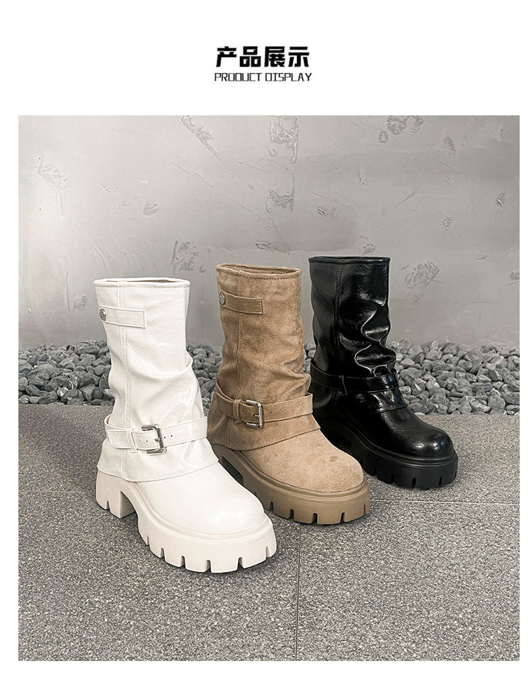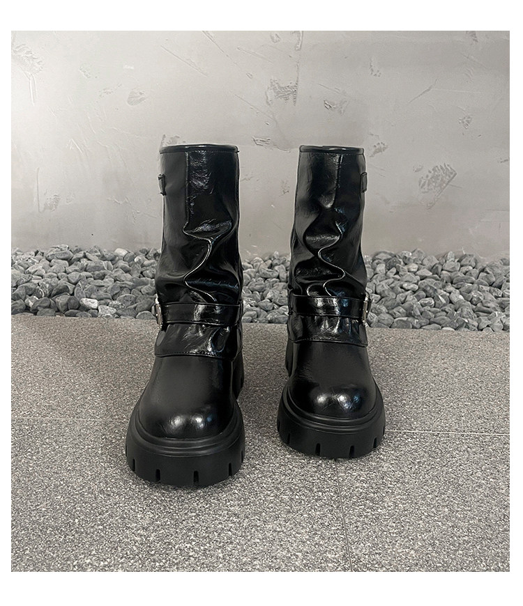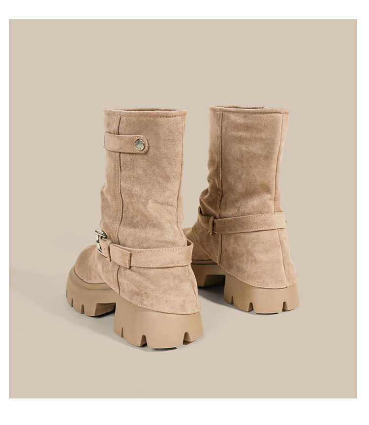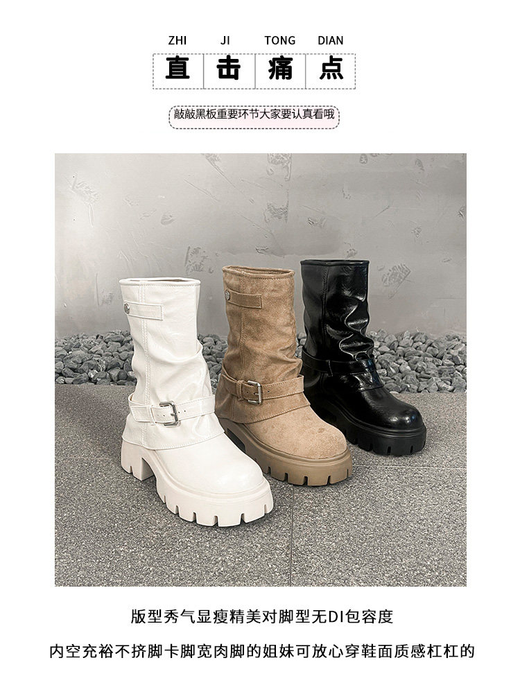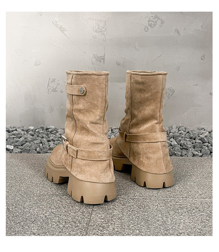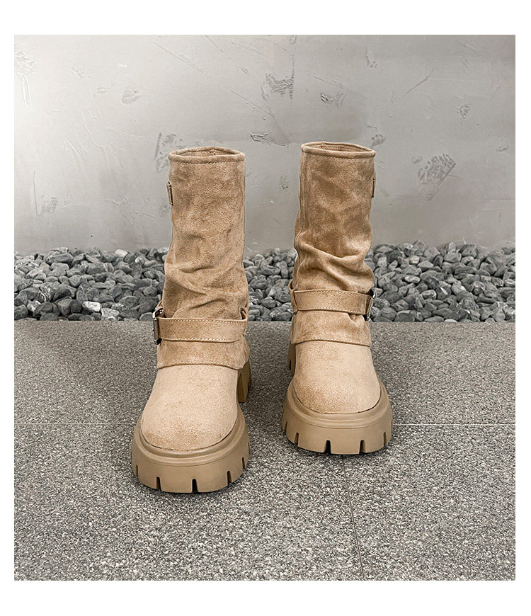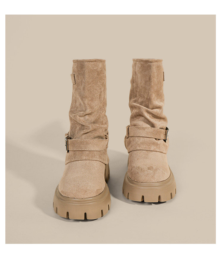 內增高廢土風馬丁靴女加絨2025新款粗跟顯瘦絨面褲琯褶皺堆堆短靴