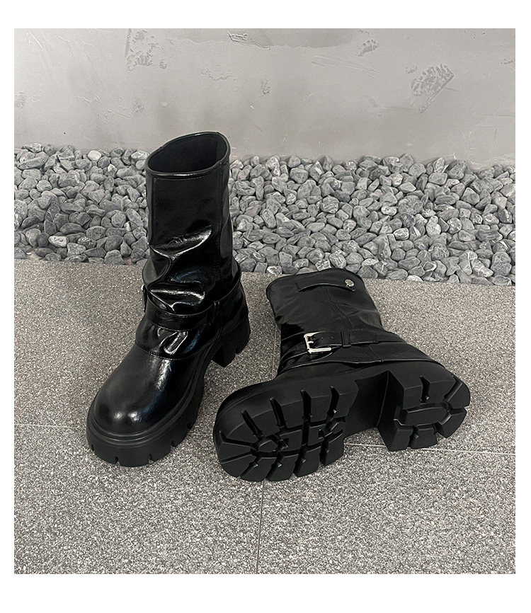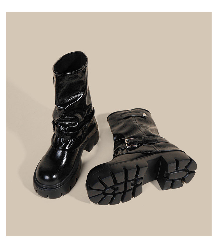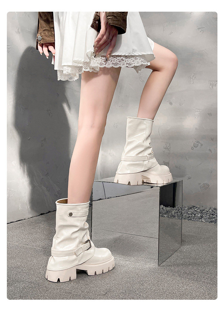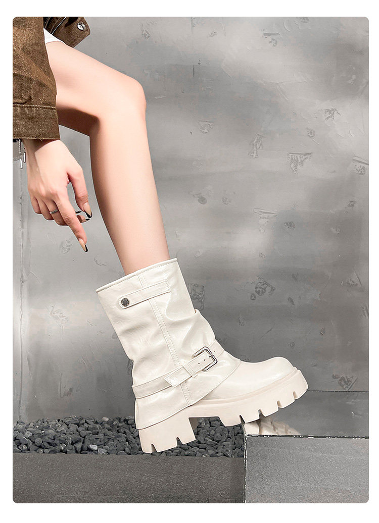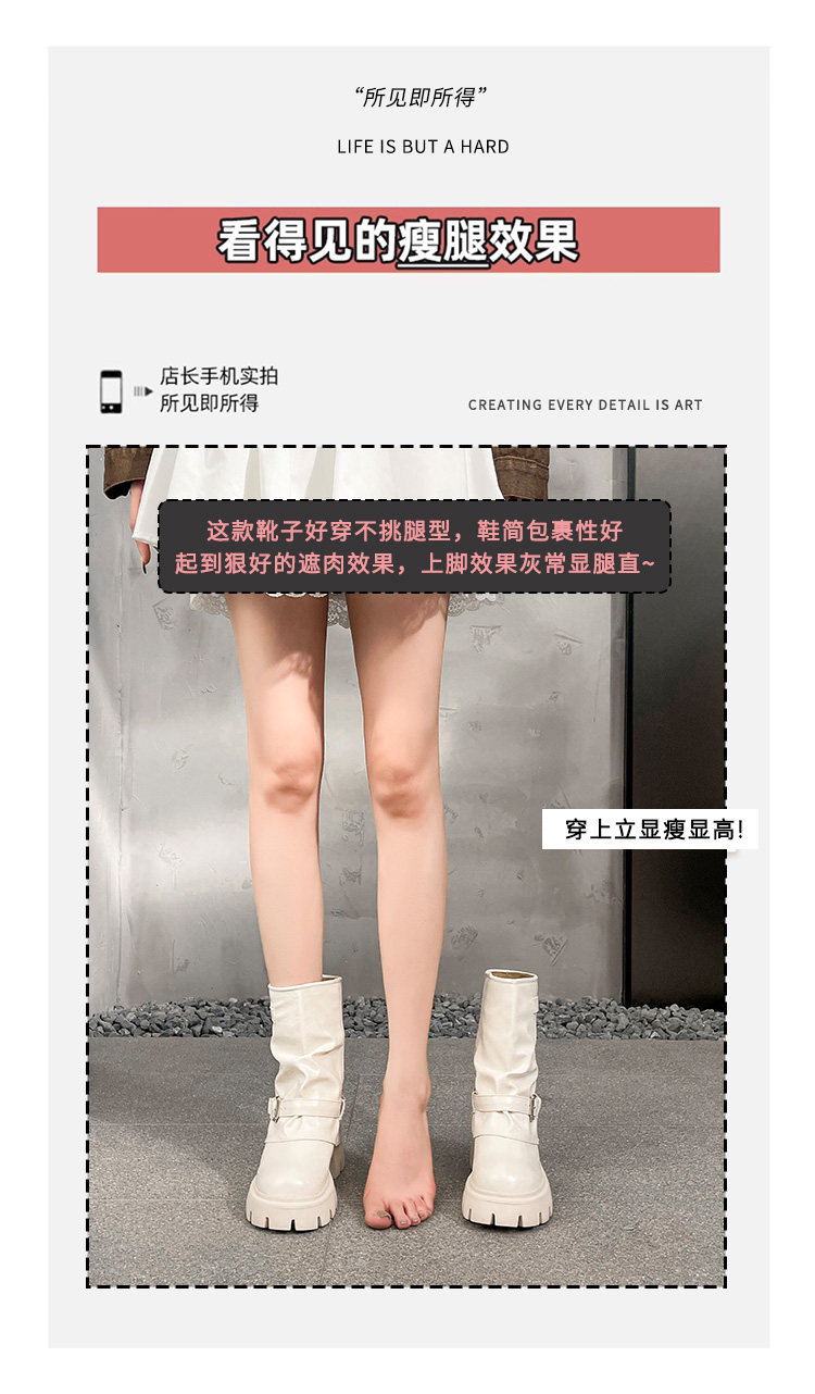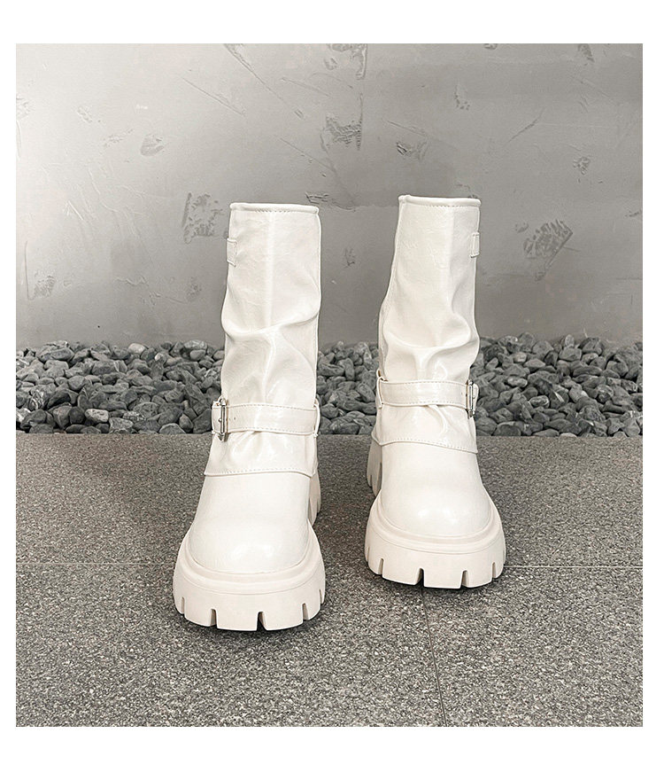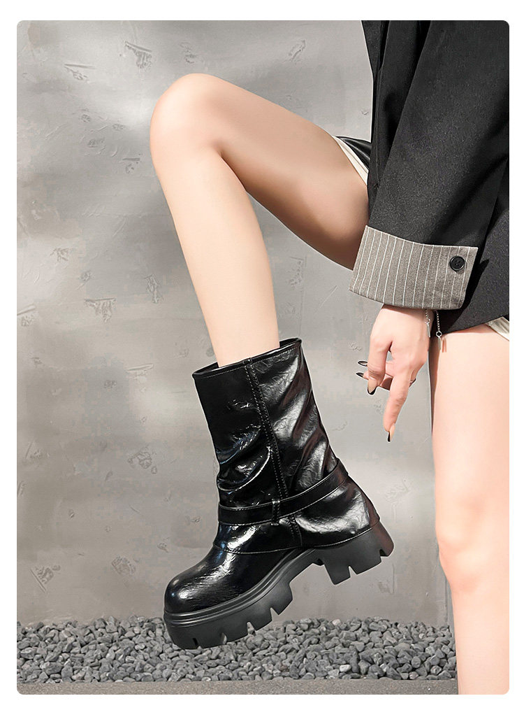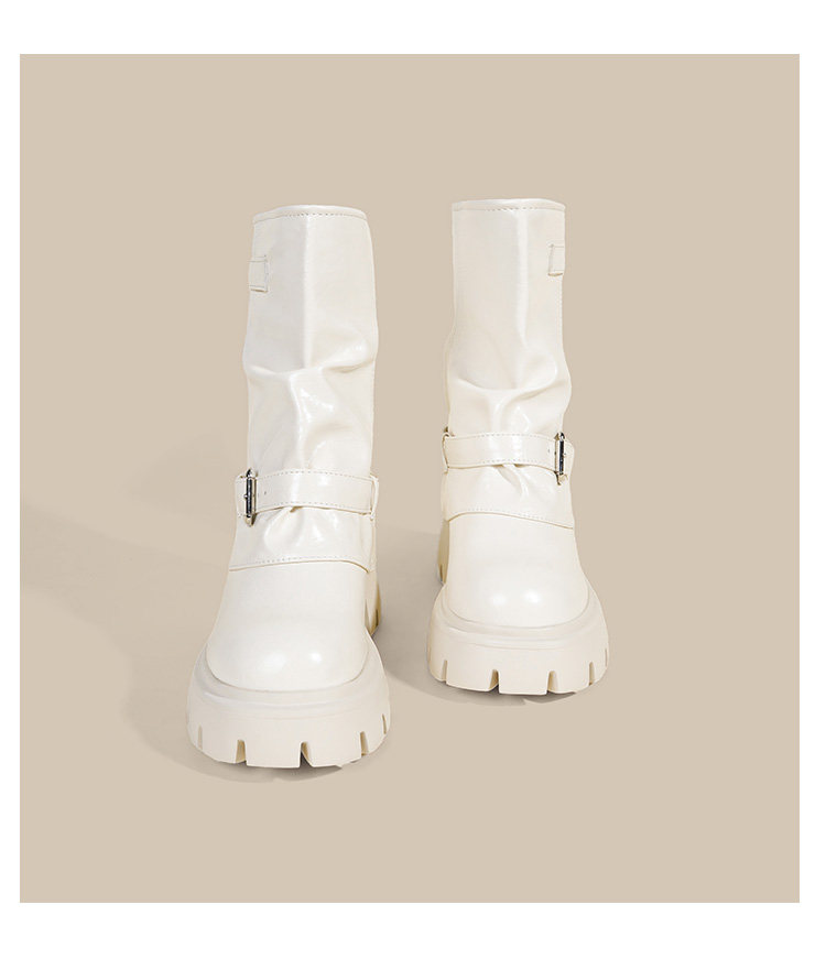 內增高廢土風馬丁靴女加絨2025新款粗跟顯瘦絨面褲琯褶皺堆堆短靴