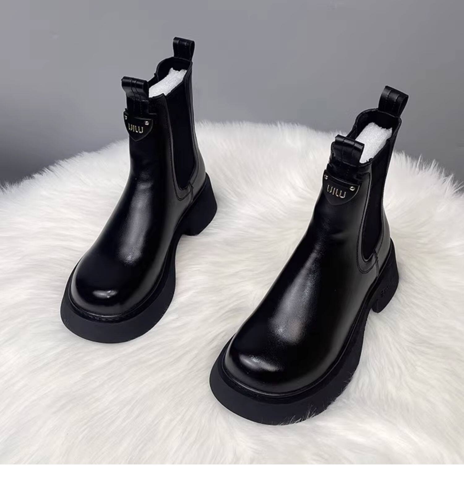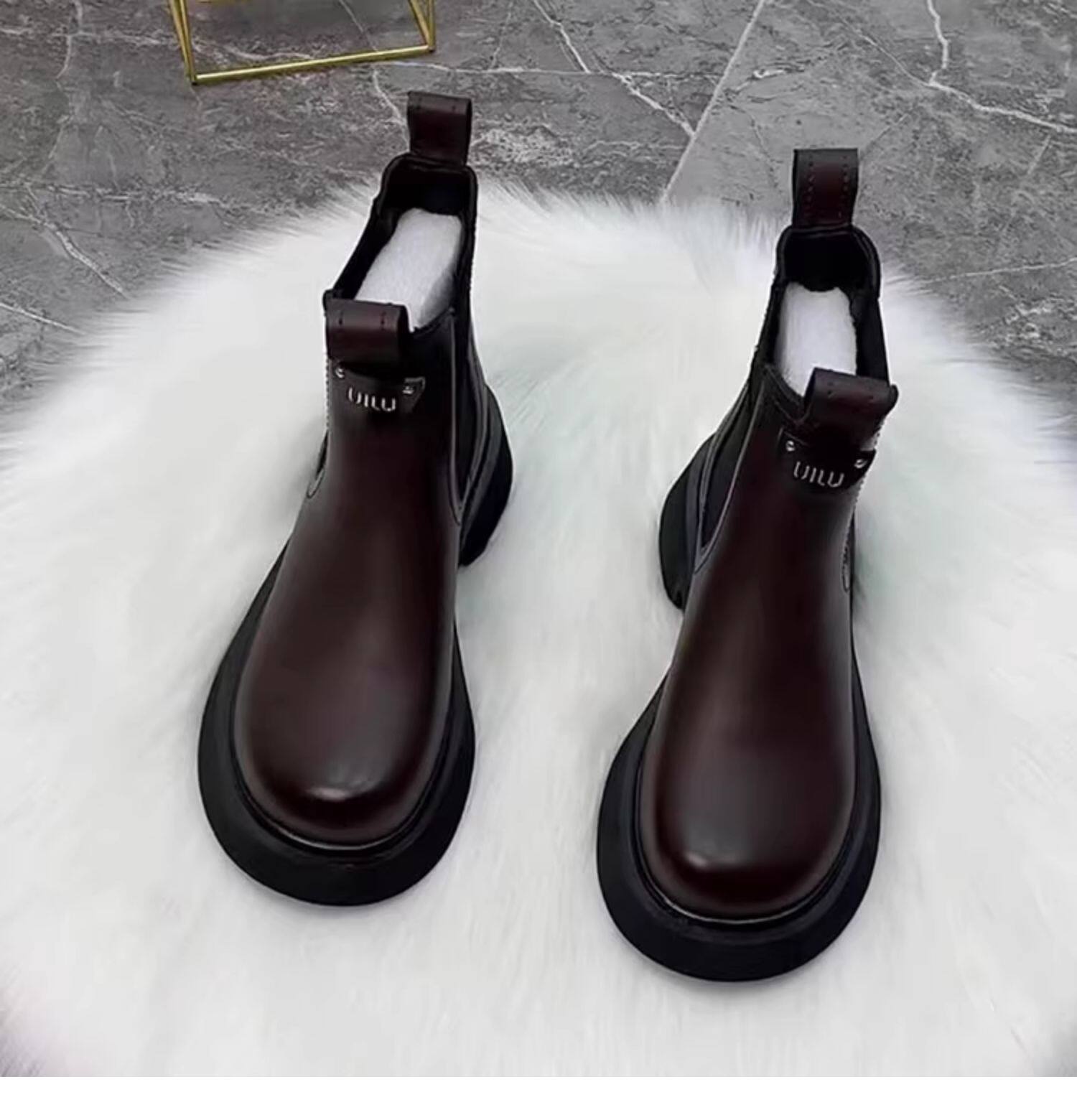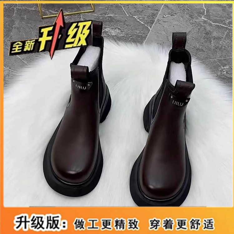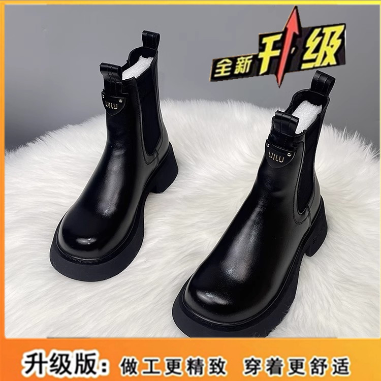 切爾西短靴女2025秋冬季新款加絨厚底休閒英倫風套筒真皮馬丁靴子