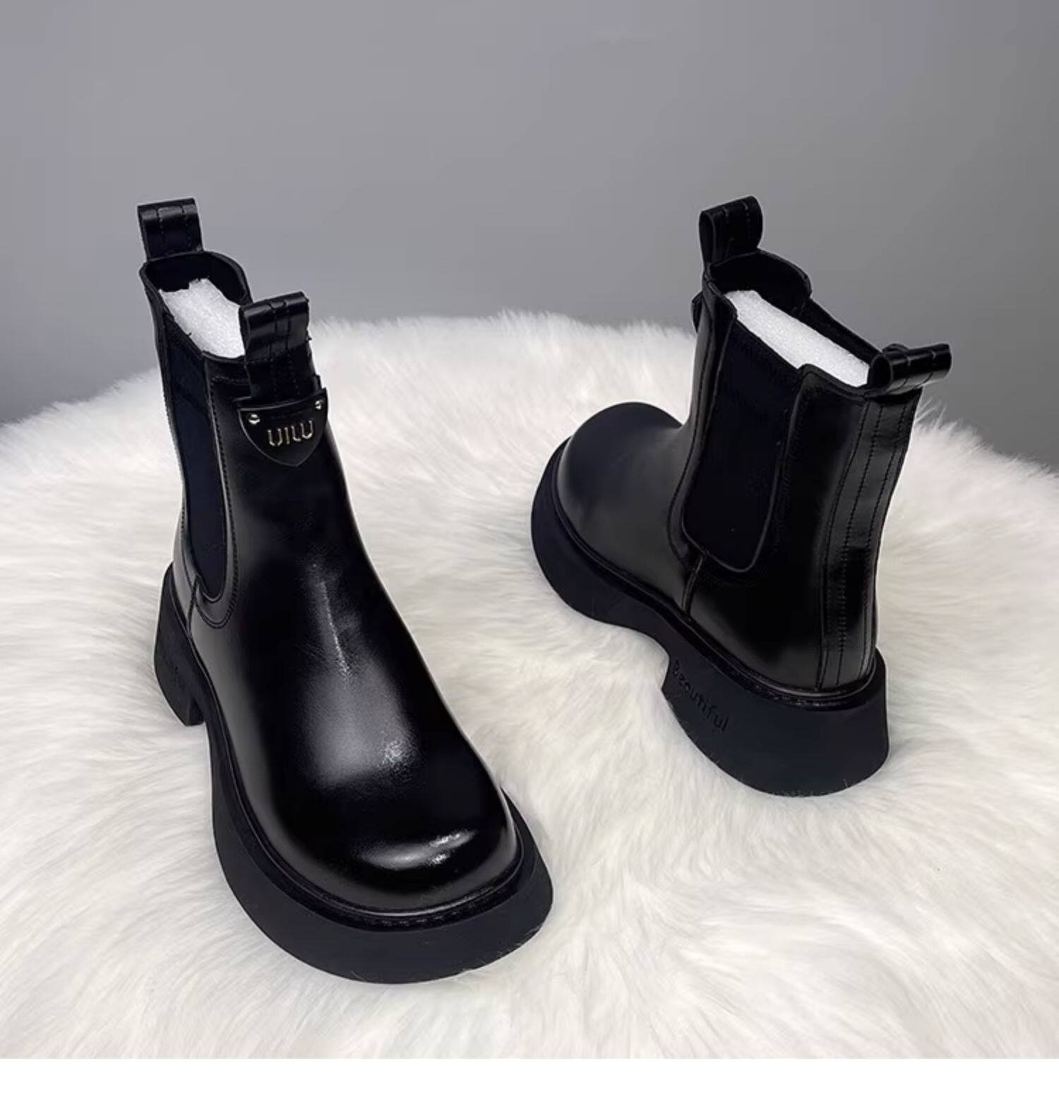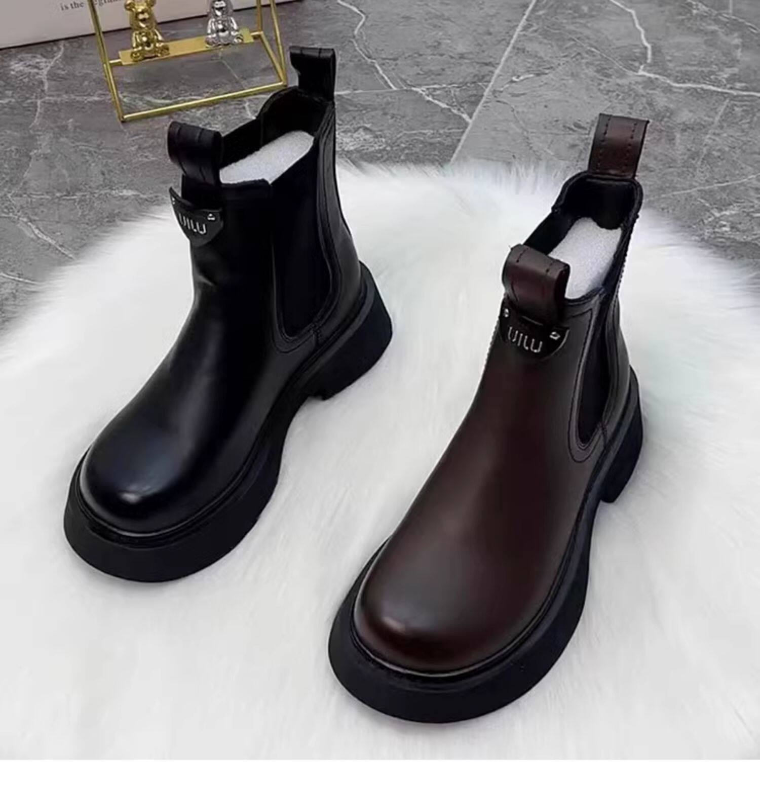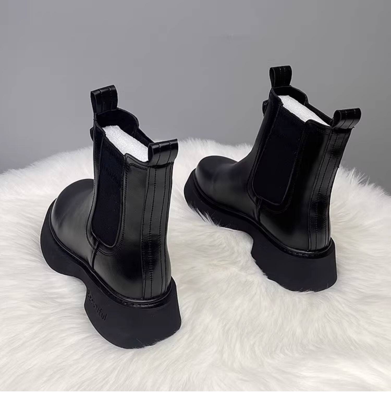 切爾西短靴女2025秋冬季新款加絨厚底休閒英倫風套筒真皮馬丁靴子
