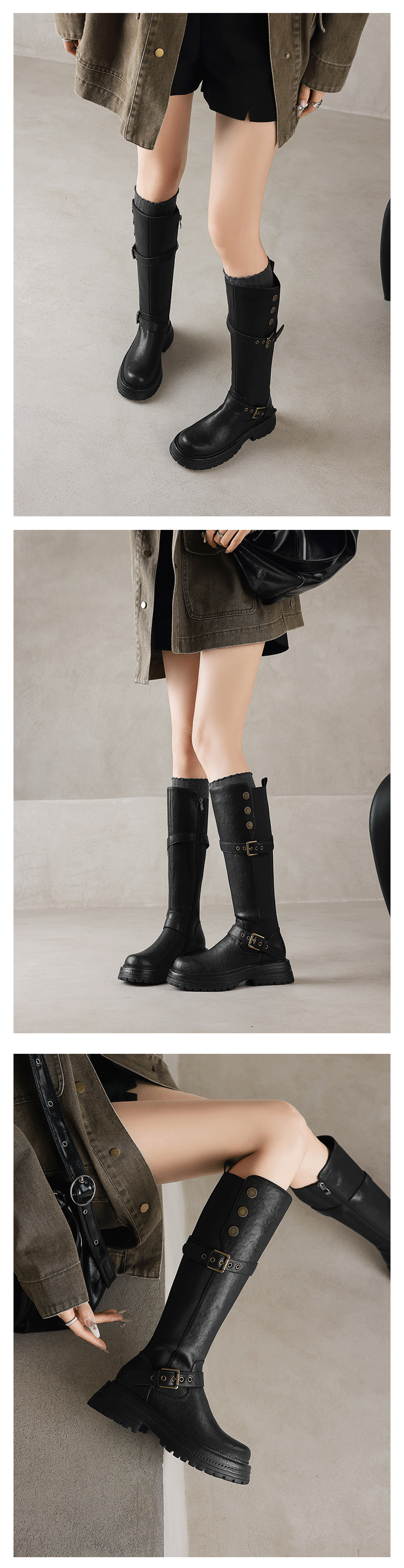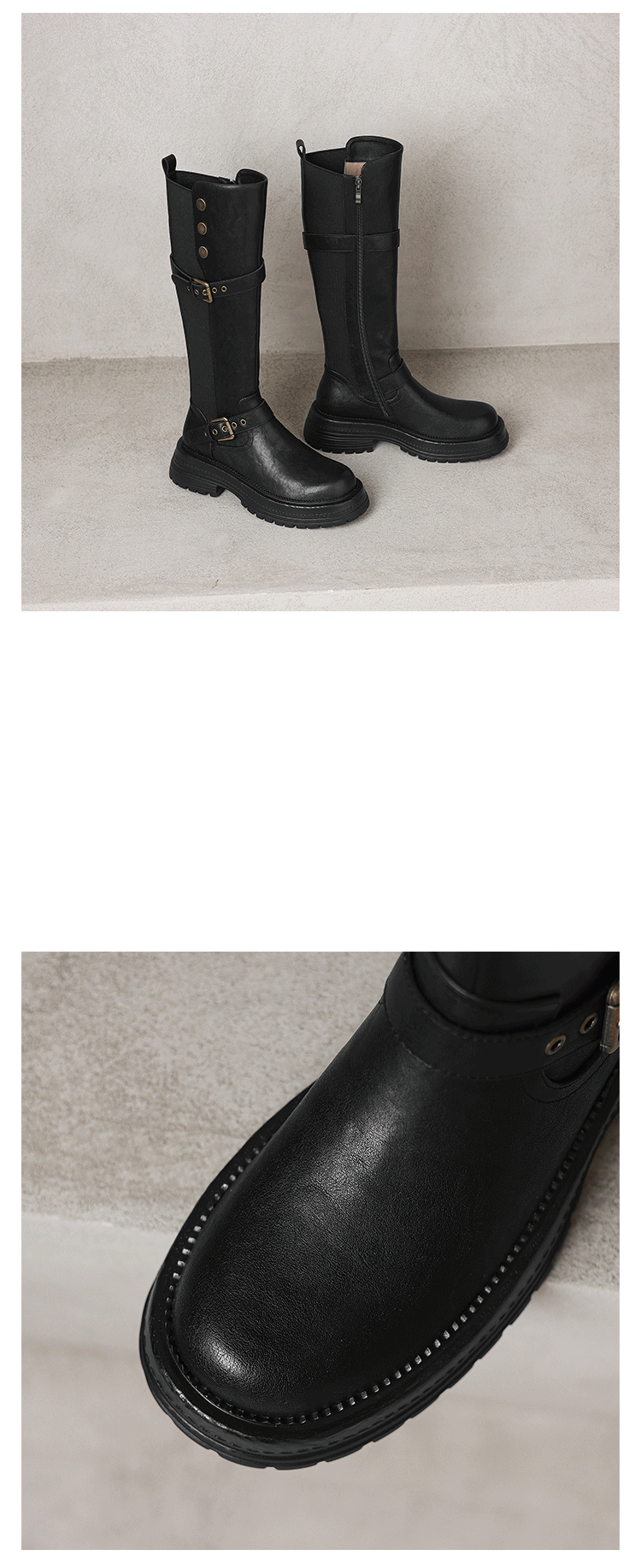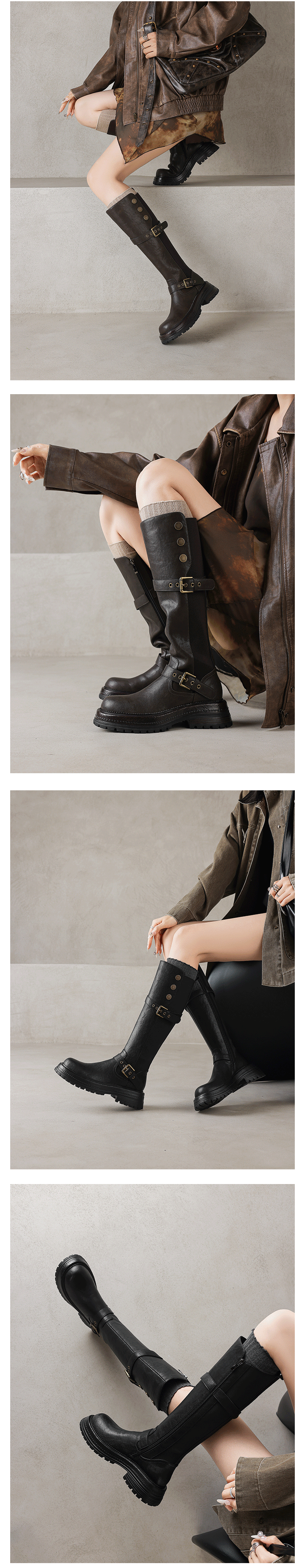 Diao'er 小個子天菜~!復古皮帶釦高筒騎士靴厚底彈力靴女長筒靴