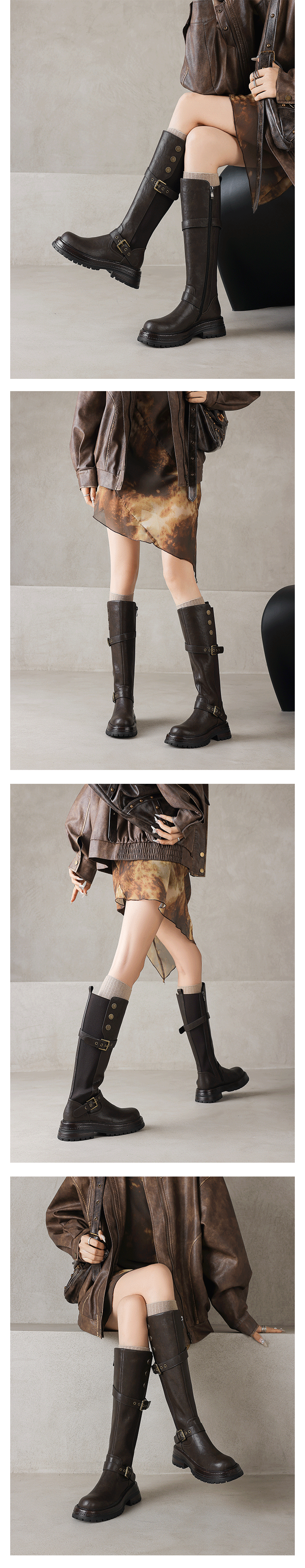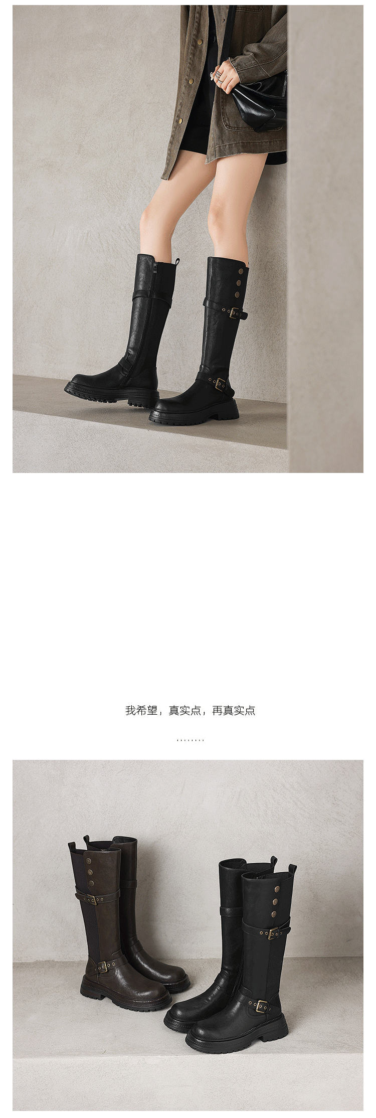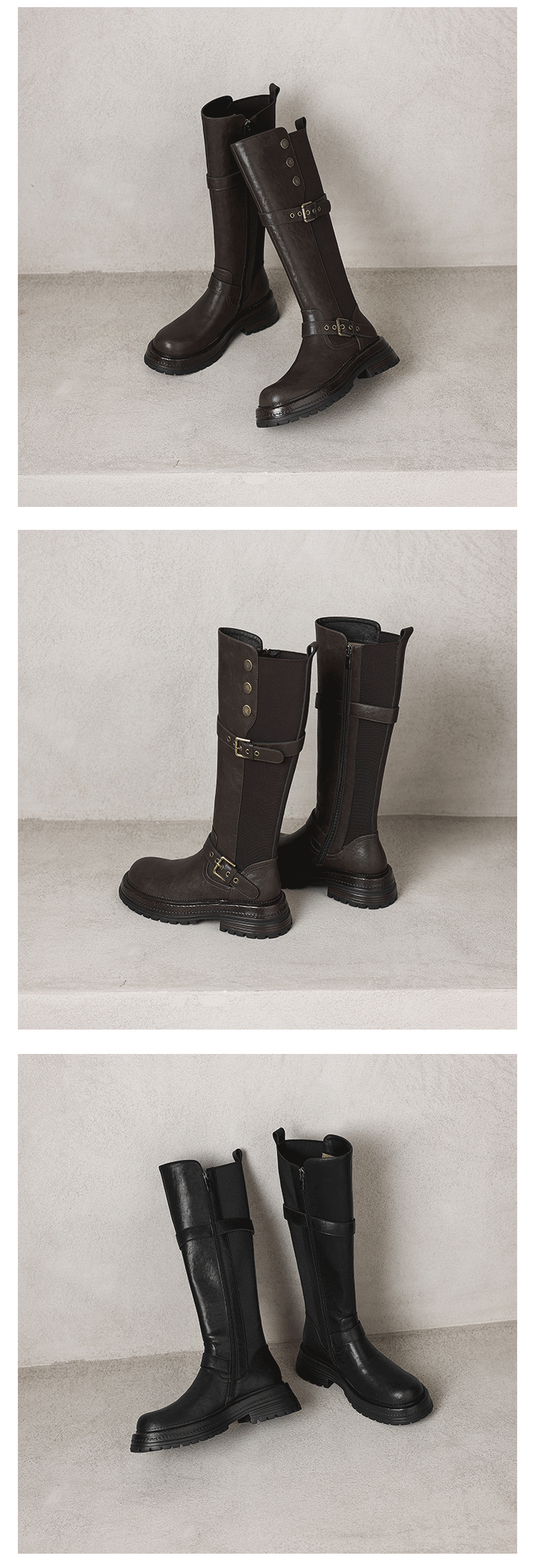 Diao'er 小個子天菜~!復古皮帶釦高筒騎士靴厚底彈力靴女長筒靴