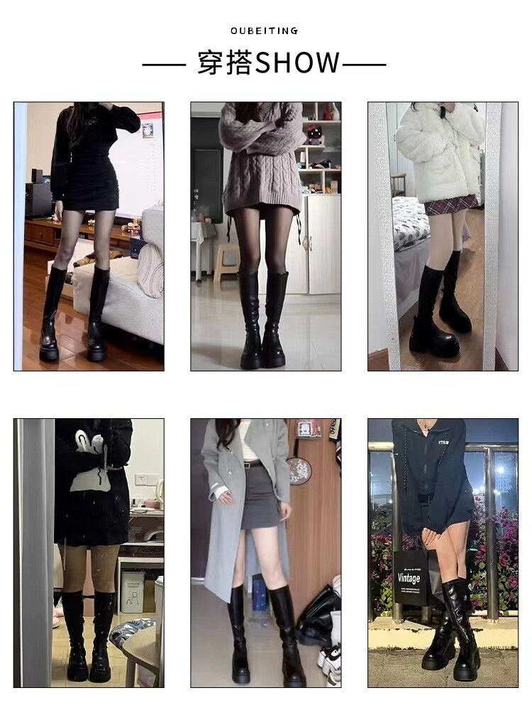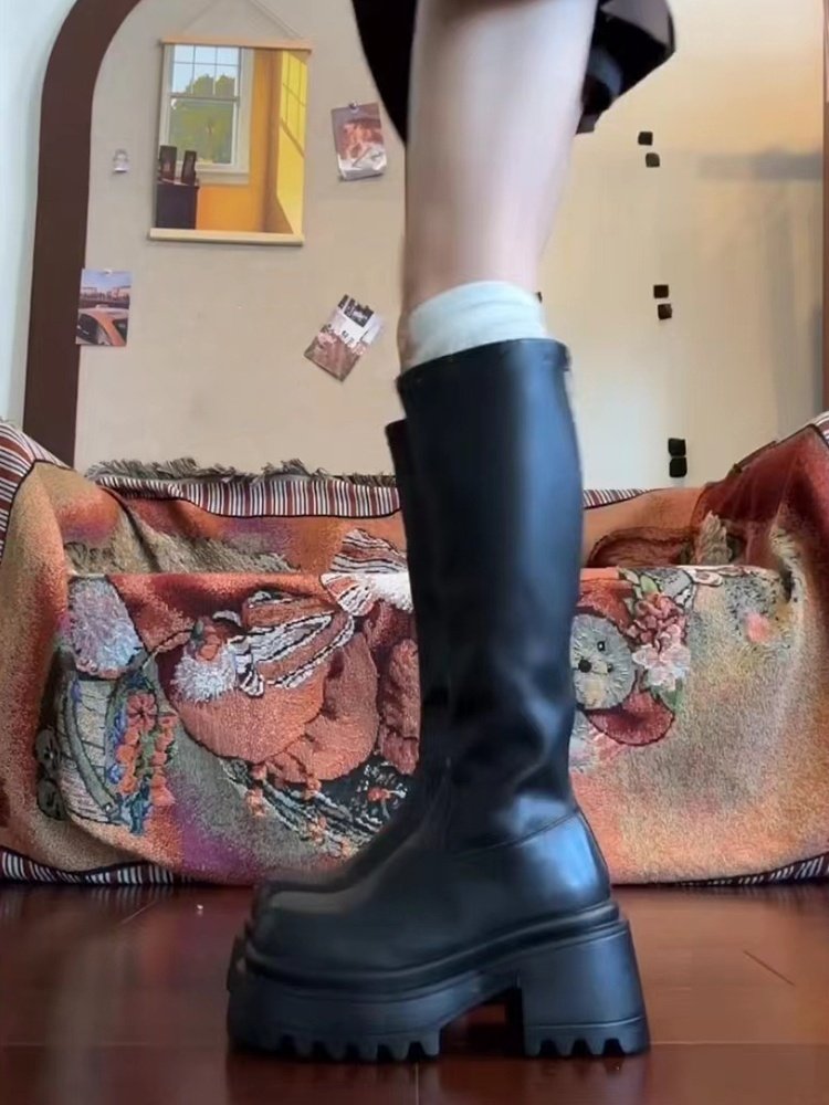 黑色長筒靴女2026新款春秋冬季厚底不過膝高筒騎士靴小個子長靴子