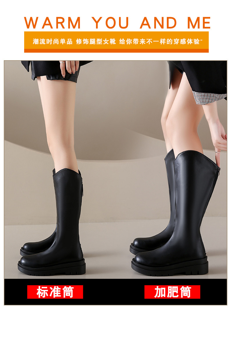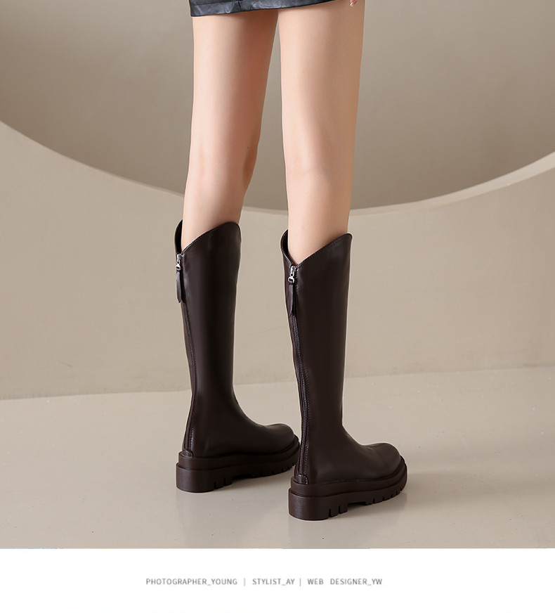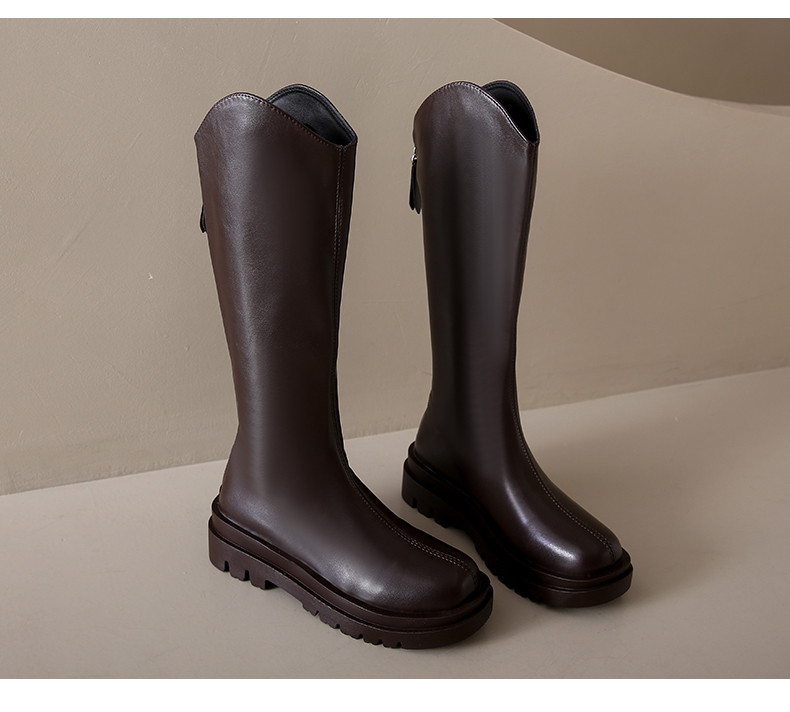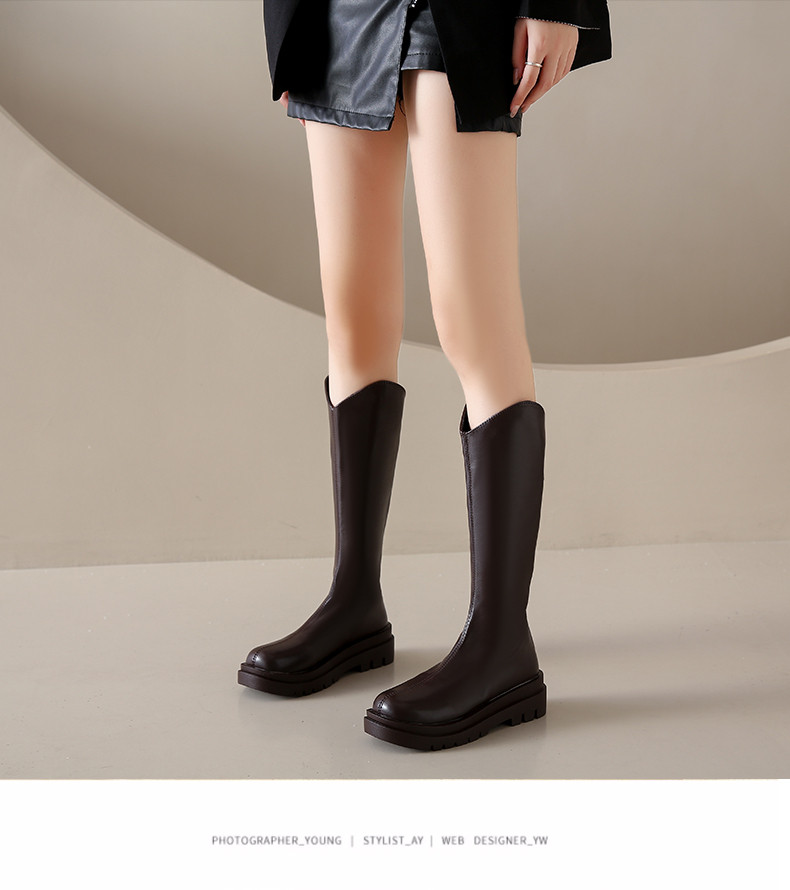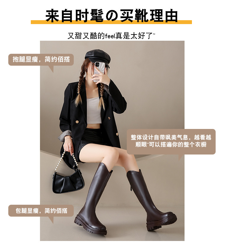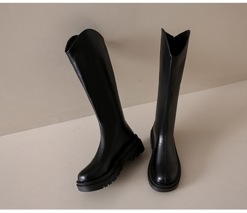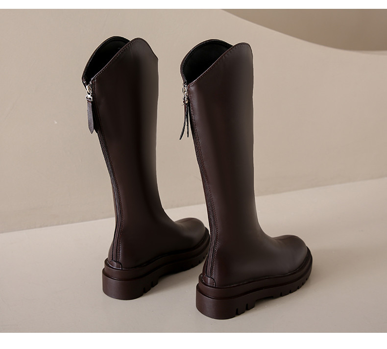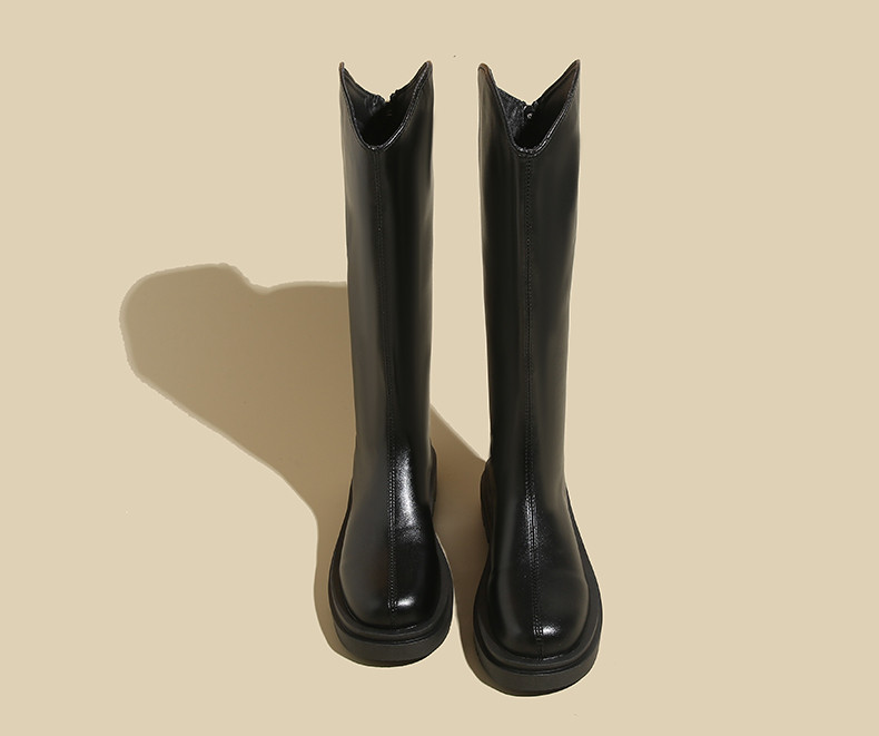 厚底長筒靴女2026新款春秋單靴騎士靴小個子棕色長靴高筒V口靴子
