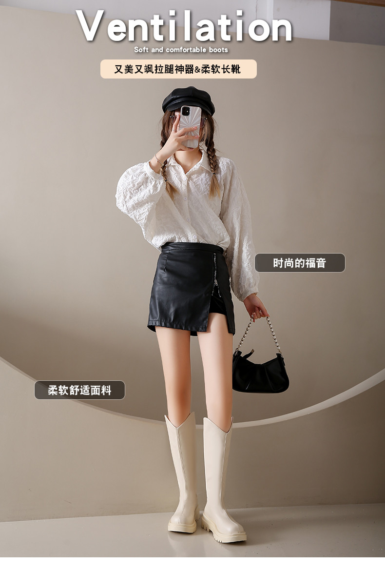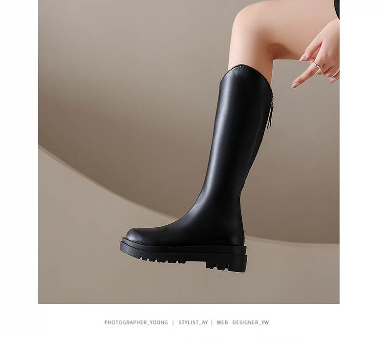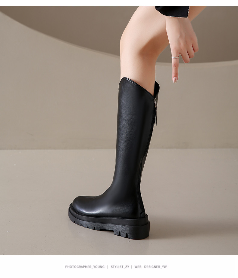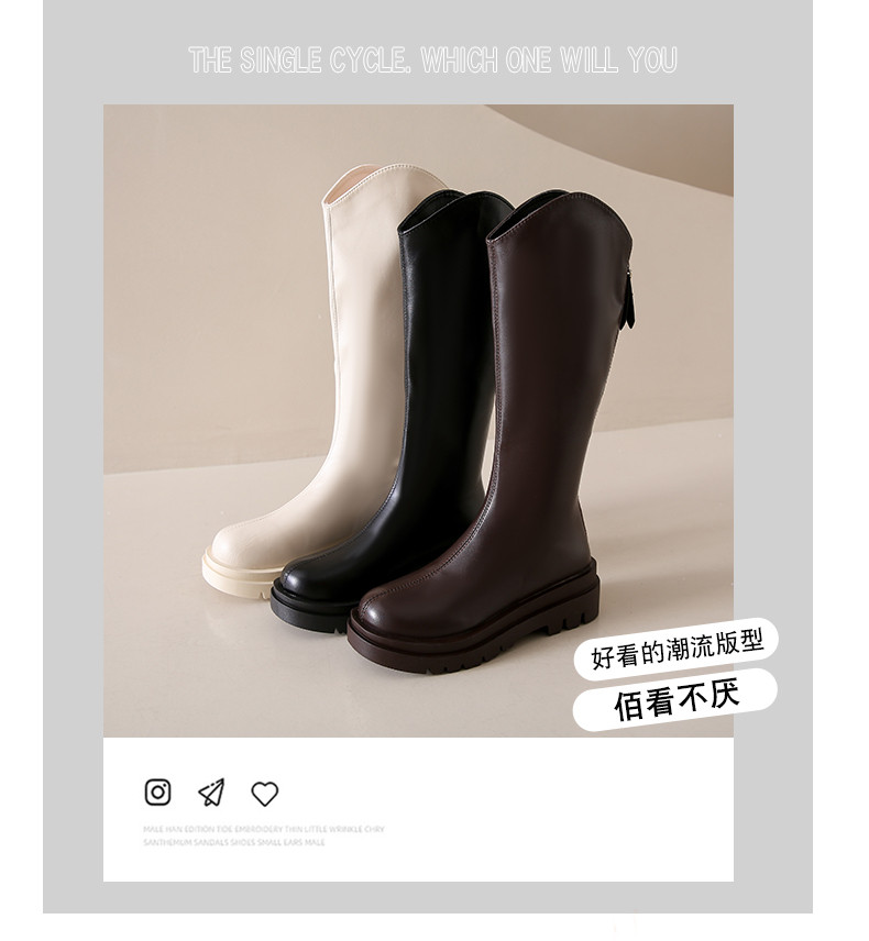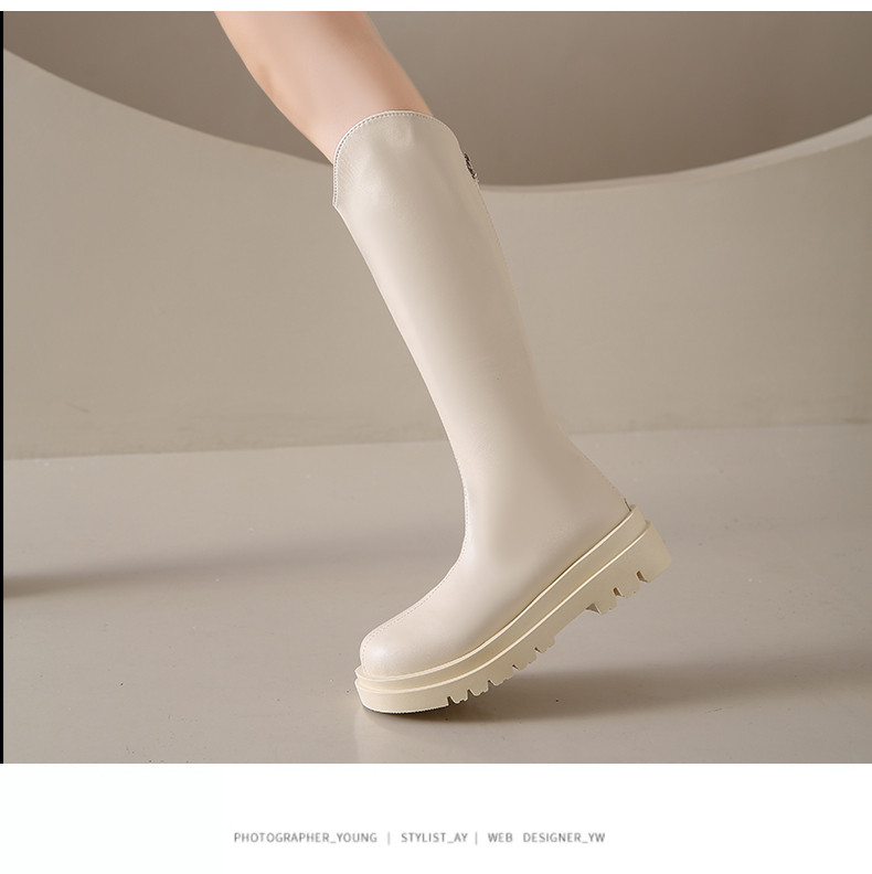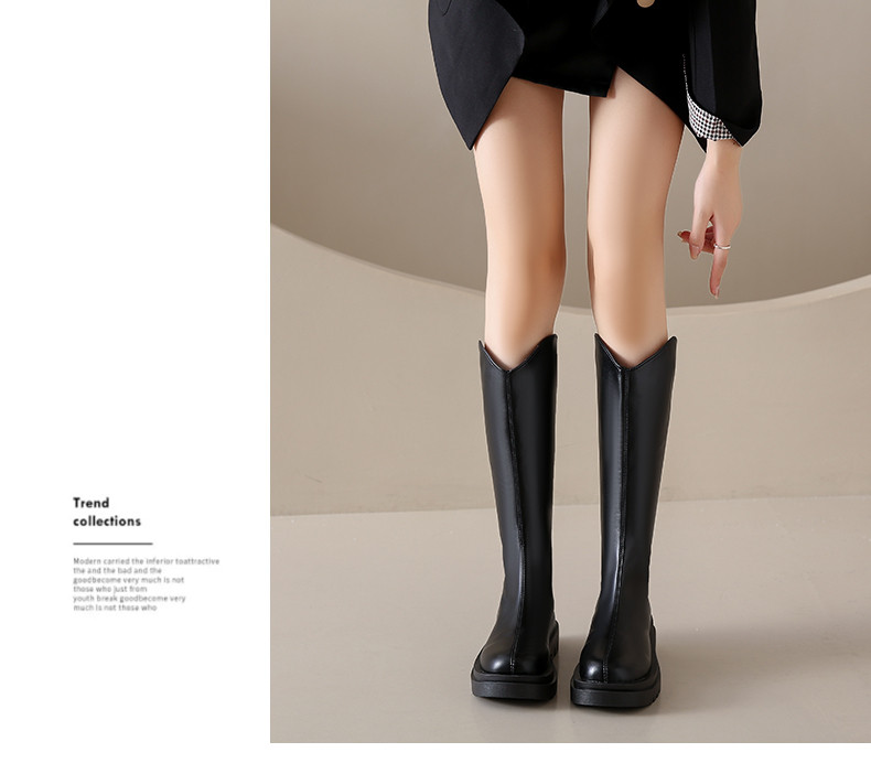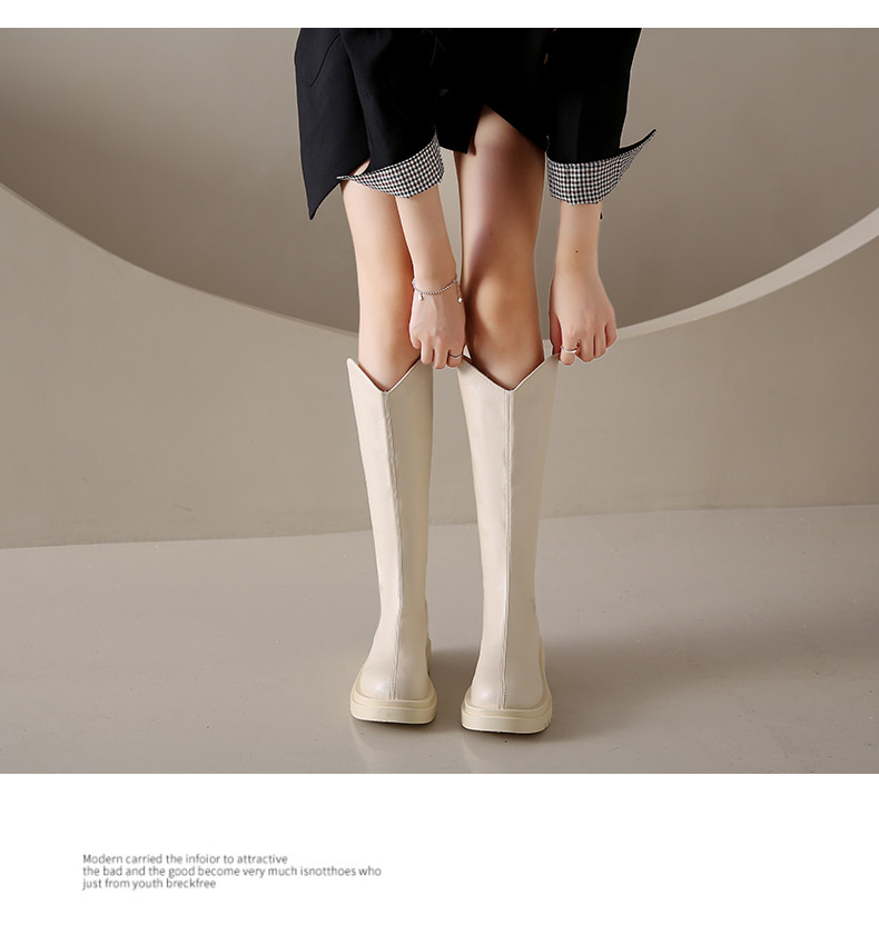 厚底長筒靴女2026新款春秋單靴騎士靴小個子棕色長靴高筒V口靴子