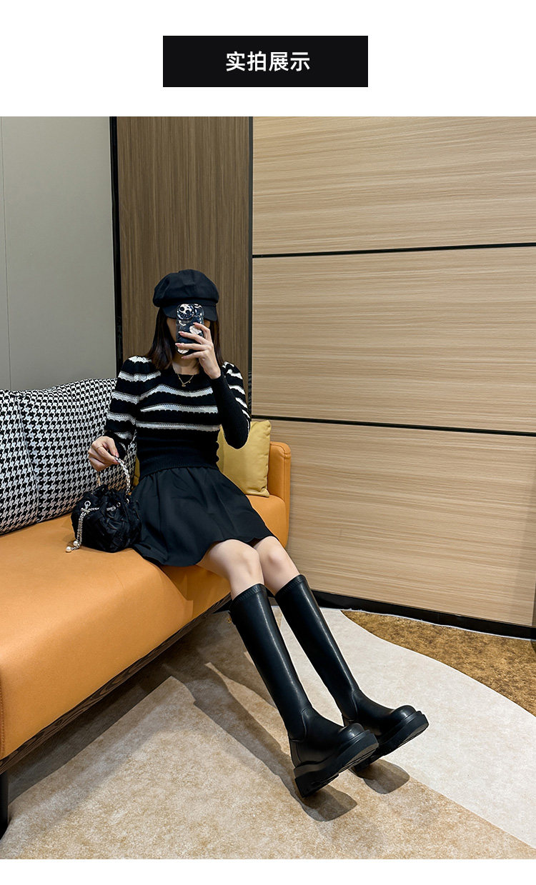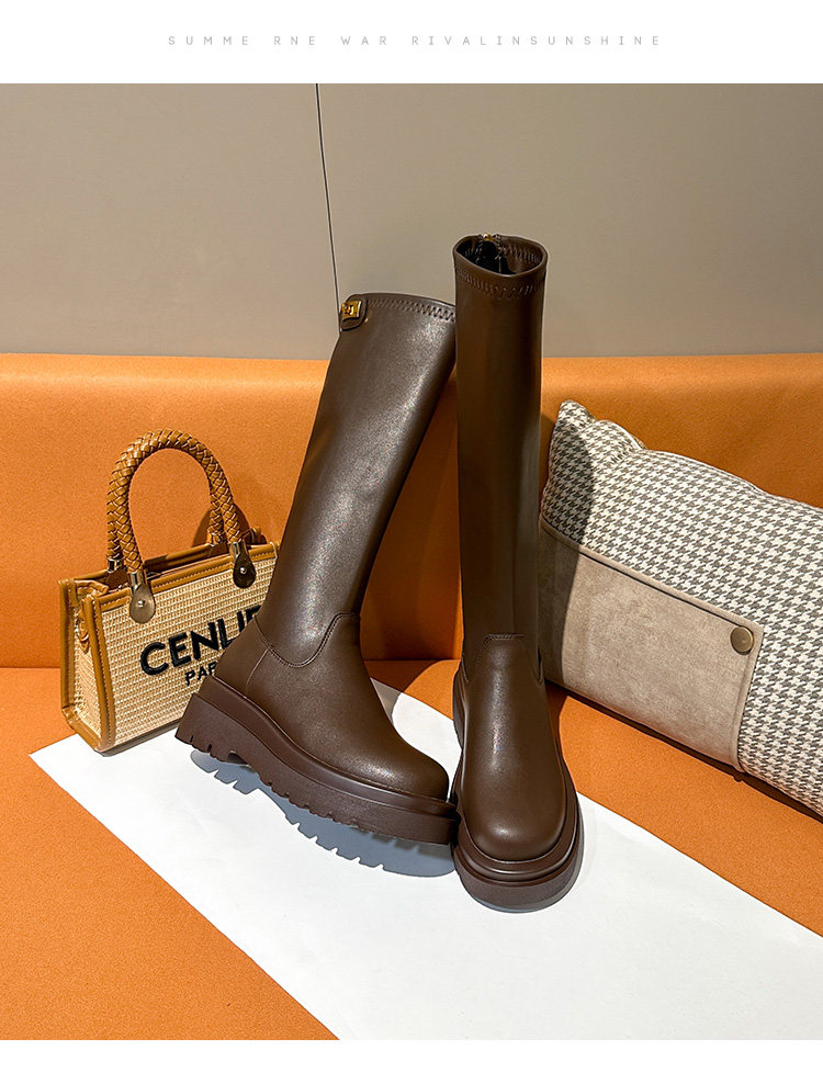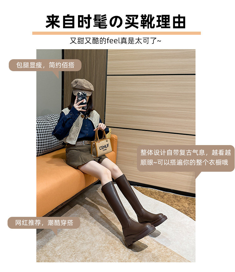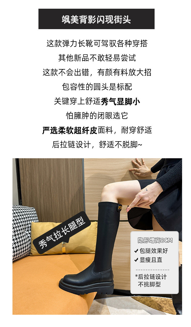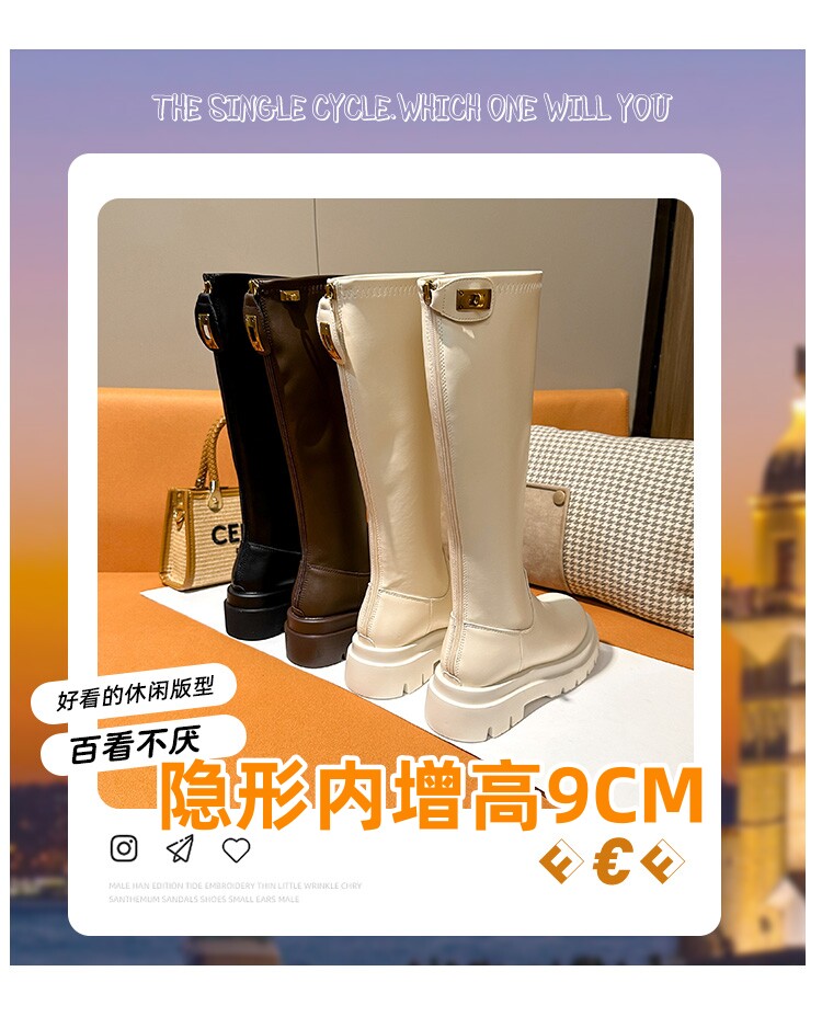 內增高9CM長筒靴小個子2026年新款秋冬厚底真皮高筒靴騎士靴長靴