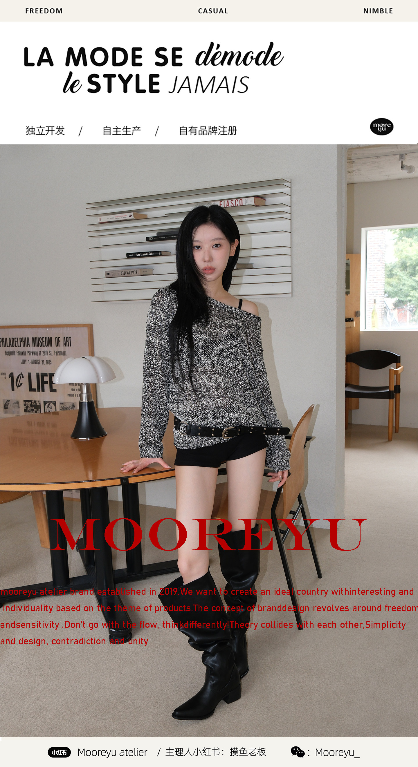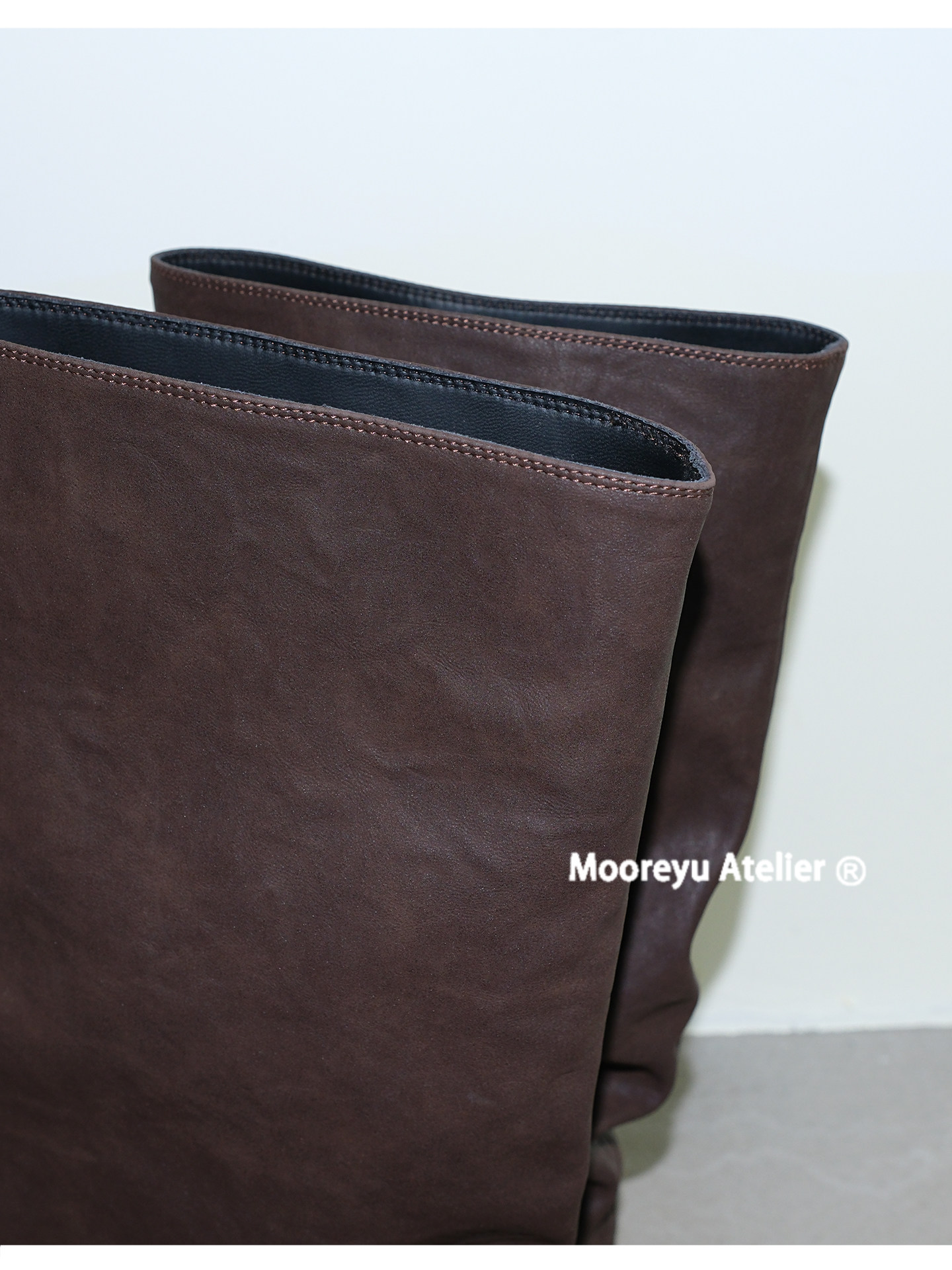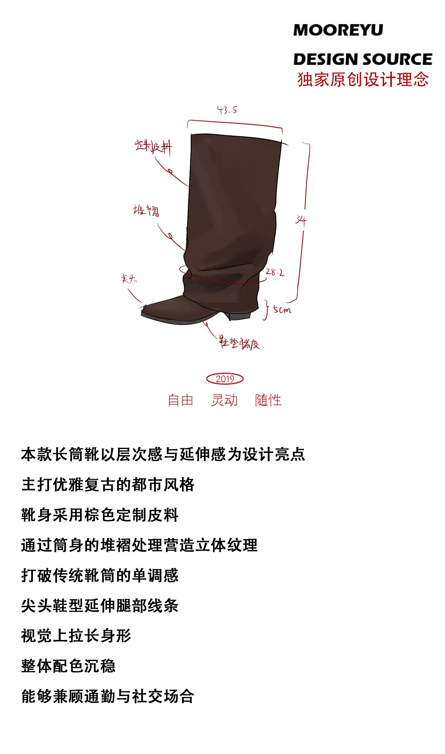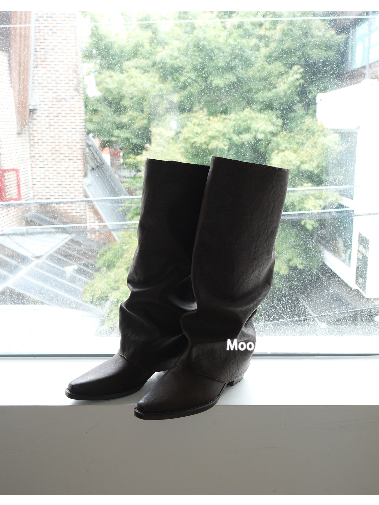 Mooreyu原創棕色褲琯靴女春夏復古美拉德尖頭騎士辣妹粗跟長靴女