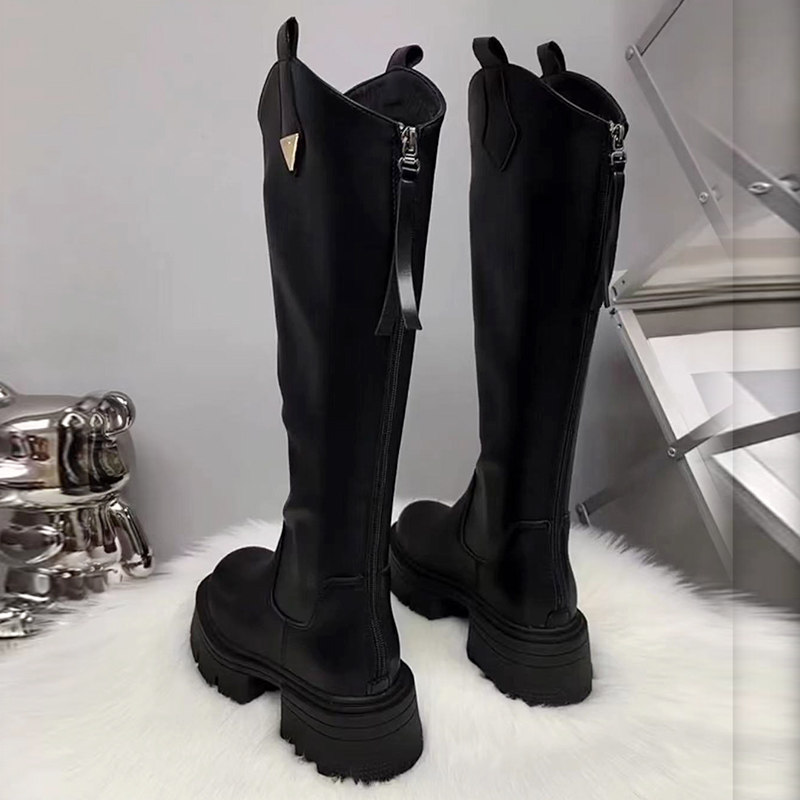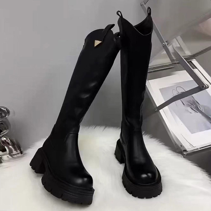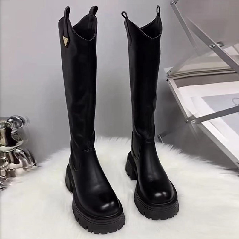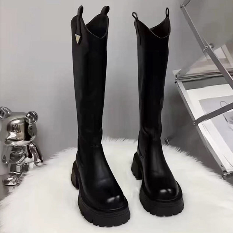 真皮厚底增高長筒靴女高筒粗跟2025秋冬季騎士靴顯高小個子長靴子