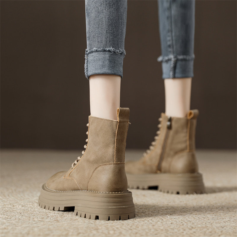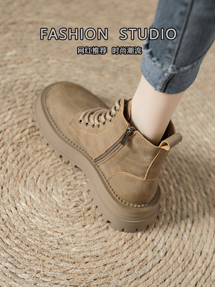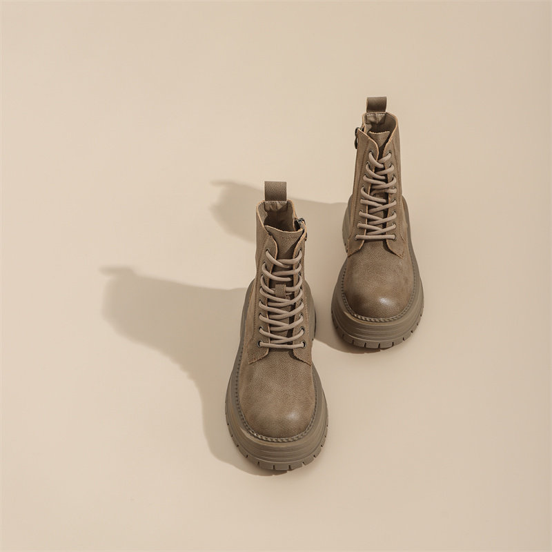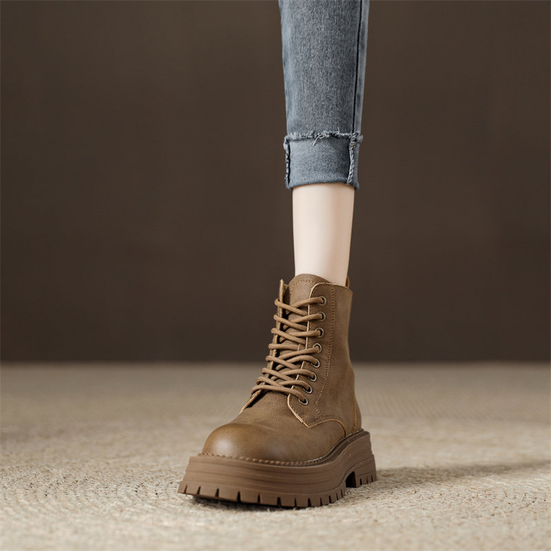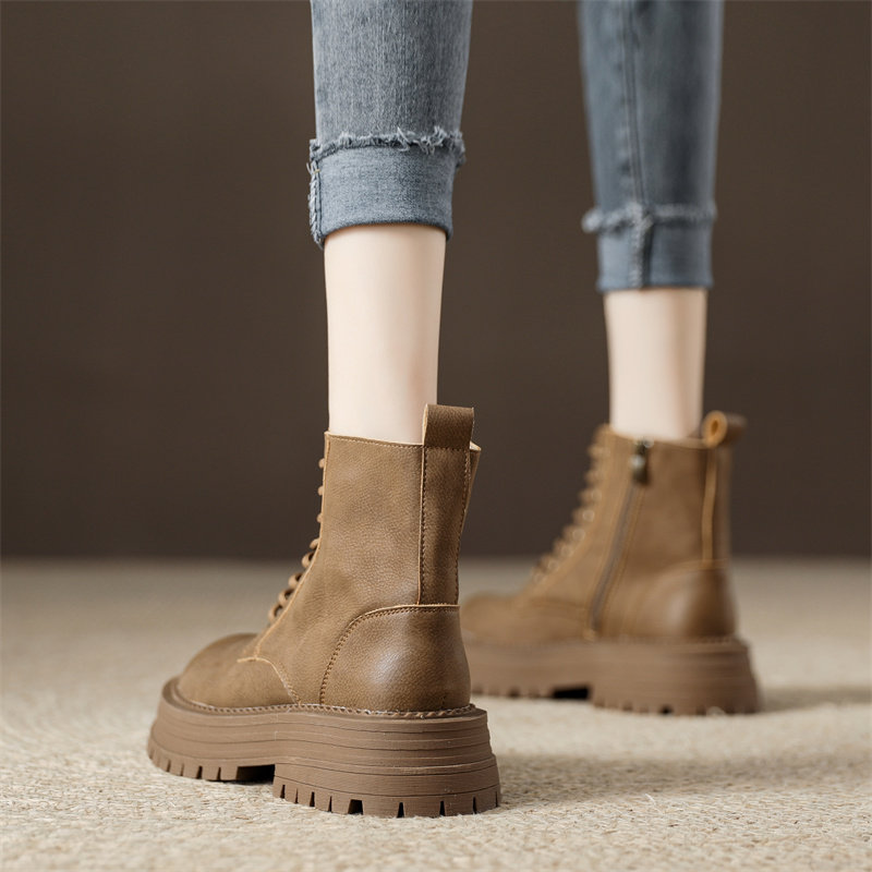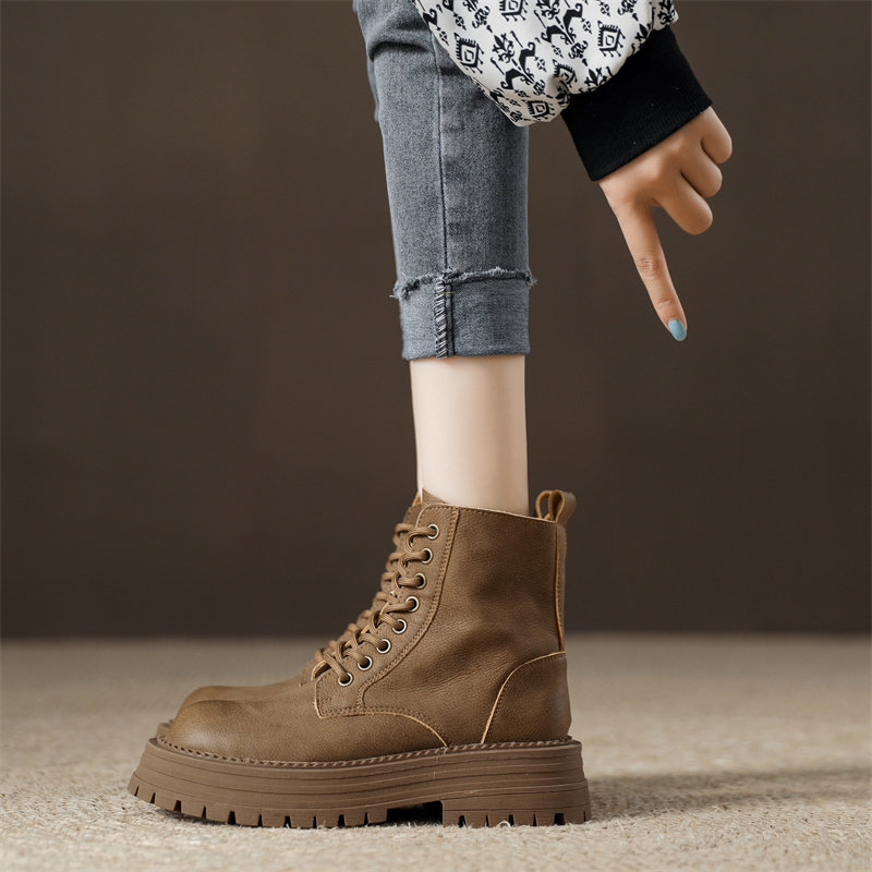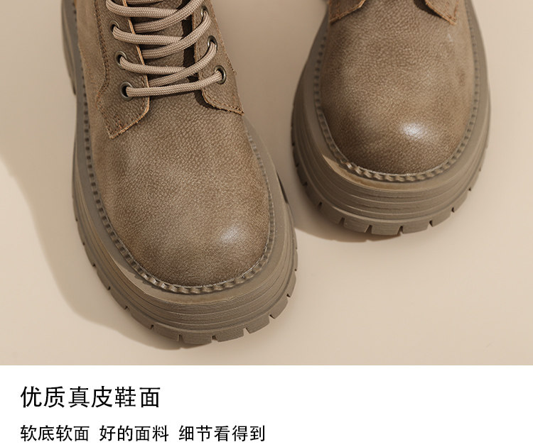 真皮復古馬丁靴女2025秋季新款單靴厚底系帶英倫風爆款工裝短靴子