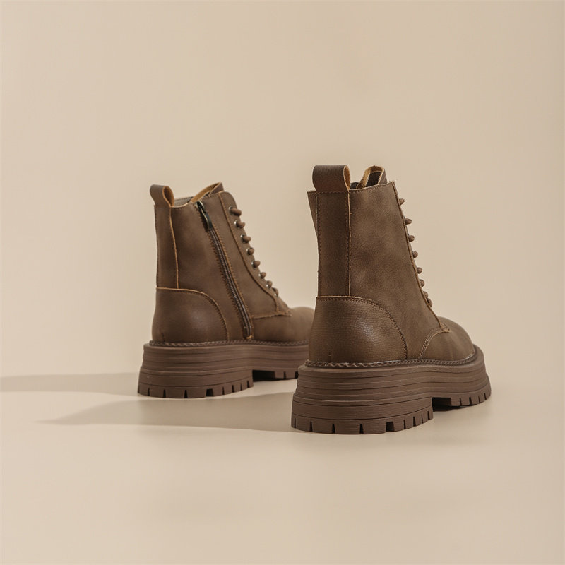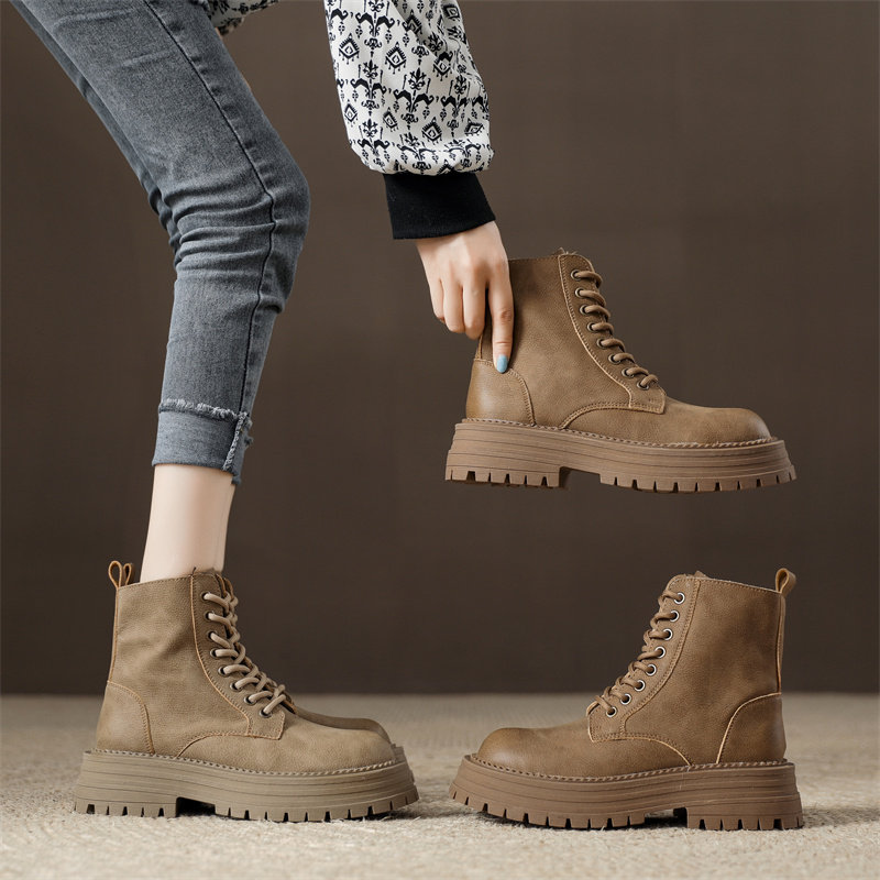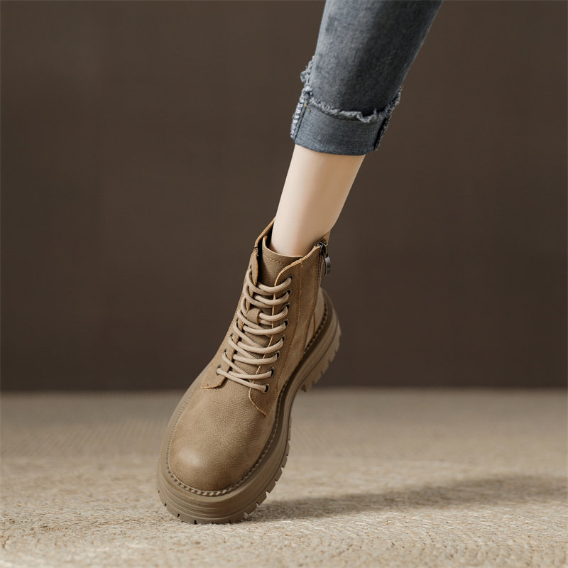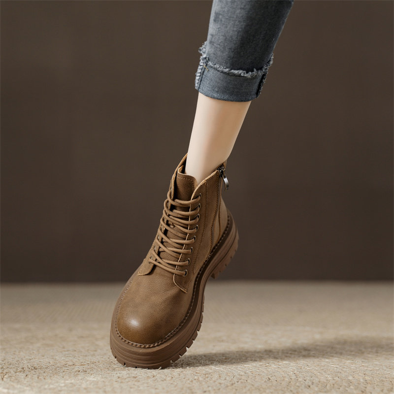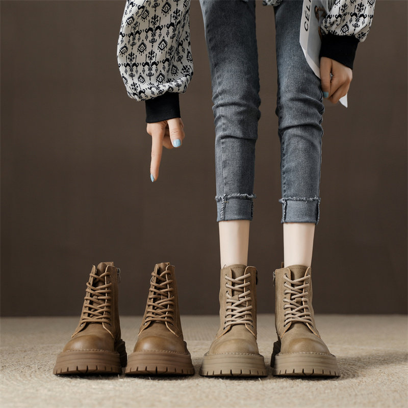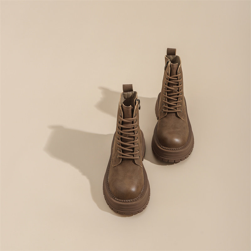 真皮復古馬丁靴女2025秋季新款單靴厚底系帶英倫風爆款工裝短靴子
