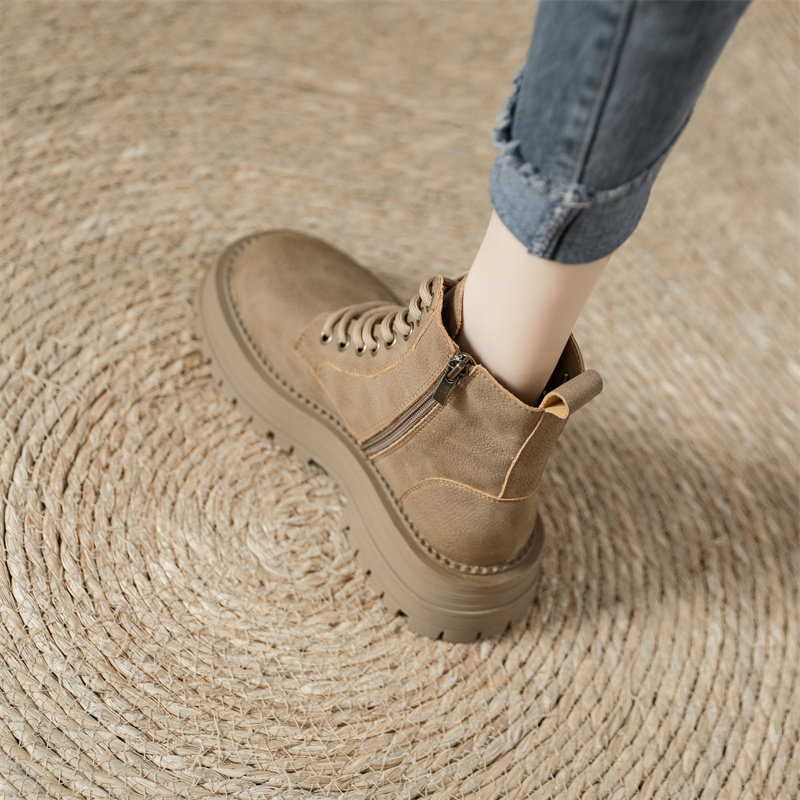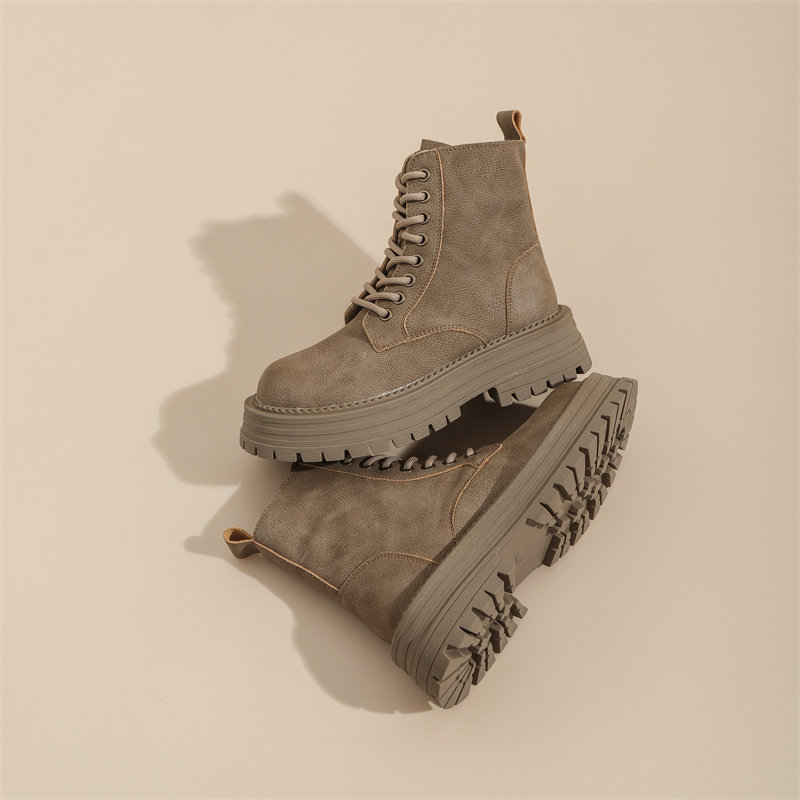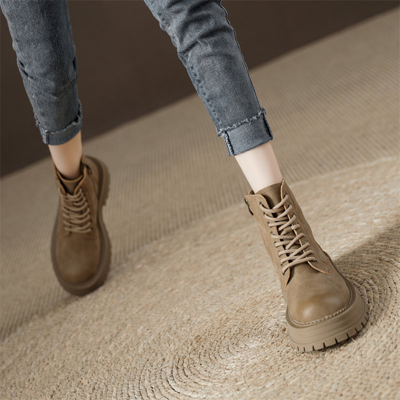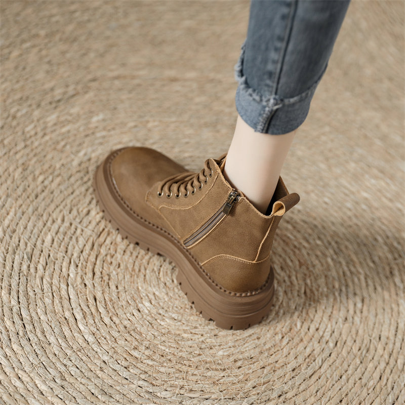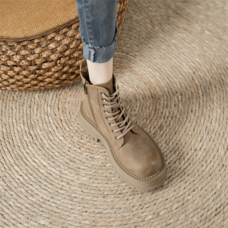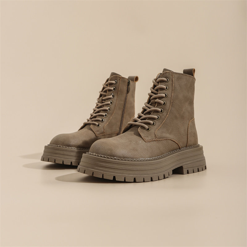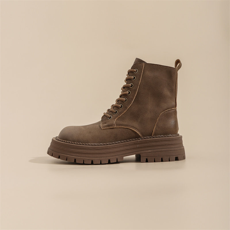 真皮復古馬丁靴女2025秋季新款單靴厚底系帶英倫風爆款工裝短靴子