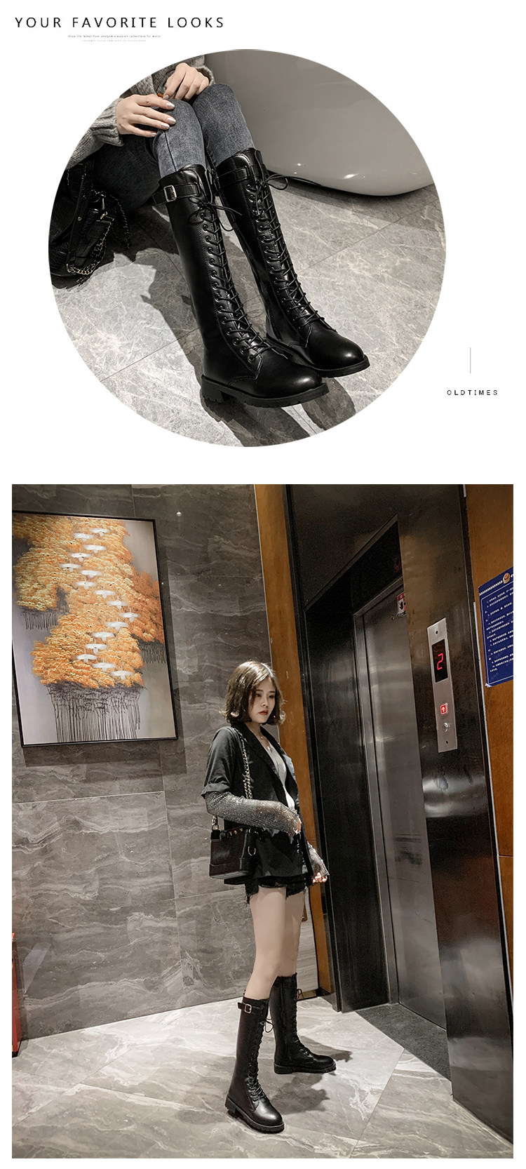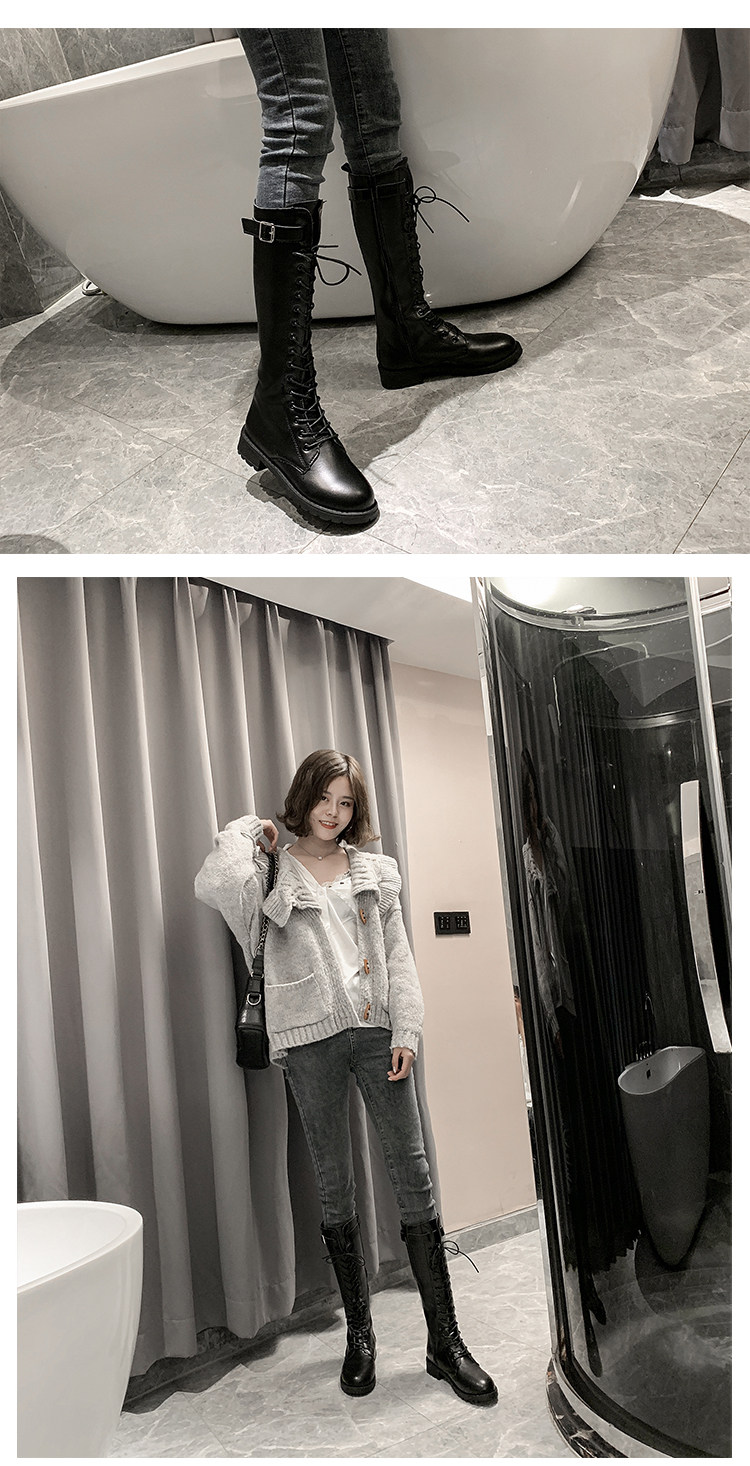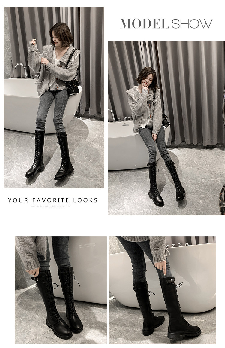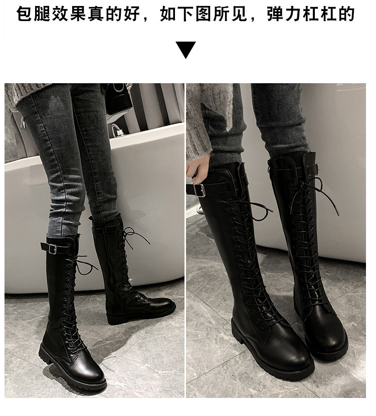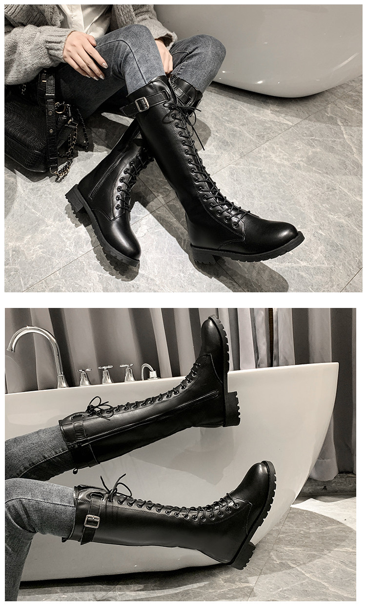 長靴胖mm粗腿不過膝高筒騎士靴系帶腳寬41一43長筒靴大碼馬丁靴女