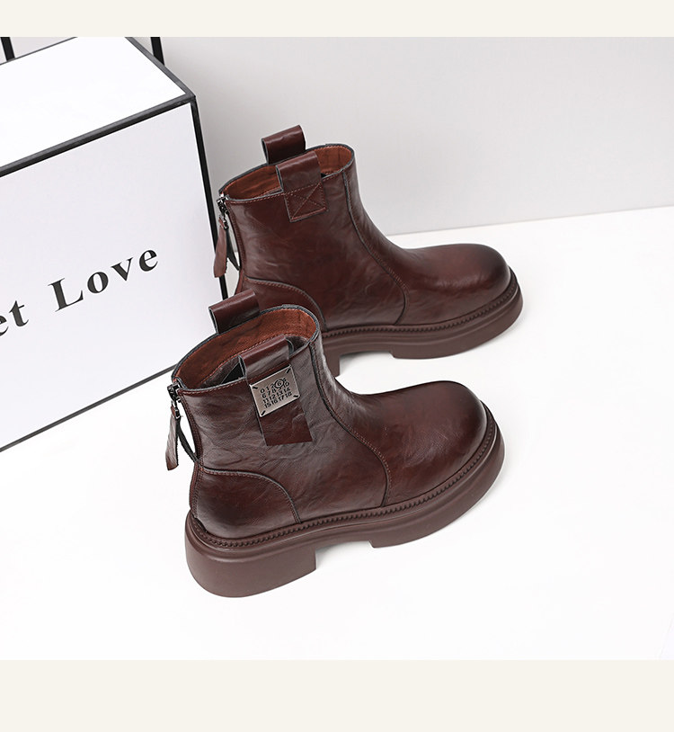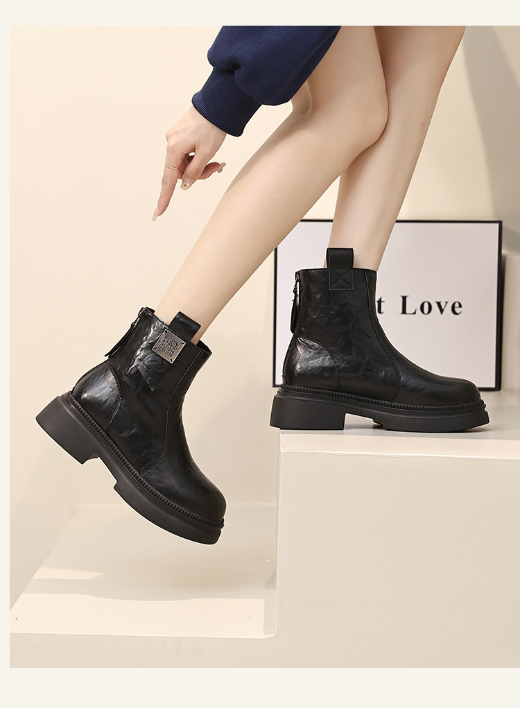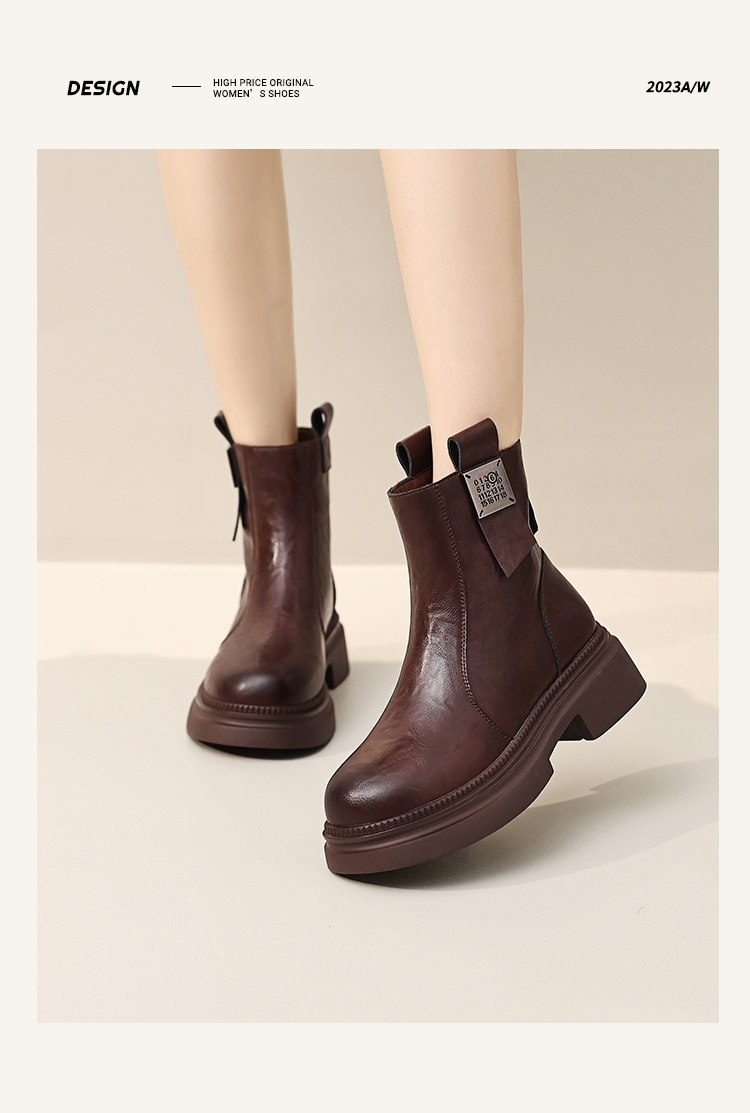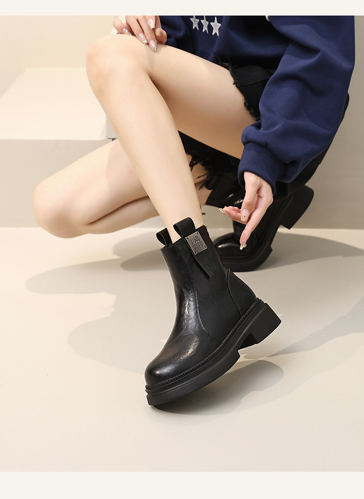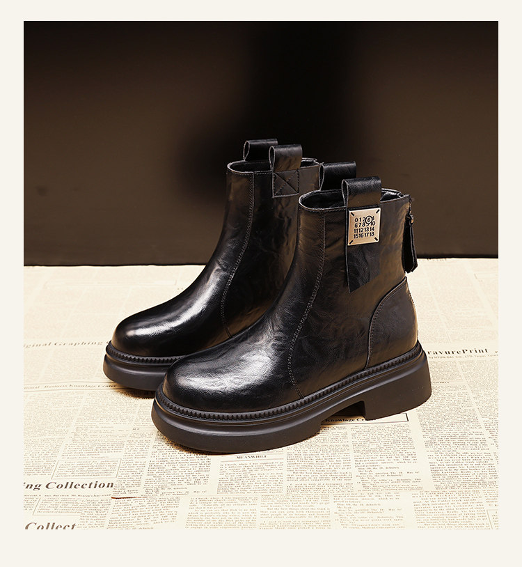 厚底馬丁靴女2025年冬季新款真皮英倫風早秋瘦瘦短靴子切爾西靴子