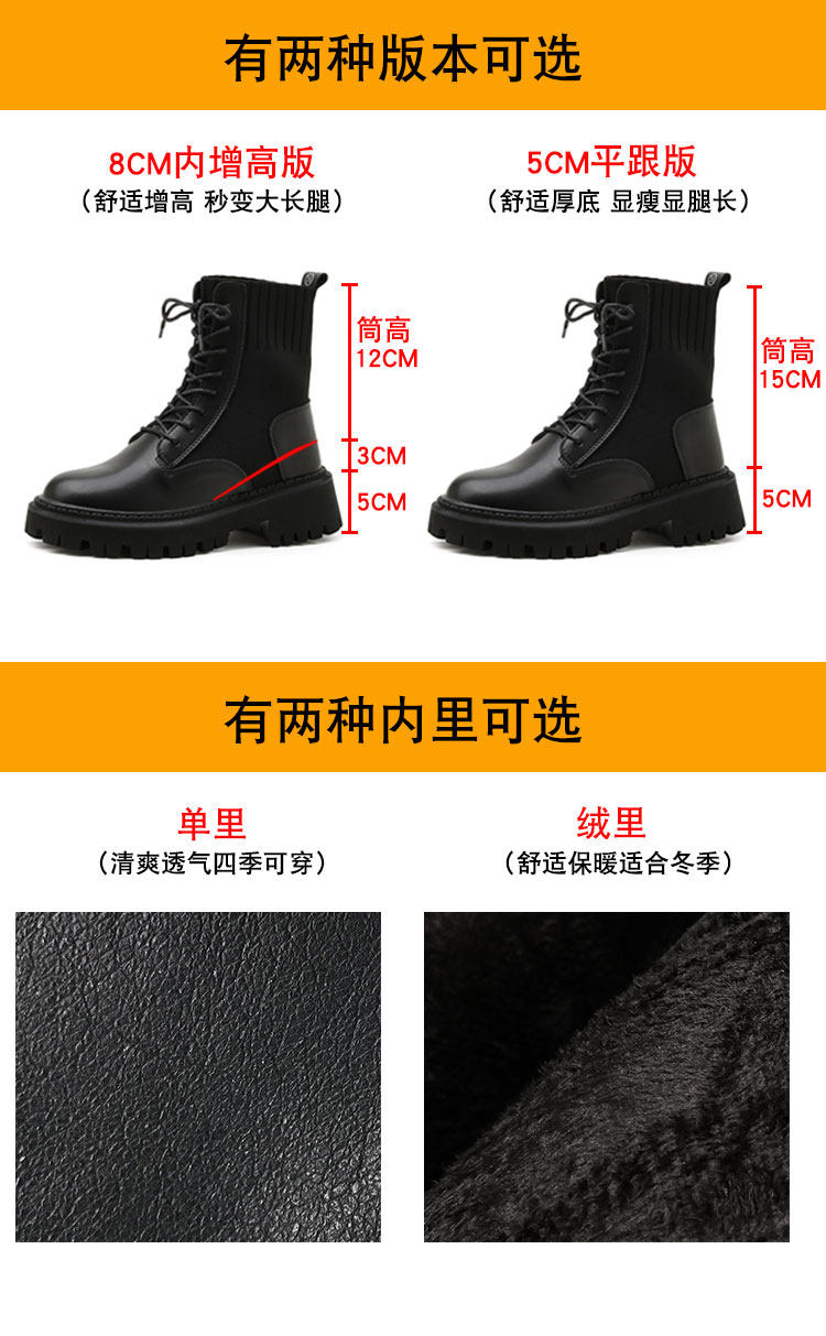 厚底馬丁靴女春秋單靴2025年新款內增高加絨瘦瘦靴真皮英倫風短靴
