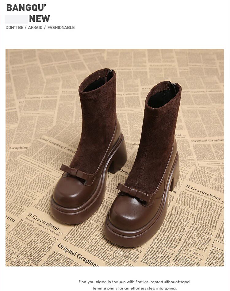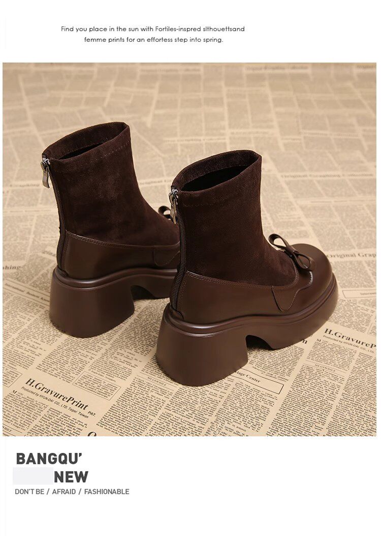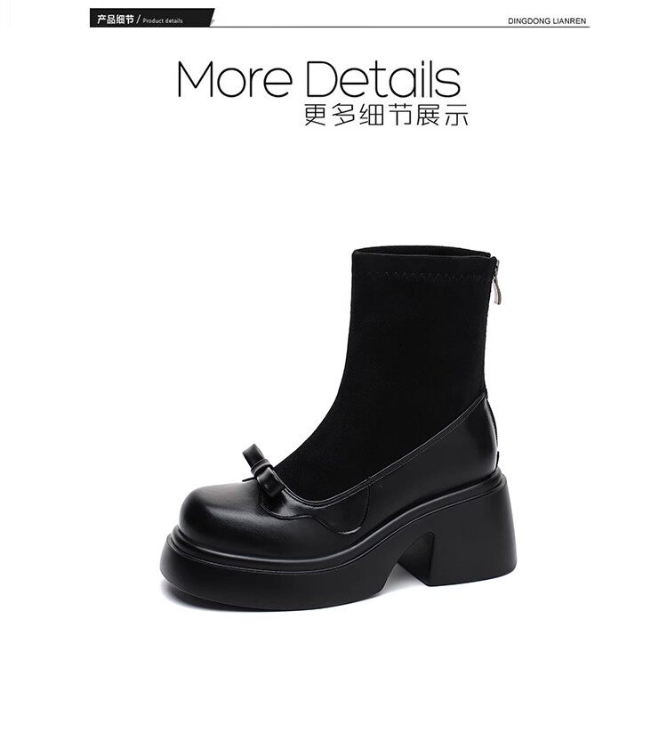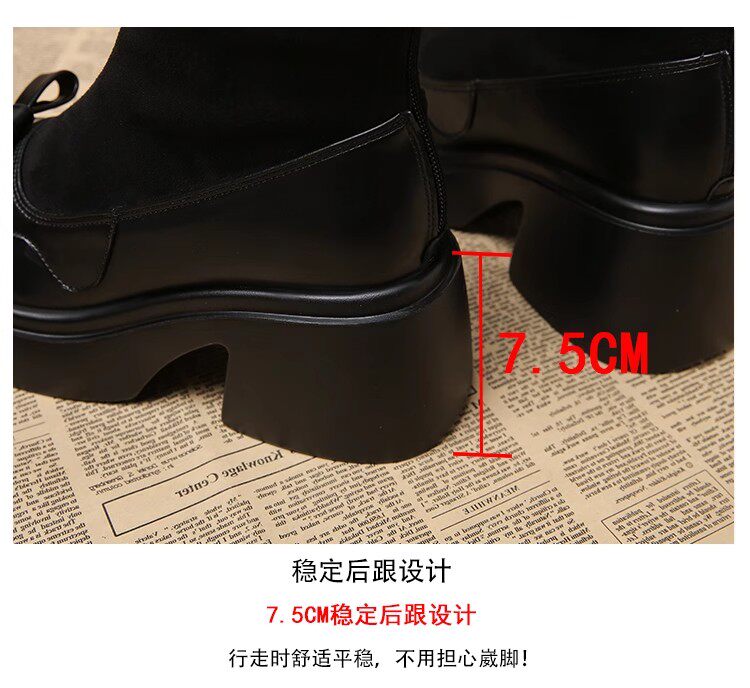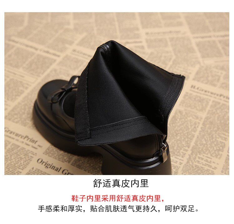 撤櫃品牌女鞋短靴女粗跟秋冬新款小個子高跟馬丁靴韓版厚底瘦瘦靴