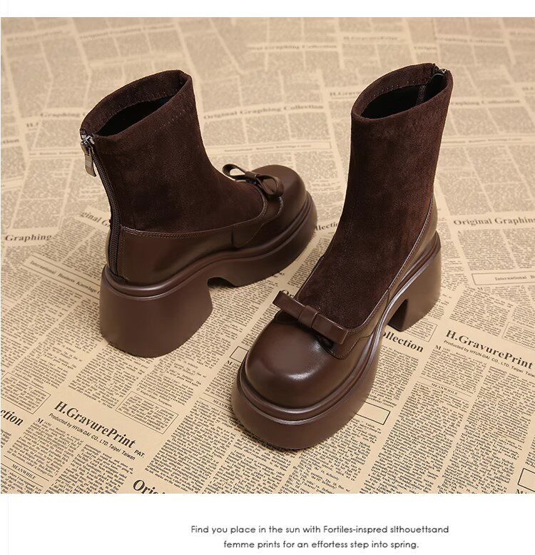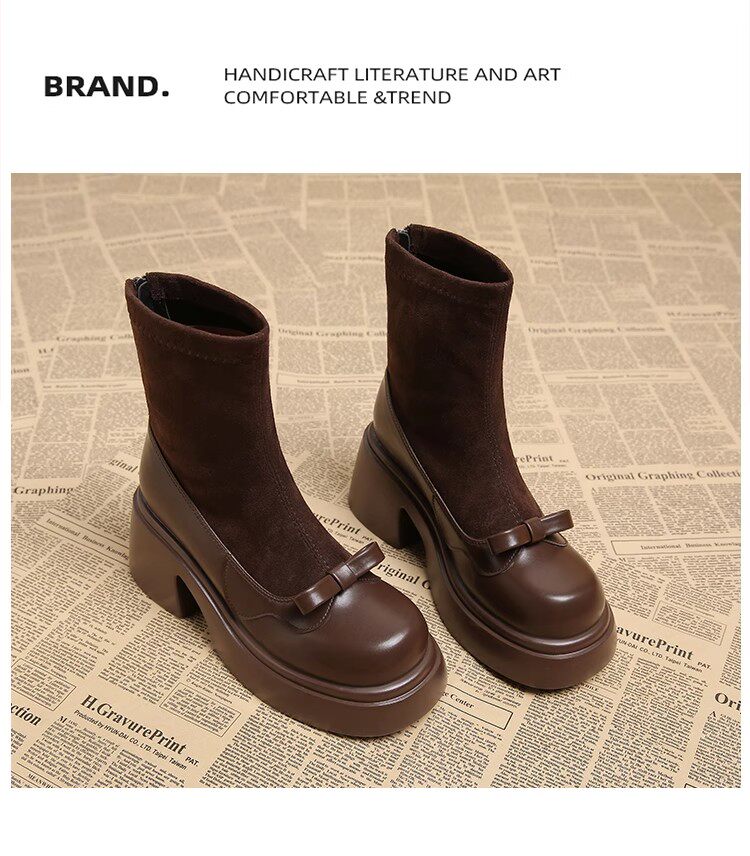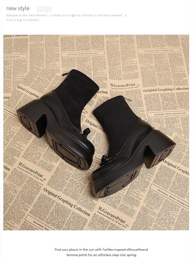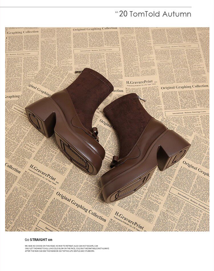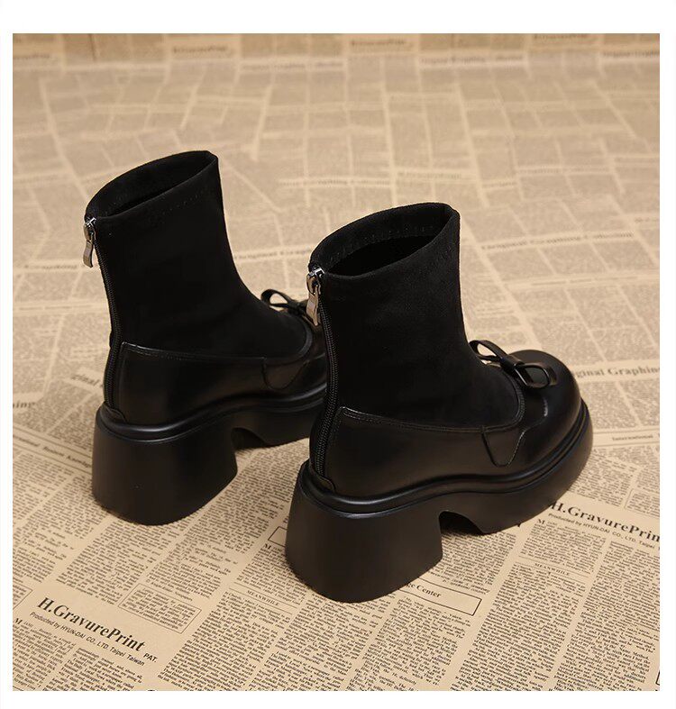 撤櫃品牌女鞋短靴女粗跟秋冬新款小個子高跟馬丁靴韓版厚底瘦瘦靴