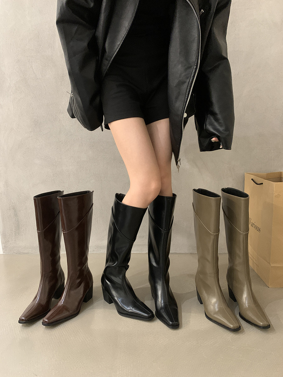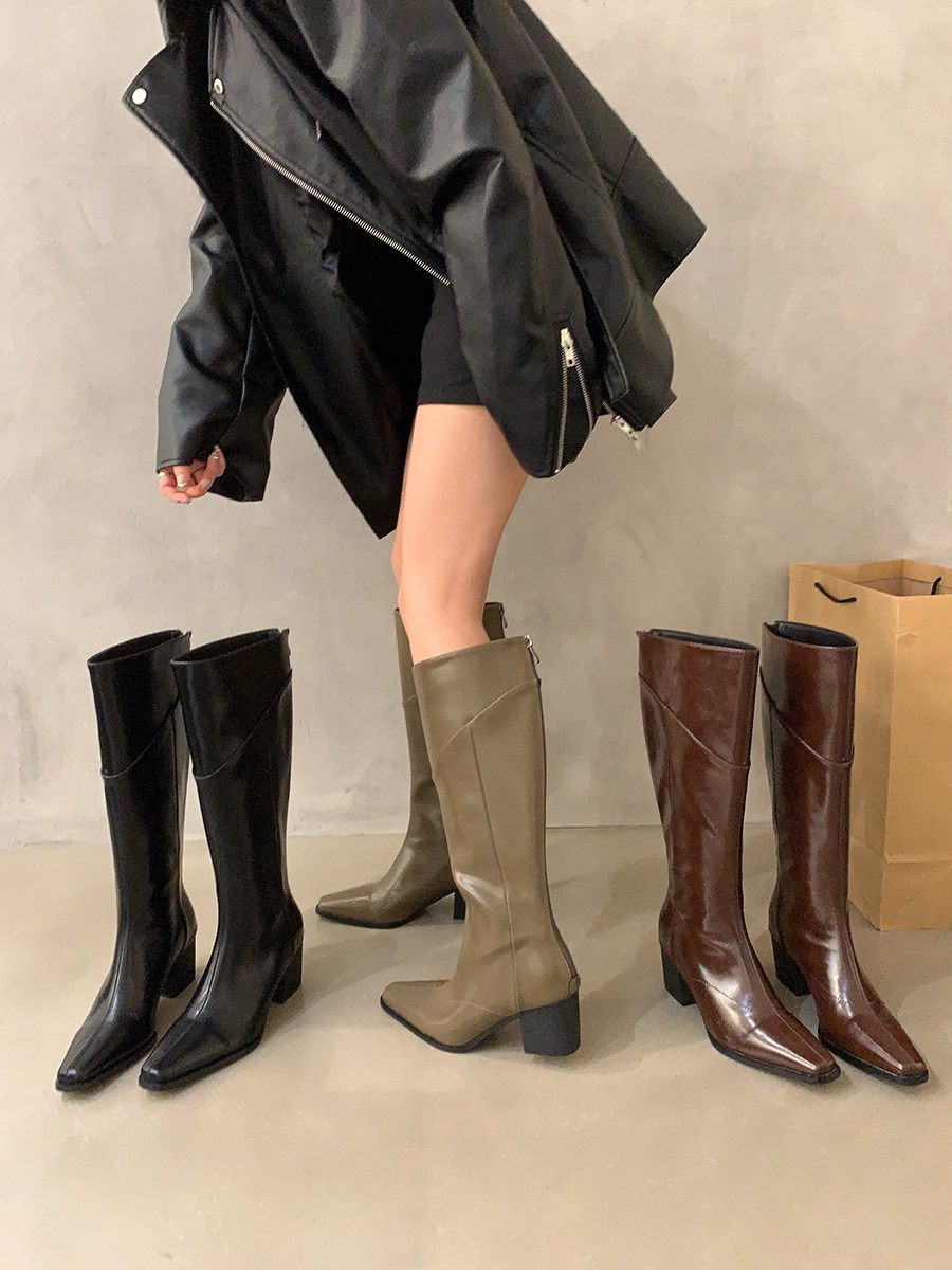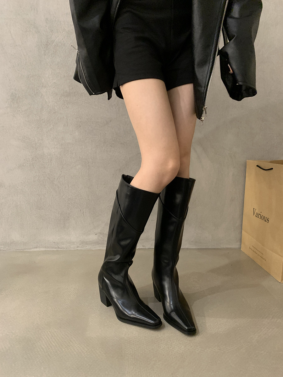 高跟法式黑色瘦瘦長筒騎士靴女鞋2025新款秋冬季氣質尖頭復古長靴