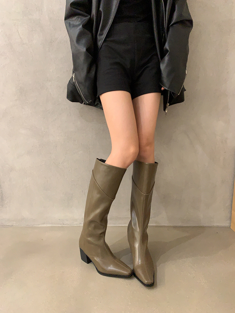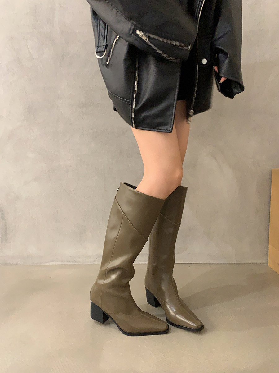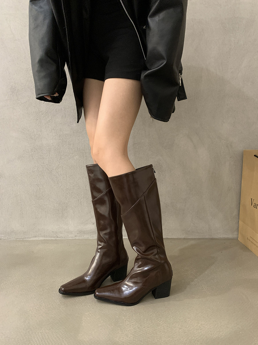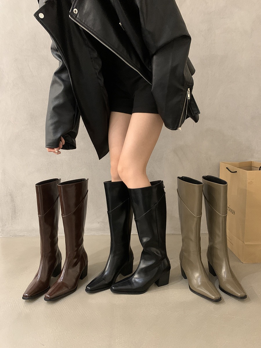 高跟法式黑色瘦瘦長筒騎士靴女鞋2025新款秋冬季氣質尖頭復古長靴