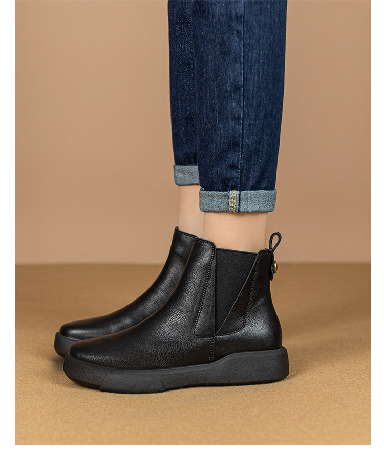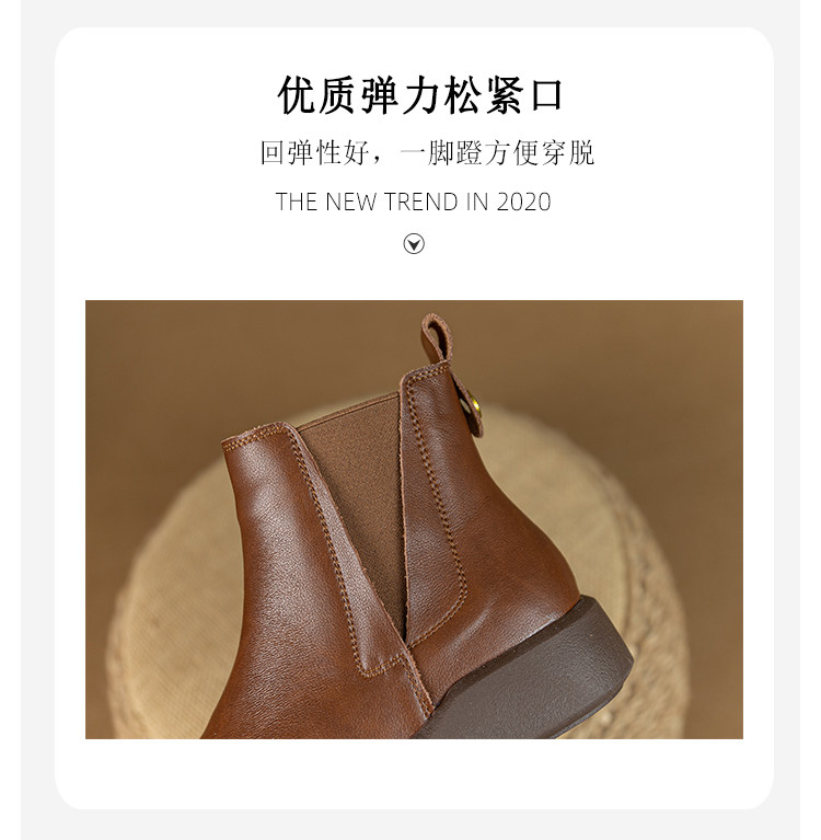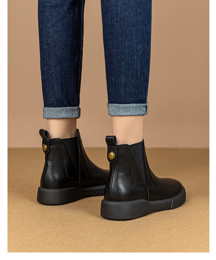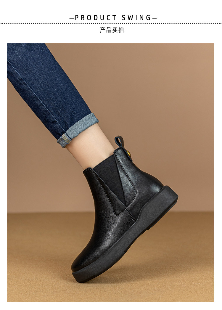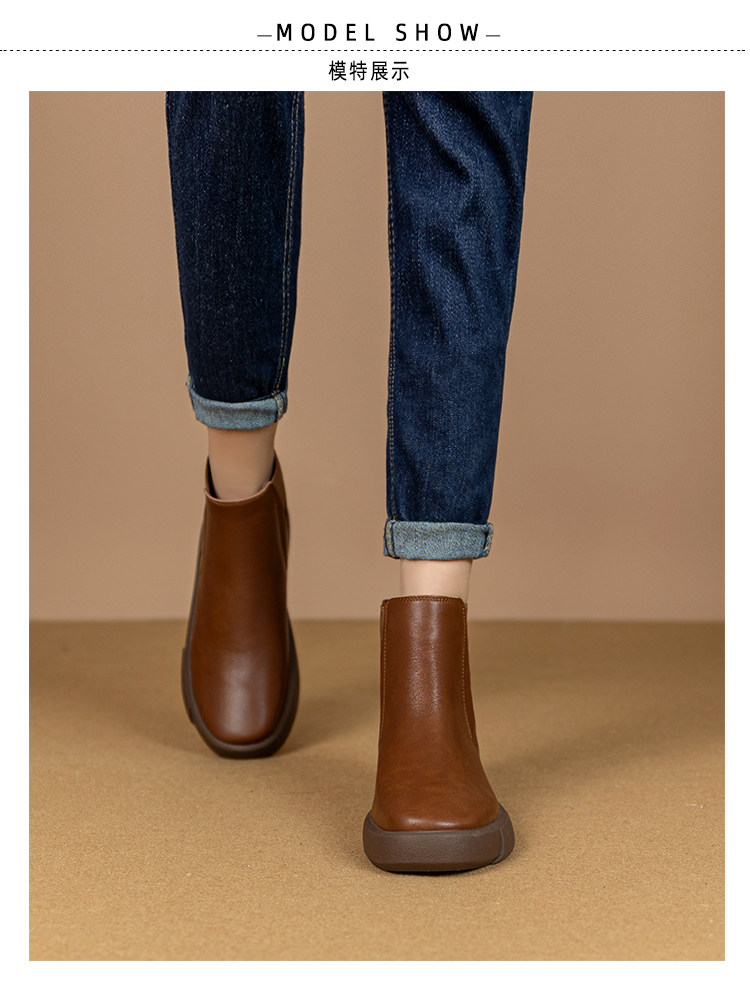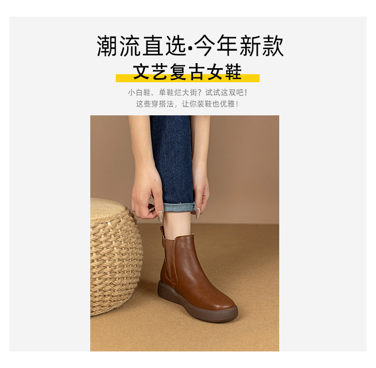 一腳蹬全真皮厚底馬丁靴女2025年新款秋冬季加絨復古切爾西小短靴