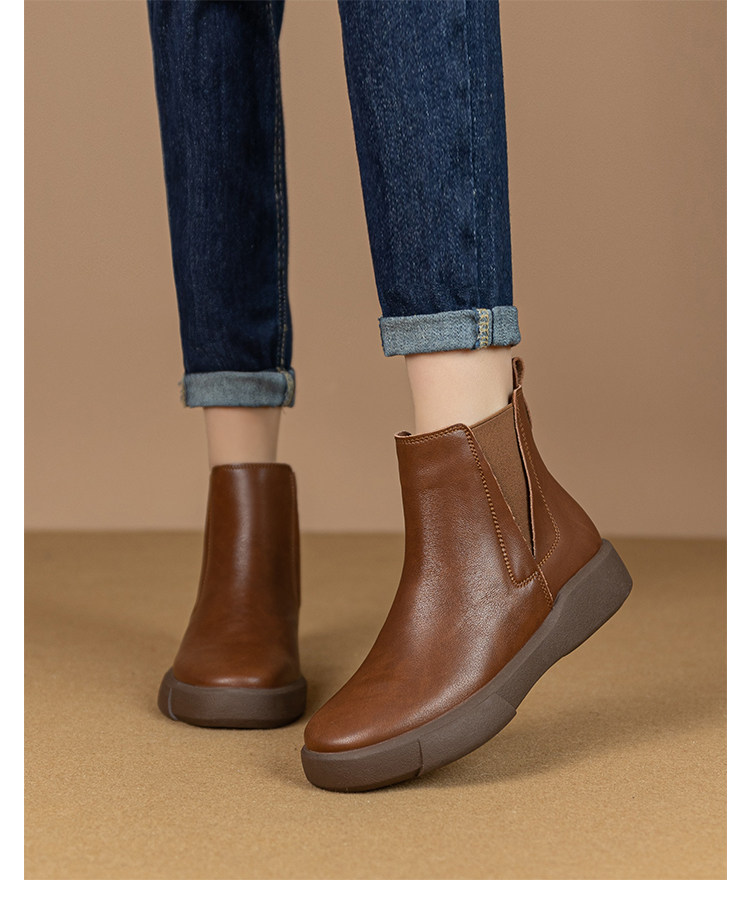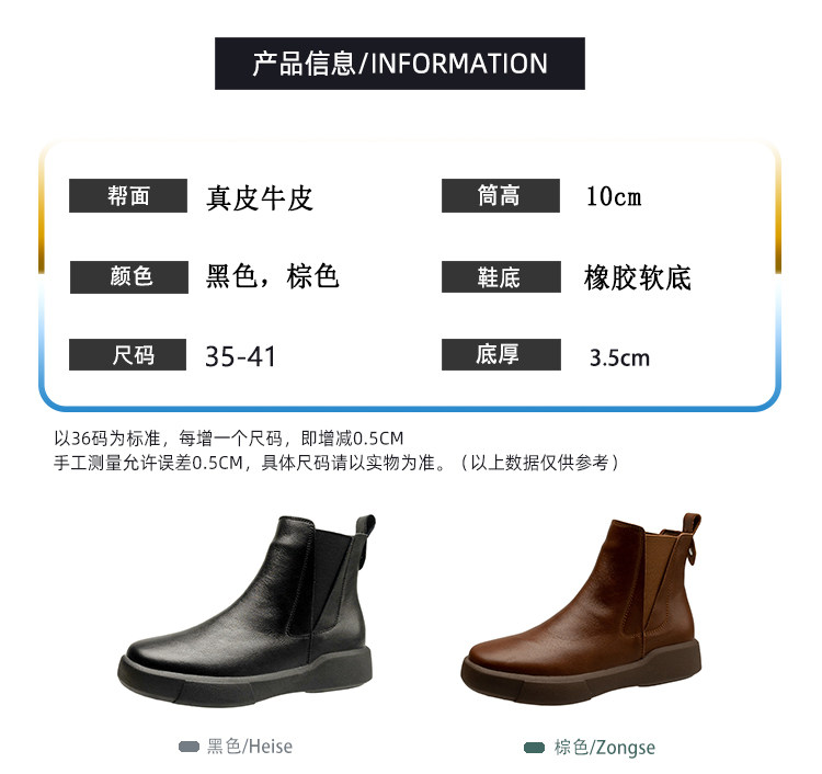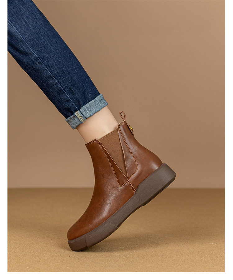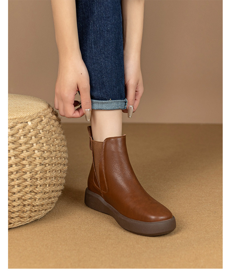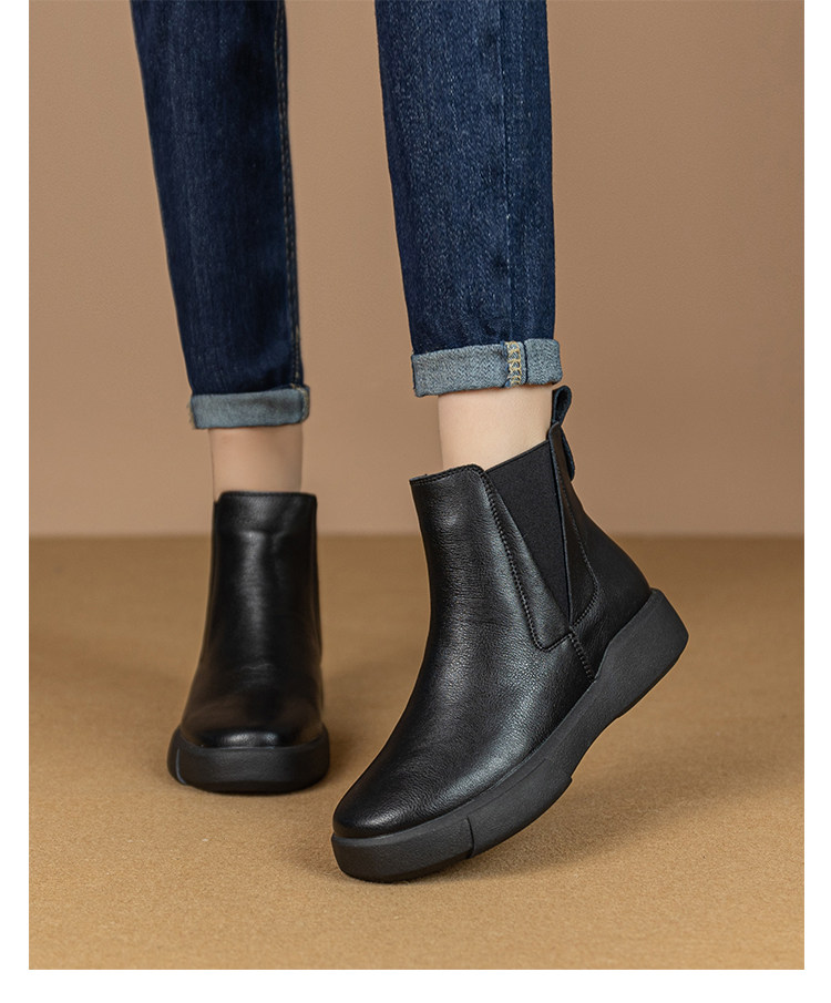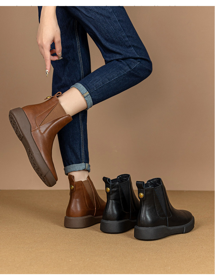 一腳蹬全真皮厚底馬丁靴女2025年新款秋冬季加絨復古切爾西小短靴