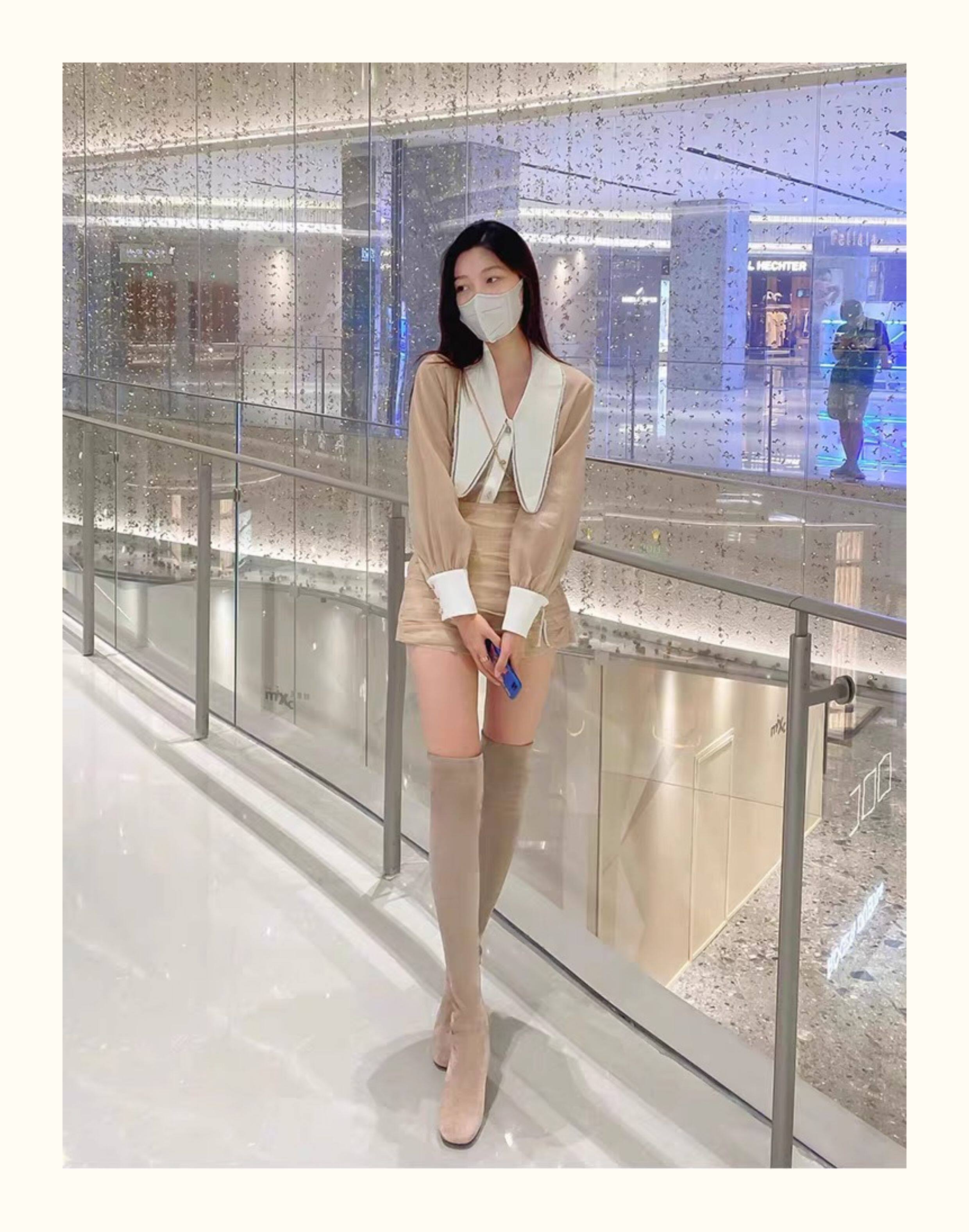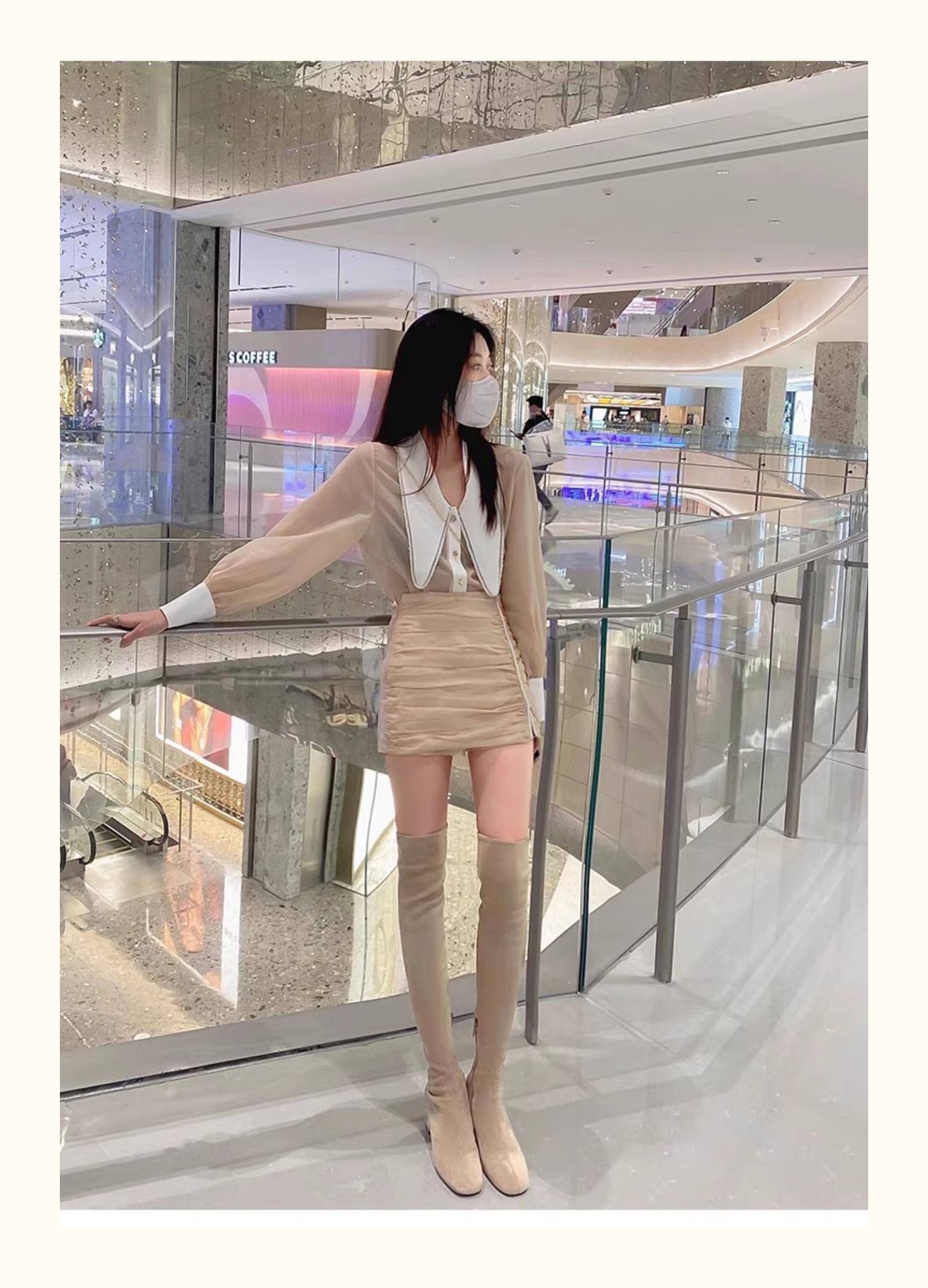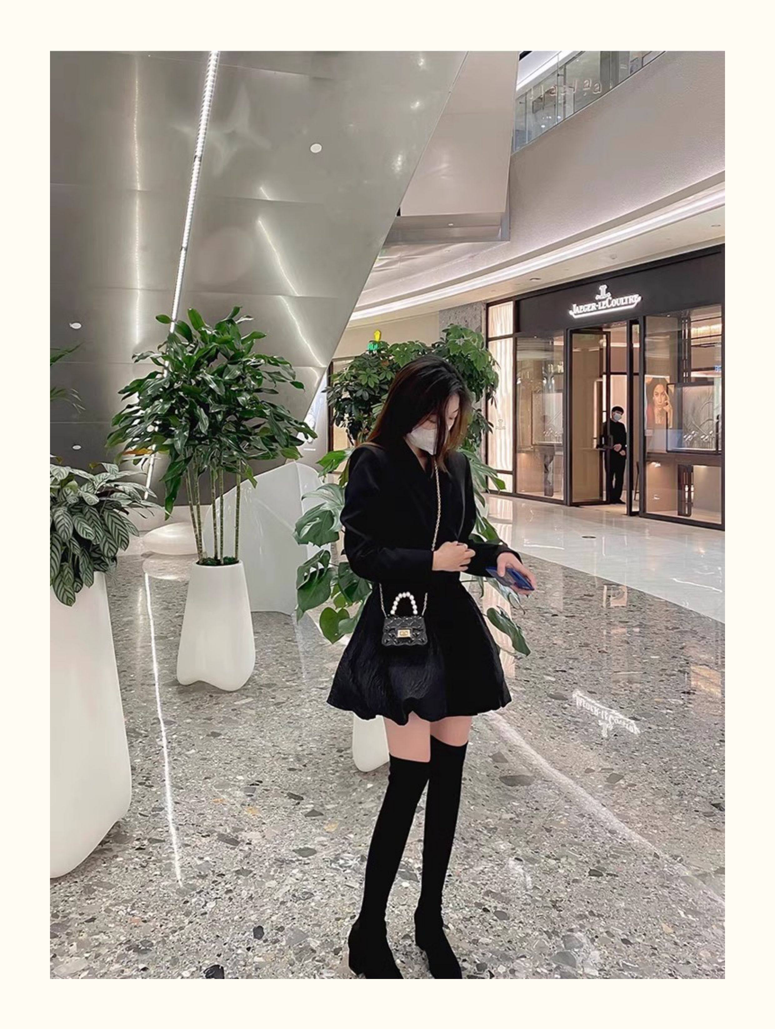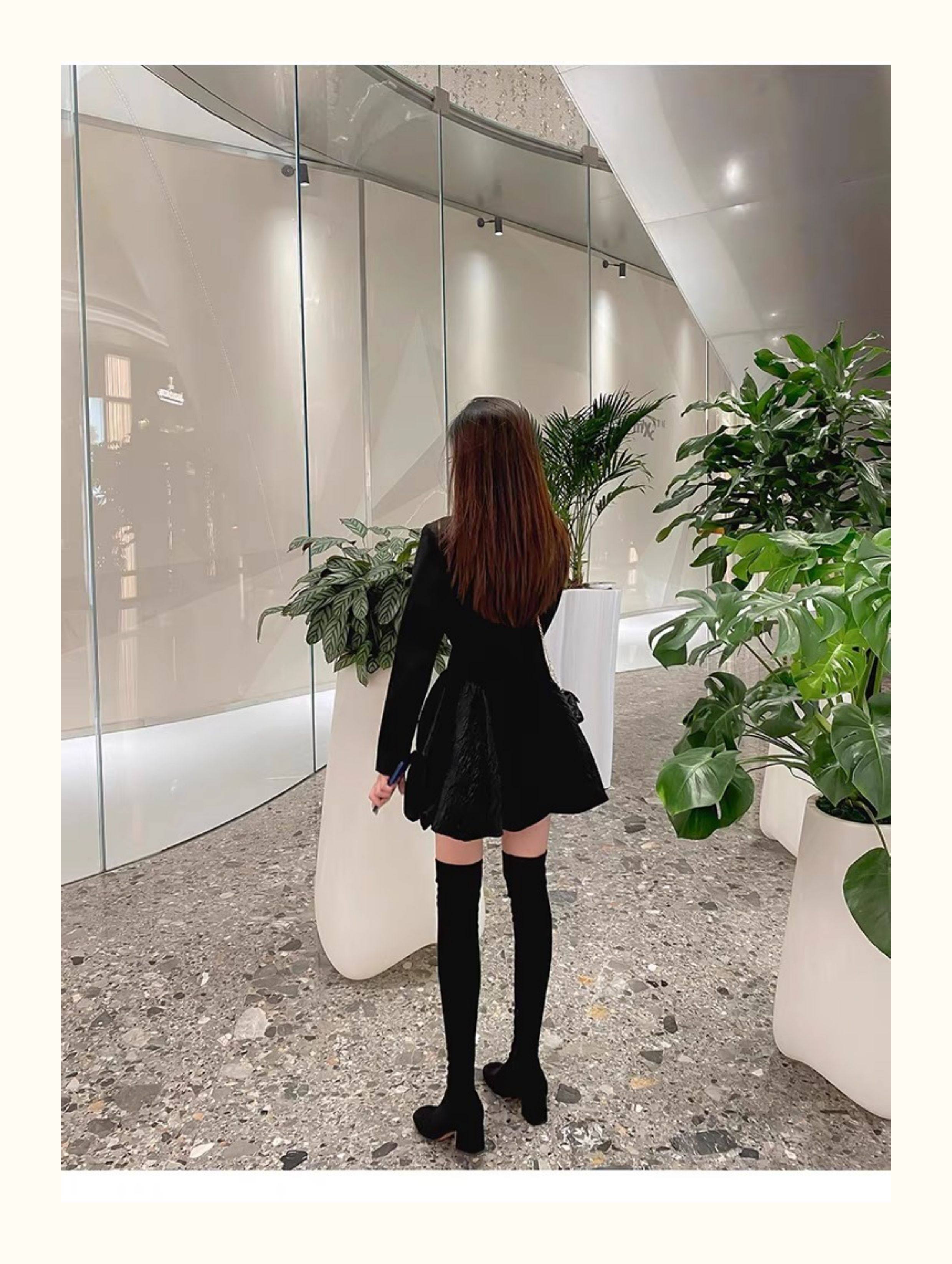 過膝靴女高跟彈力長筒靴秋冬季圓頭小個子絨面粗跟高筒瘦瘦長靴女