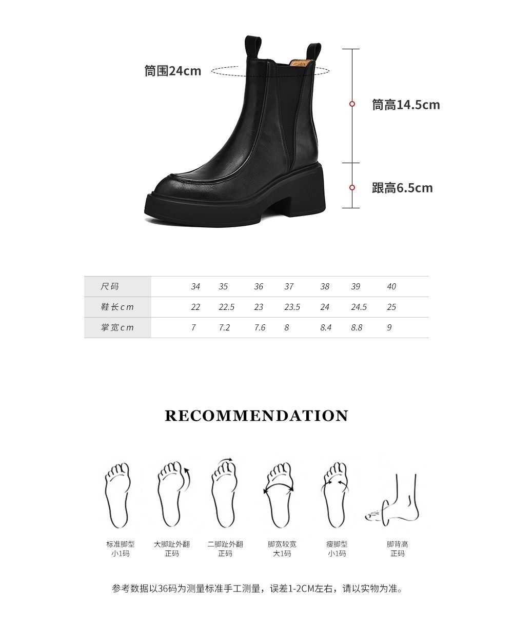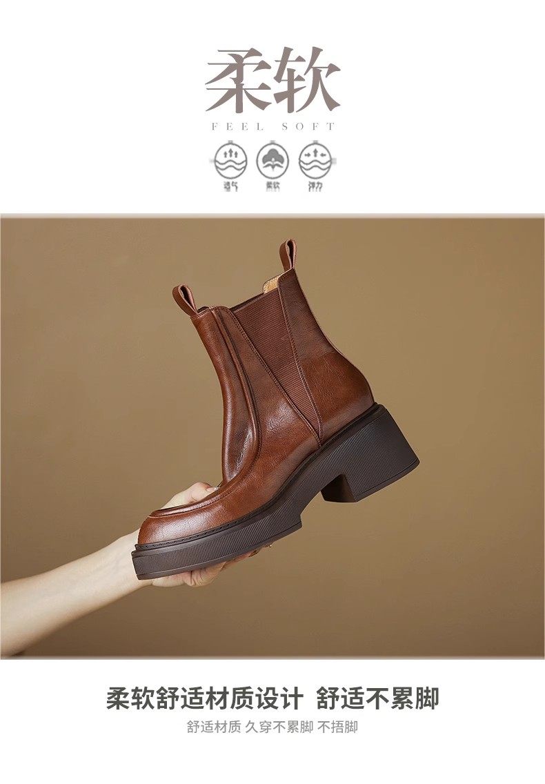 2024年新款帥氣百搭馬丁靴粗跟真皮松糕底女靴尖頭厚底切爾西靴女