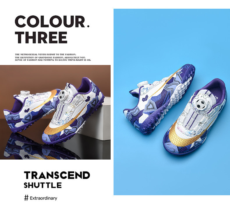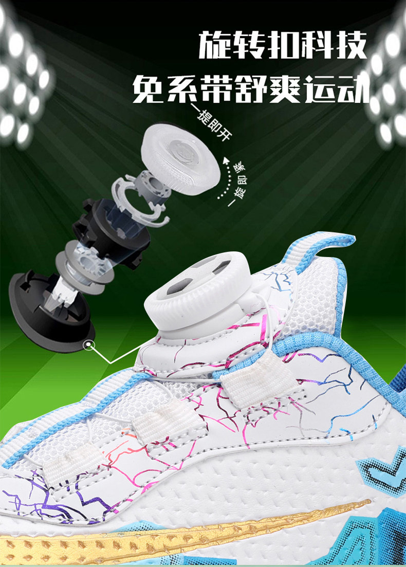 姆巴珮刺客兒童足球鞋男童小學生旋轉紐釦比賽球鞋女孩專業訓練鞋