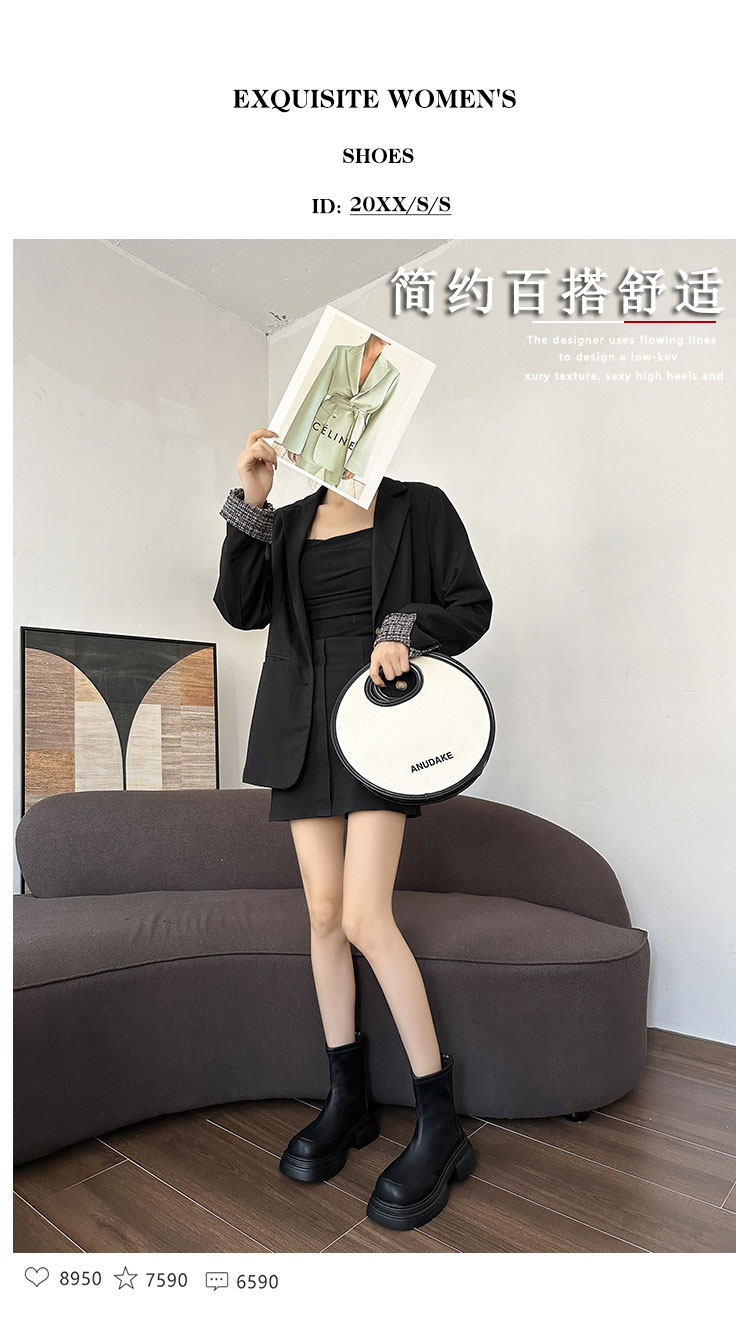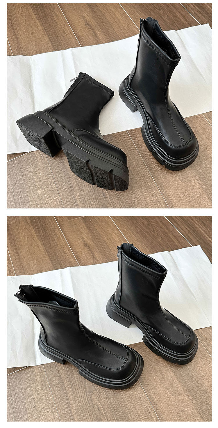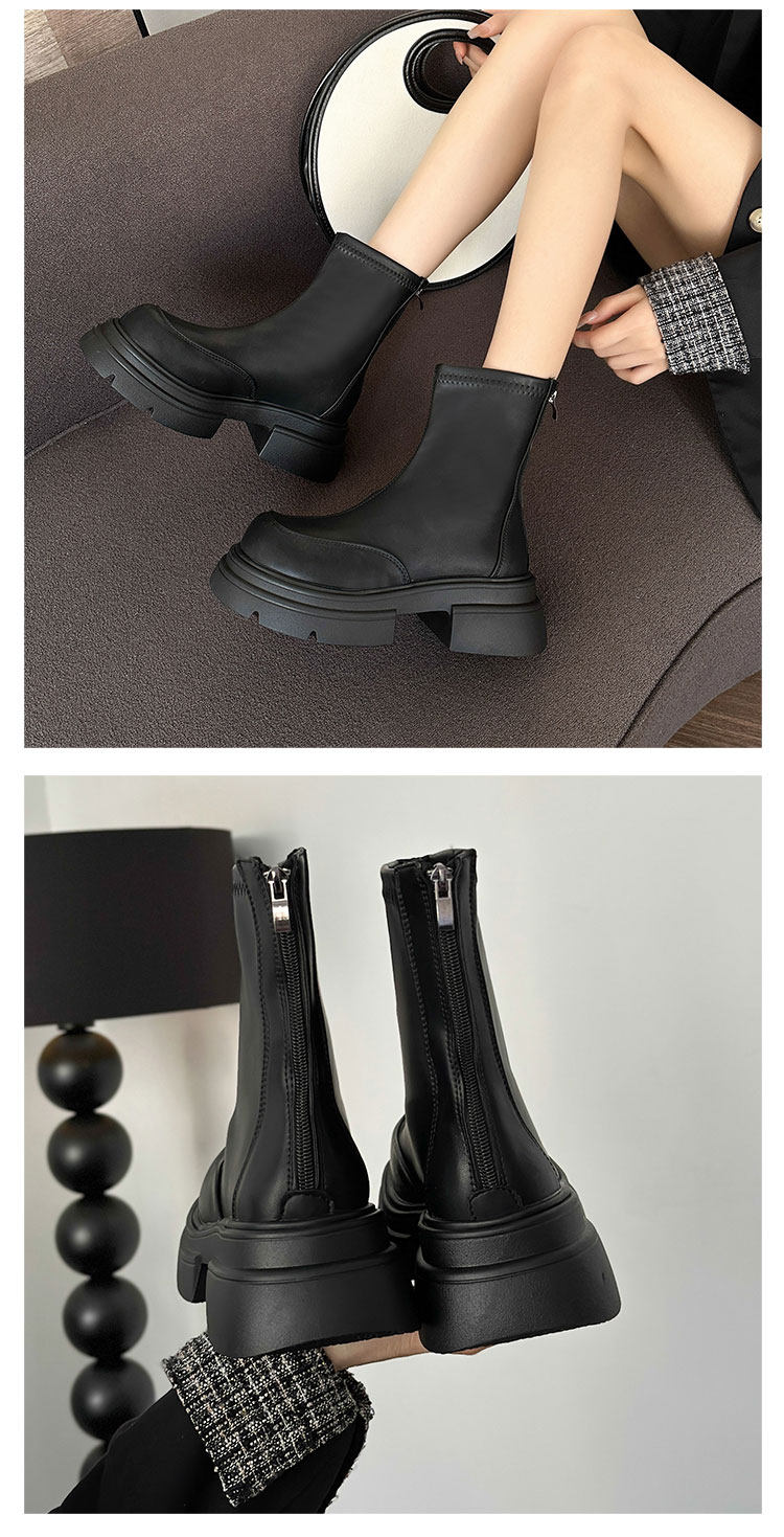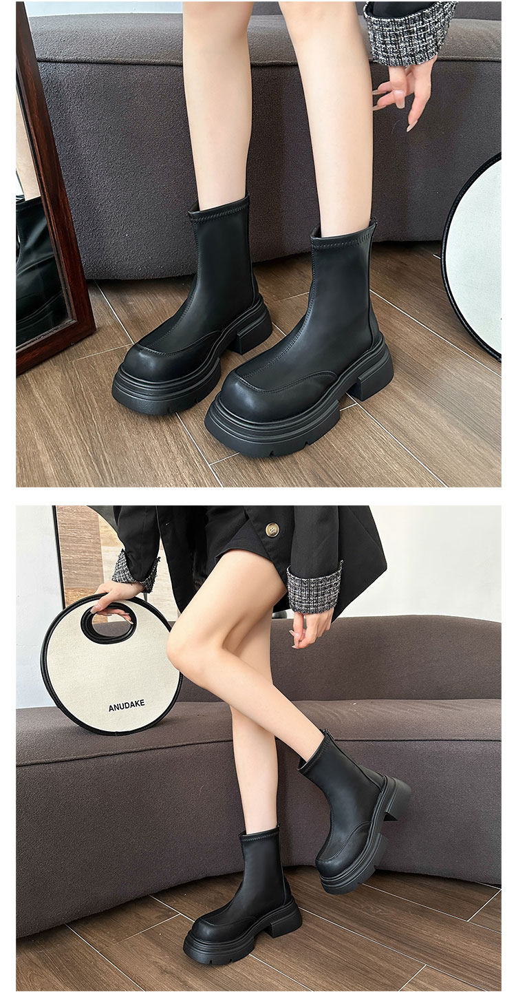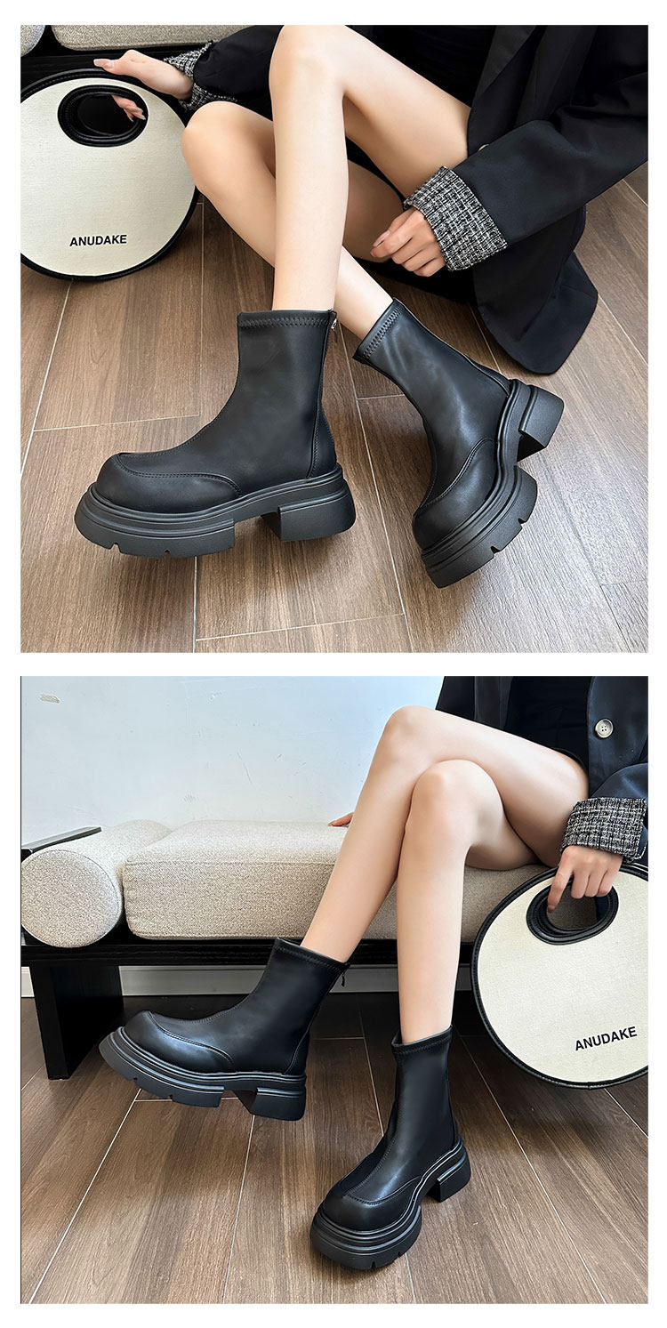 黑色厚底馬丁靴2025新款英倫風百搭切爾西方頭時尚瘦瘦靴秋冬短靴