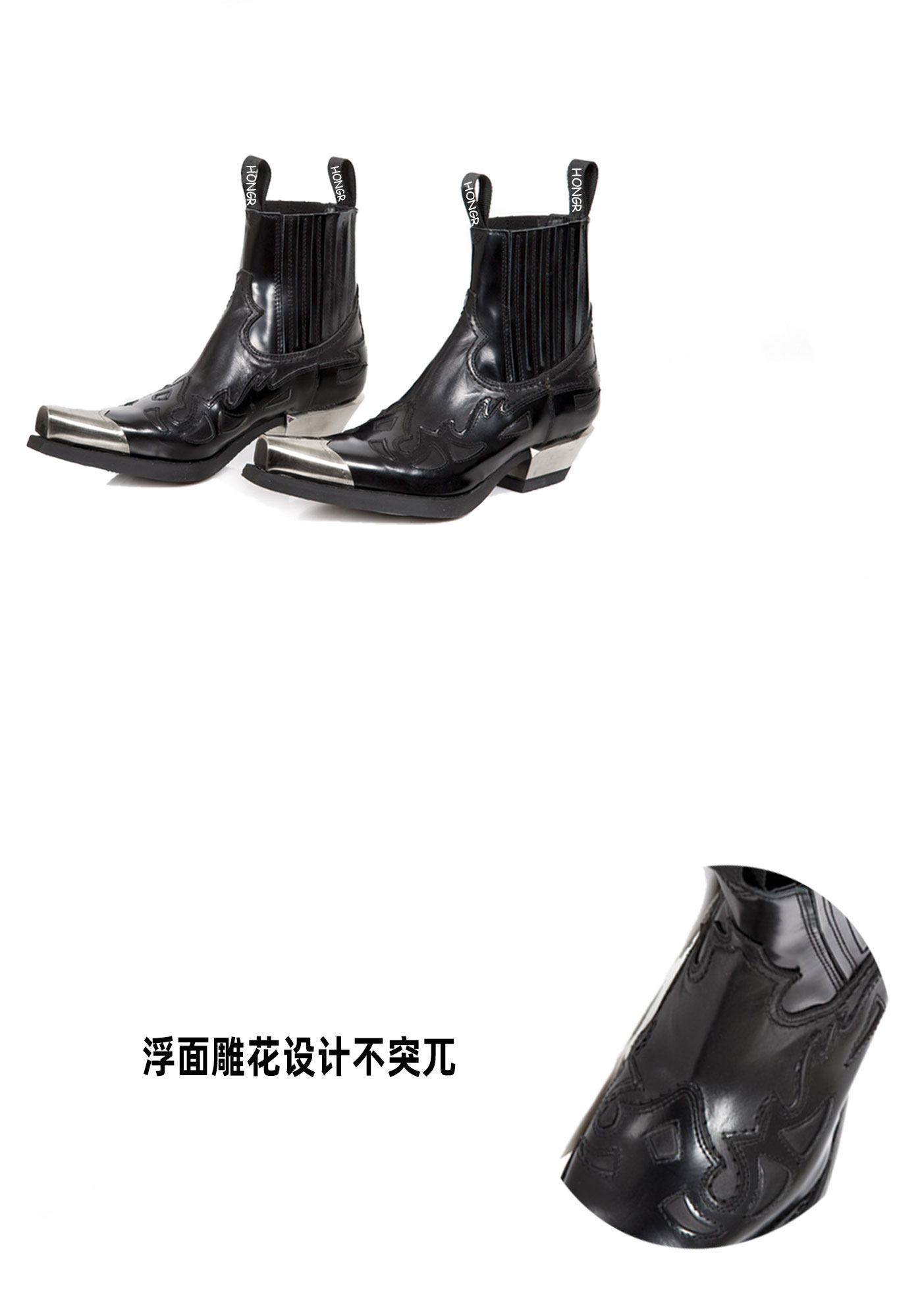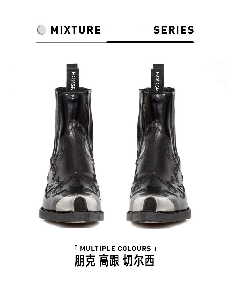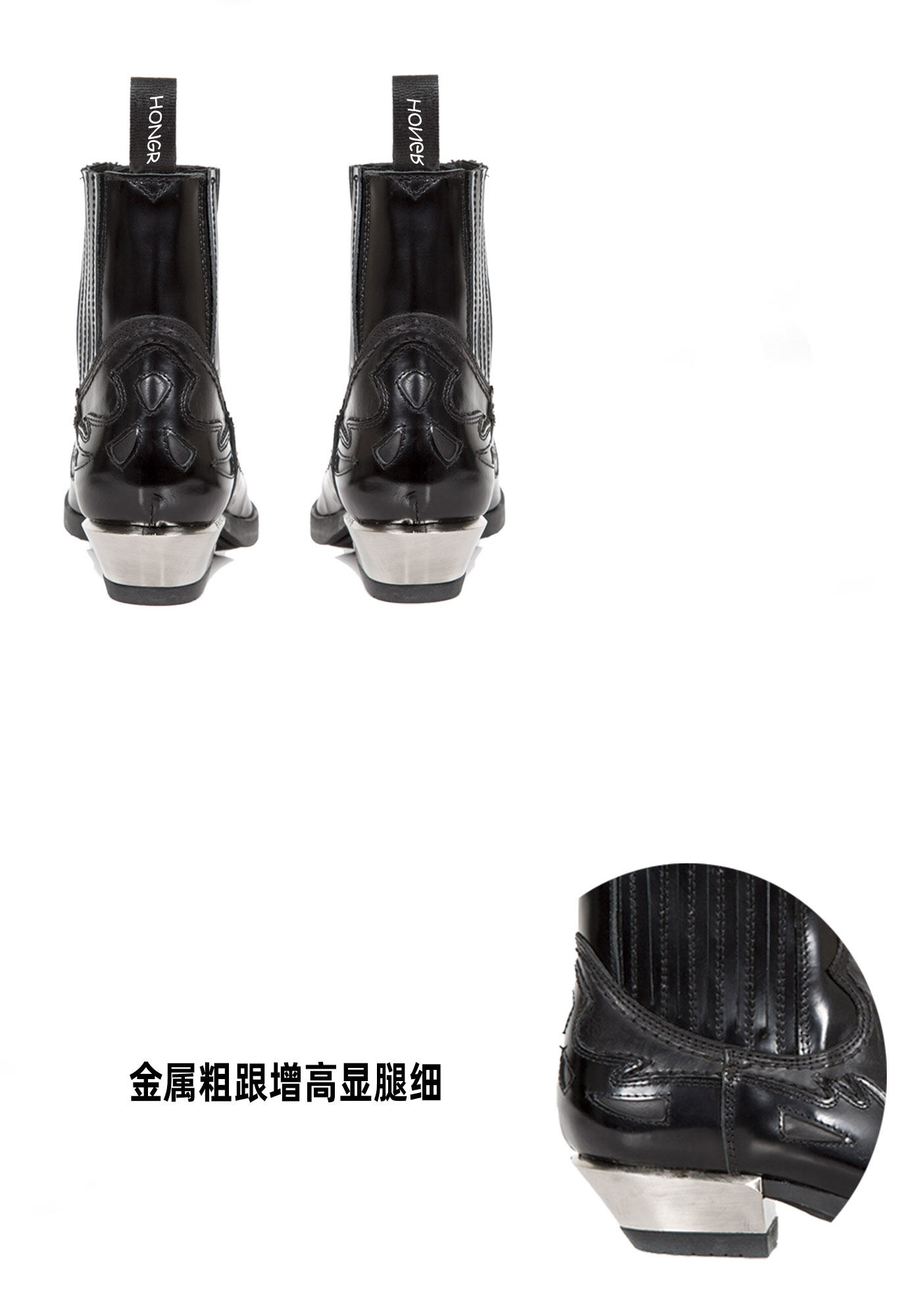 西班牙潮牌龐克切爾西靴秋冬新款西部牛仔靴女高跟方頭短筒馬丁靴