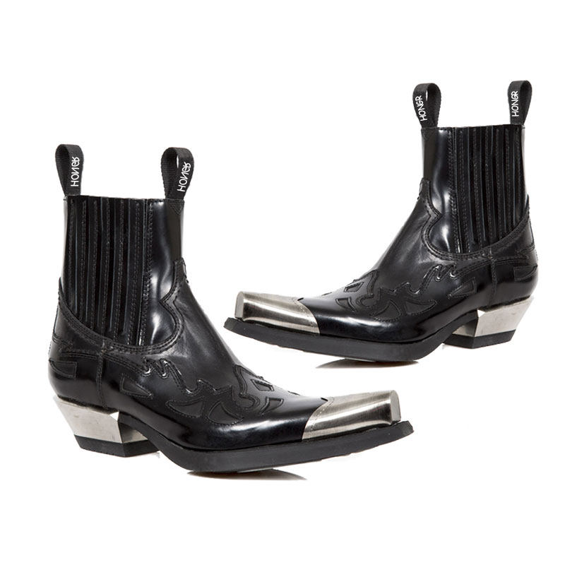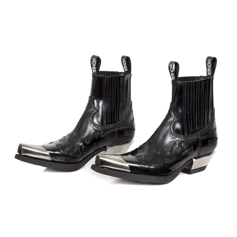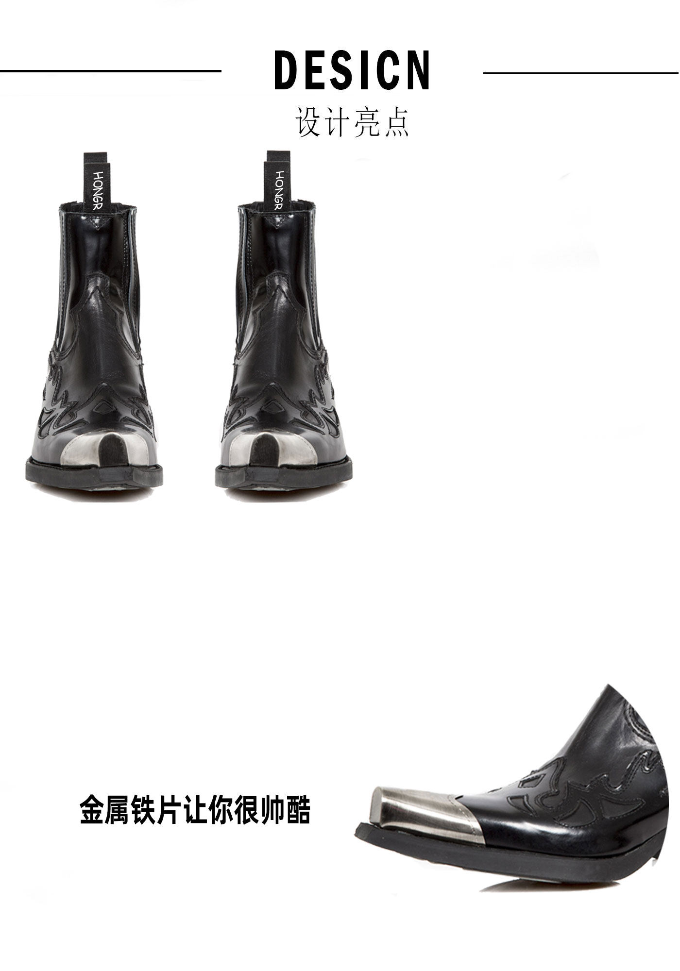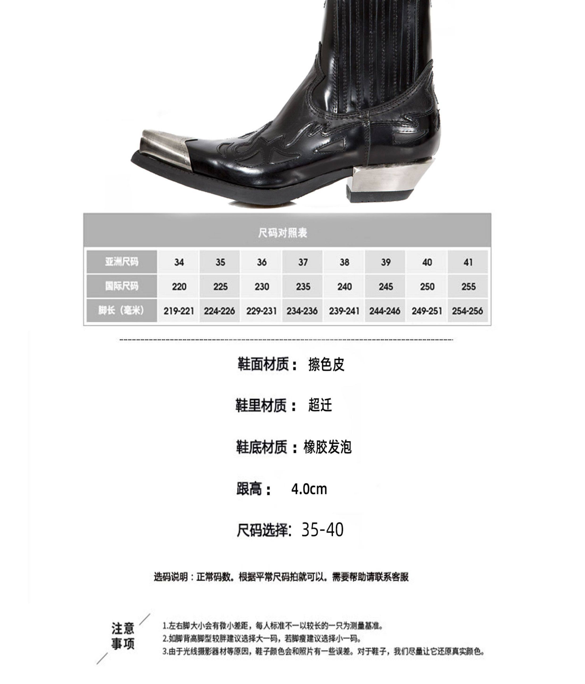 西班牙潮牌龐克切爾西靴秋冬新款西部牛仔靴女高跟方頭短筒馬丁靴
