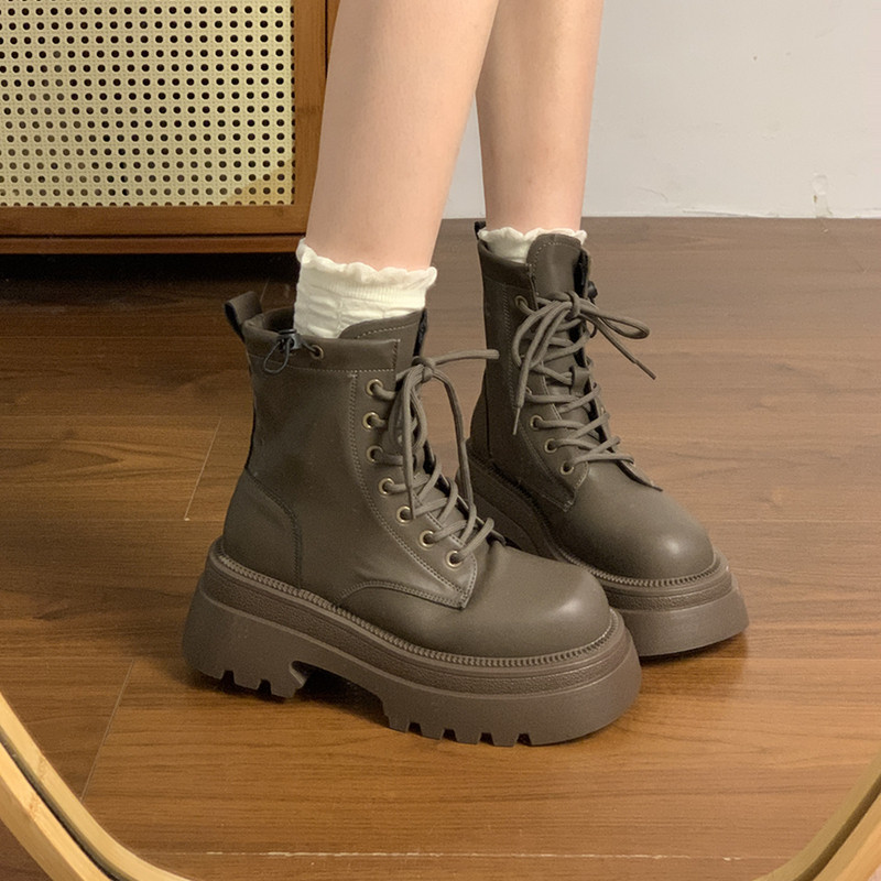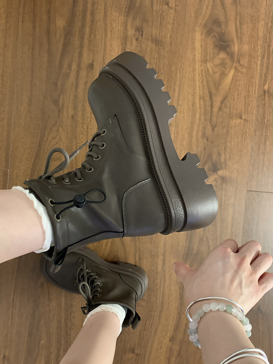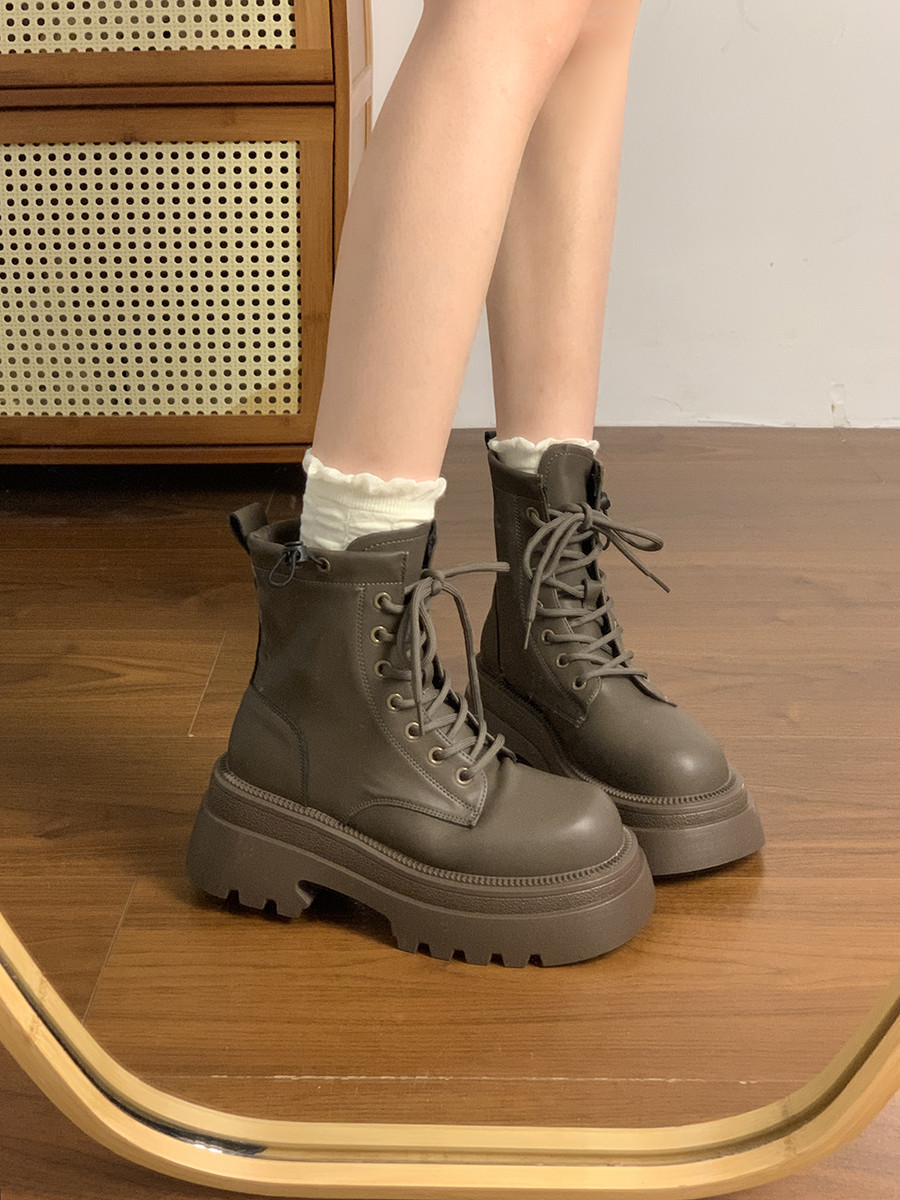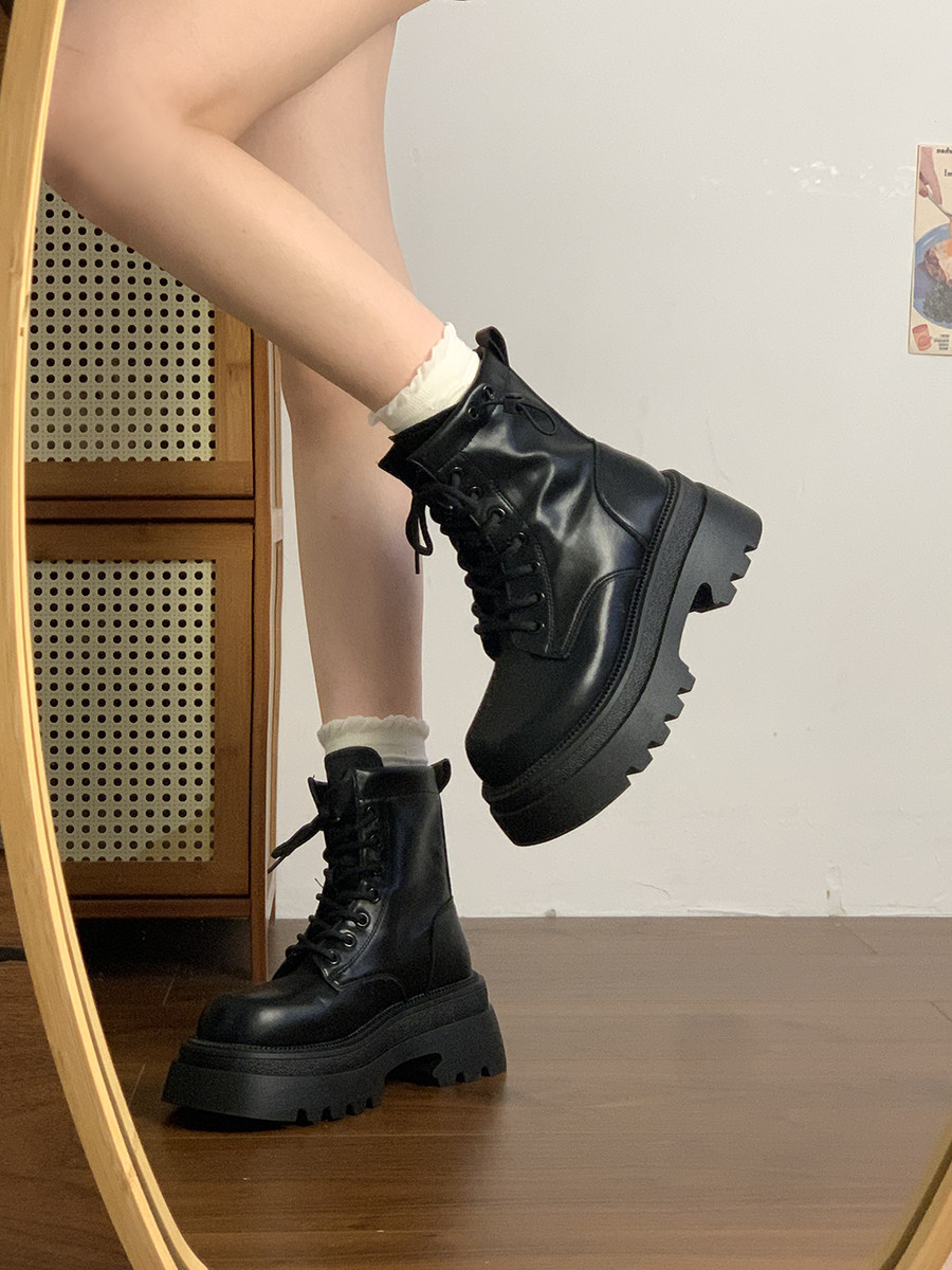 厚底馬丁靴女2025新款秋冬加絨靴子百搭短筒英倫風小個子增高短靴