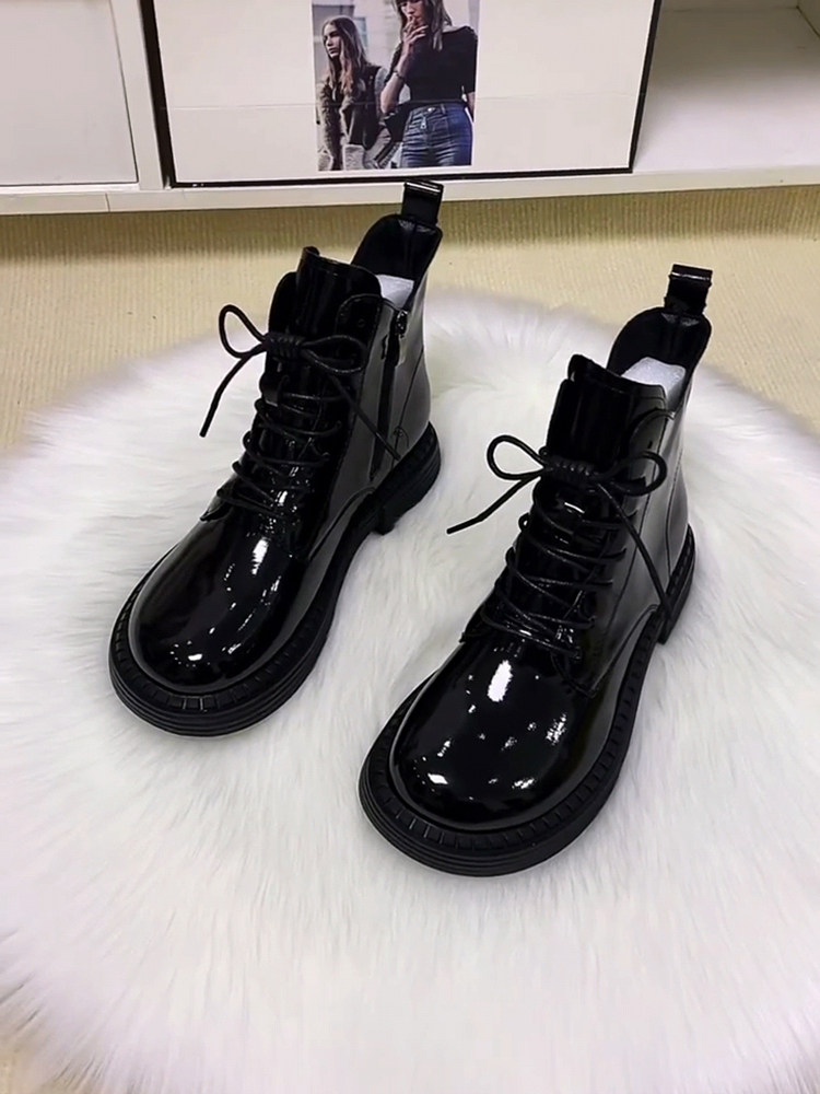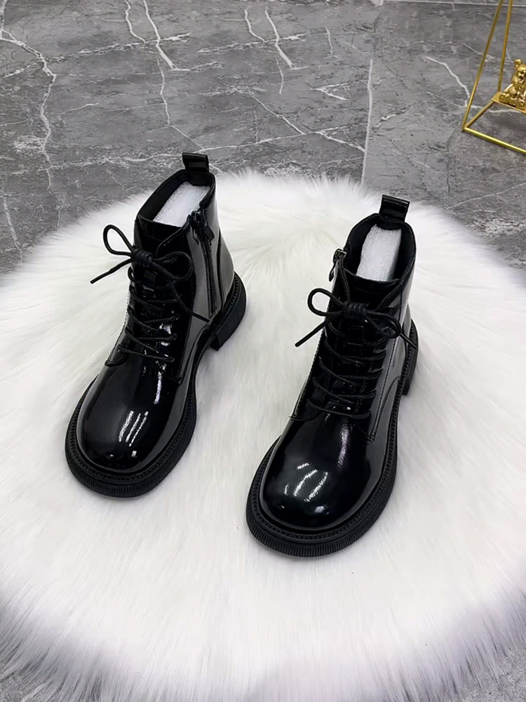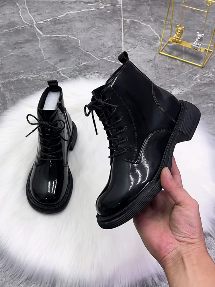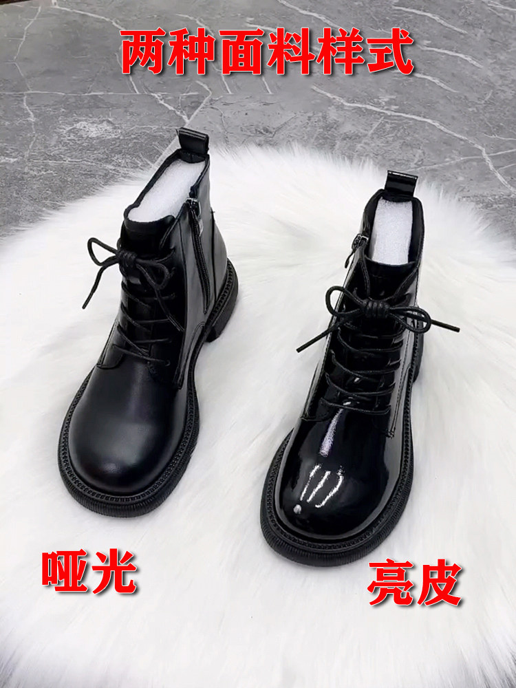 超火馬丁靴女平底真皮新款漆皮芒果頭時尚短靴冬加絨棉靴秋單靴子