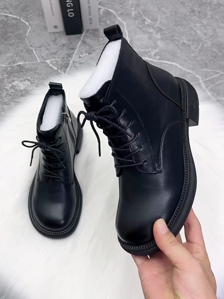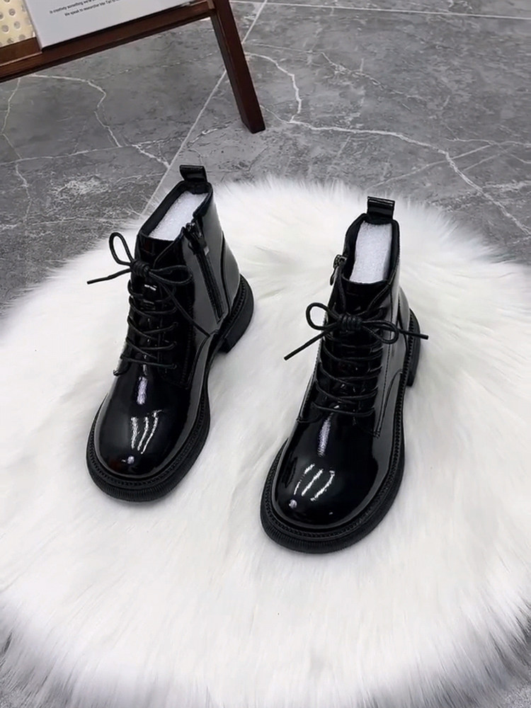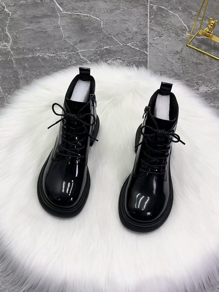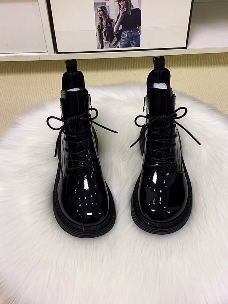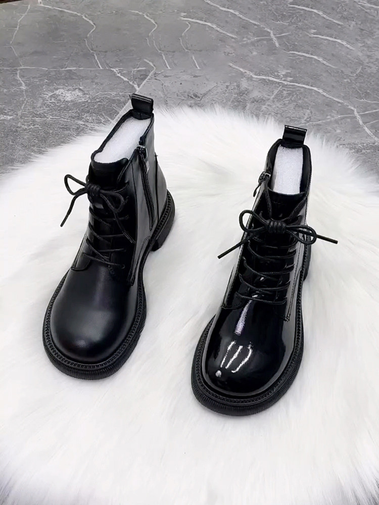 超火馬丁靴女平底真皮新款漆皮芒果頭時尚短靴冬加絨棉靴秋單靴子