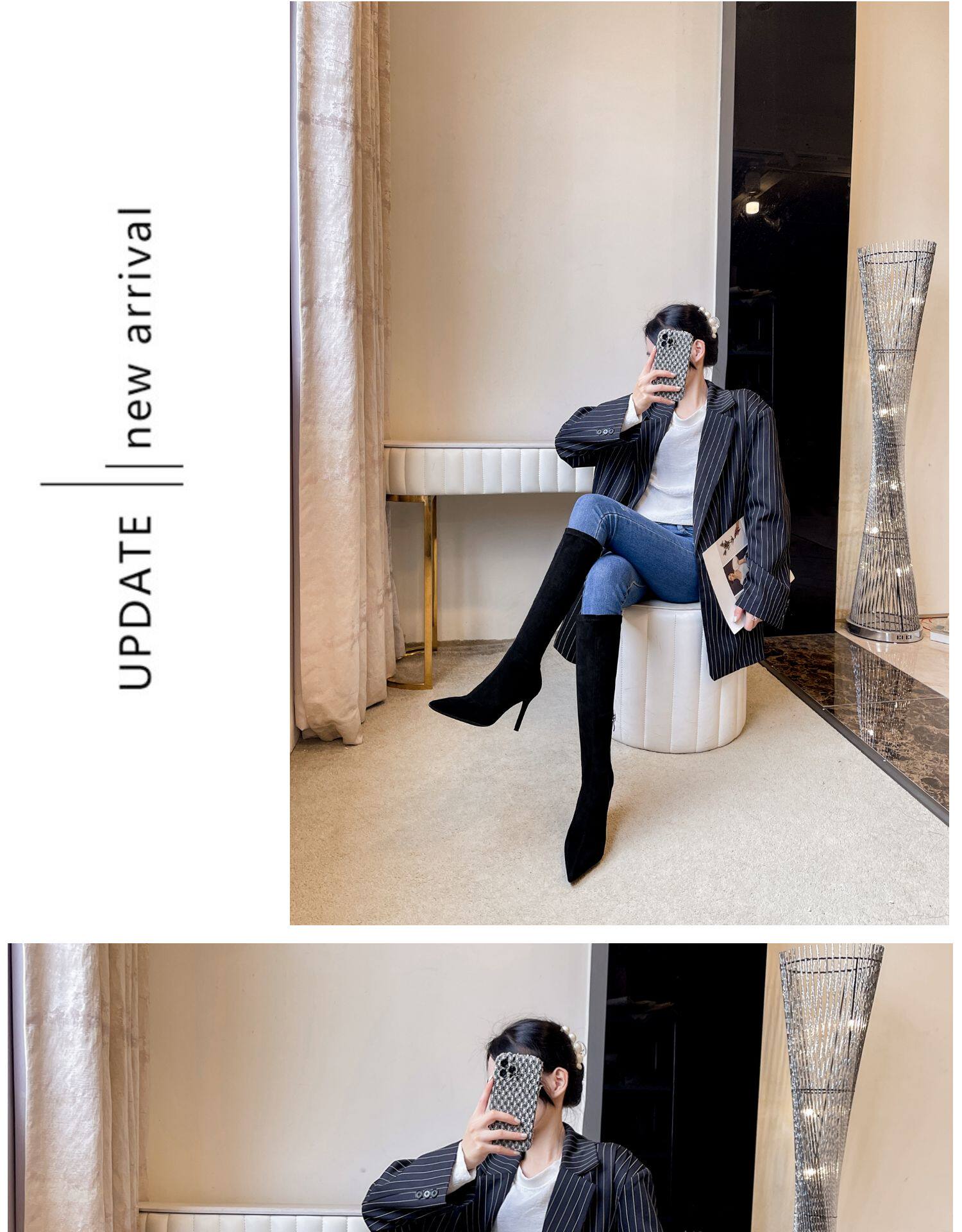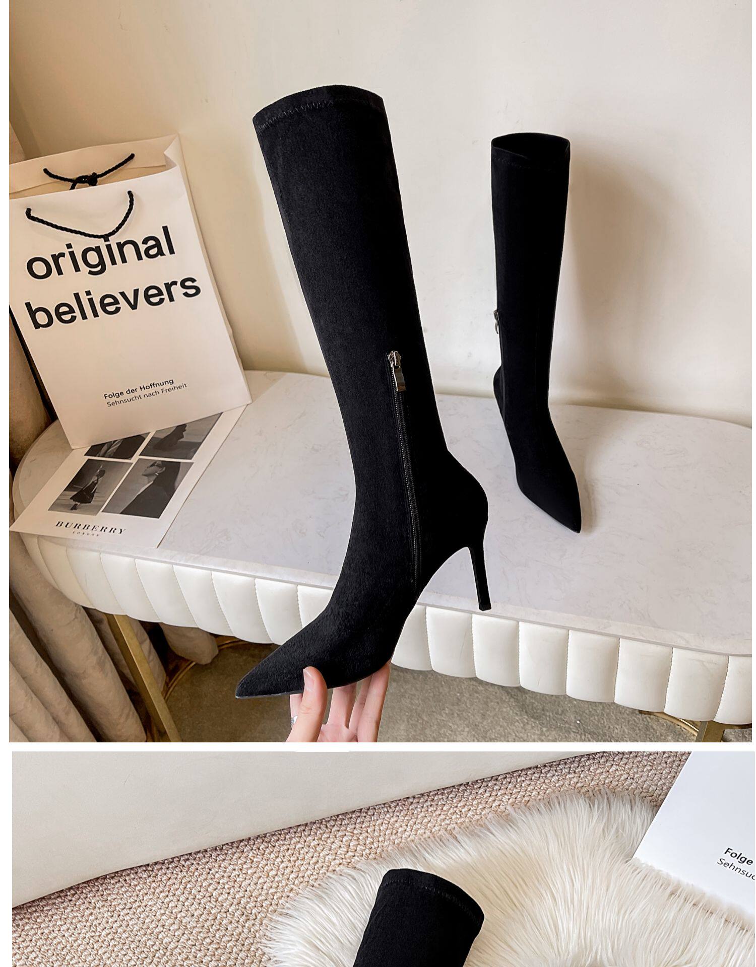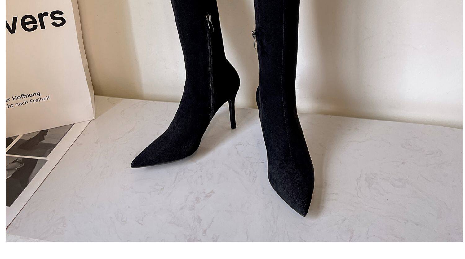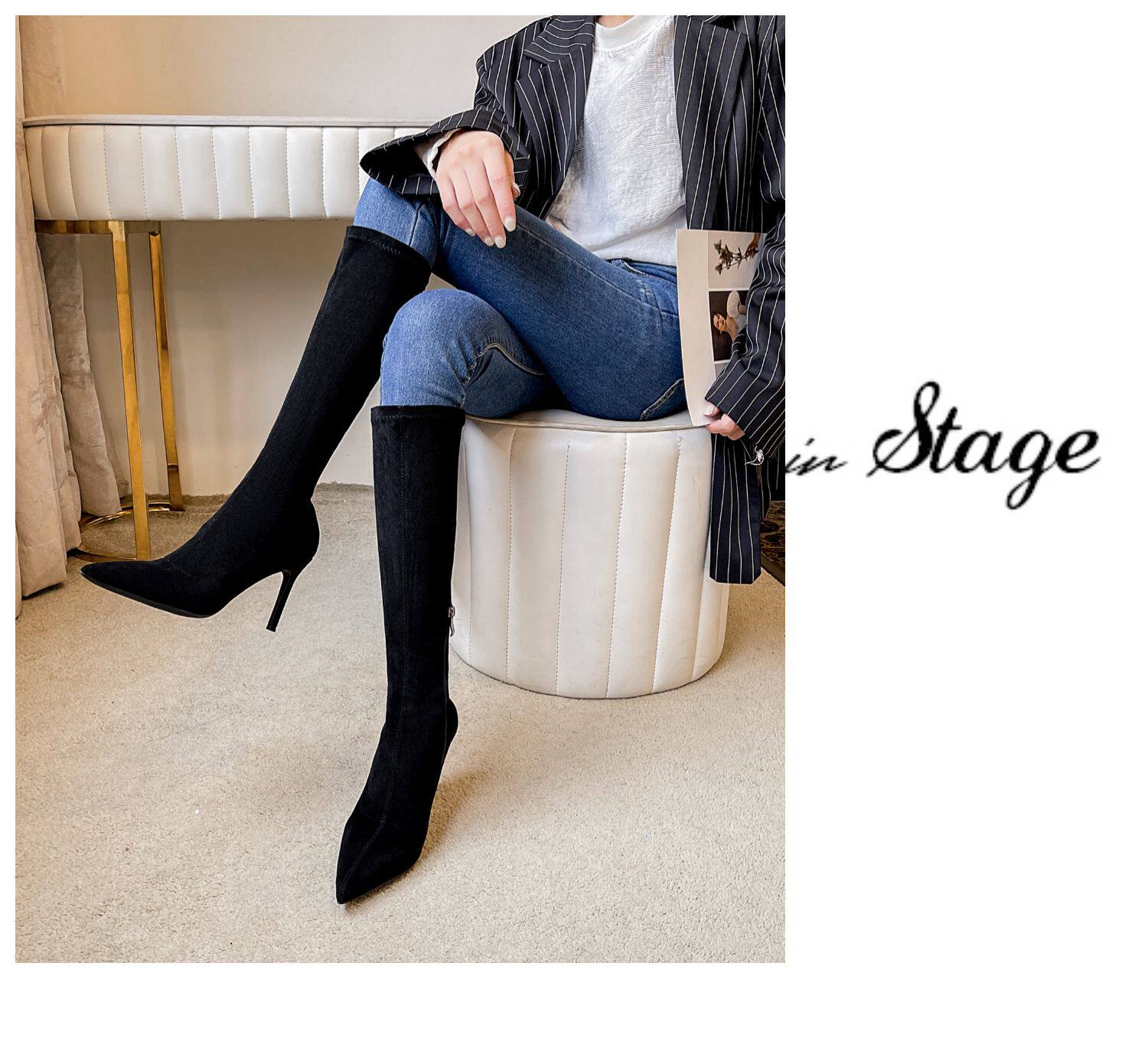 歐美2025秋冬季新款黑色顯瘦彈力靴尖頭高跟長靴女細跟瘦瘦靴子女