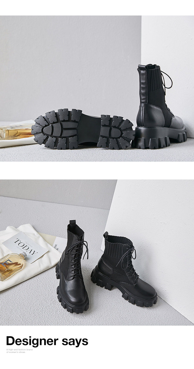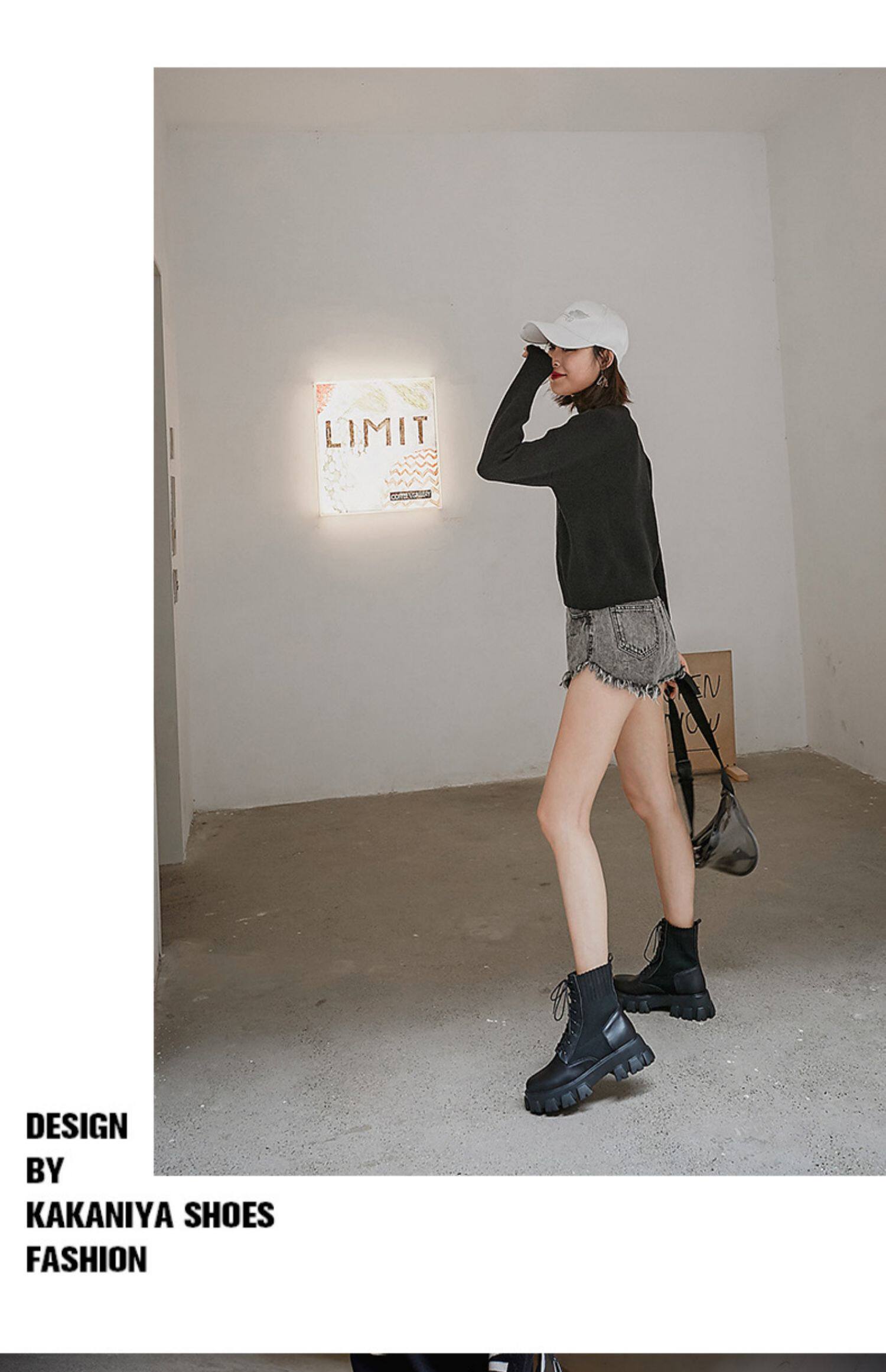 乘風破浪的姐姐王心淩同款馬丁靴夏季透氣厚底松糕中筒靴子薄款潮