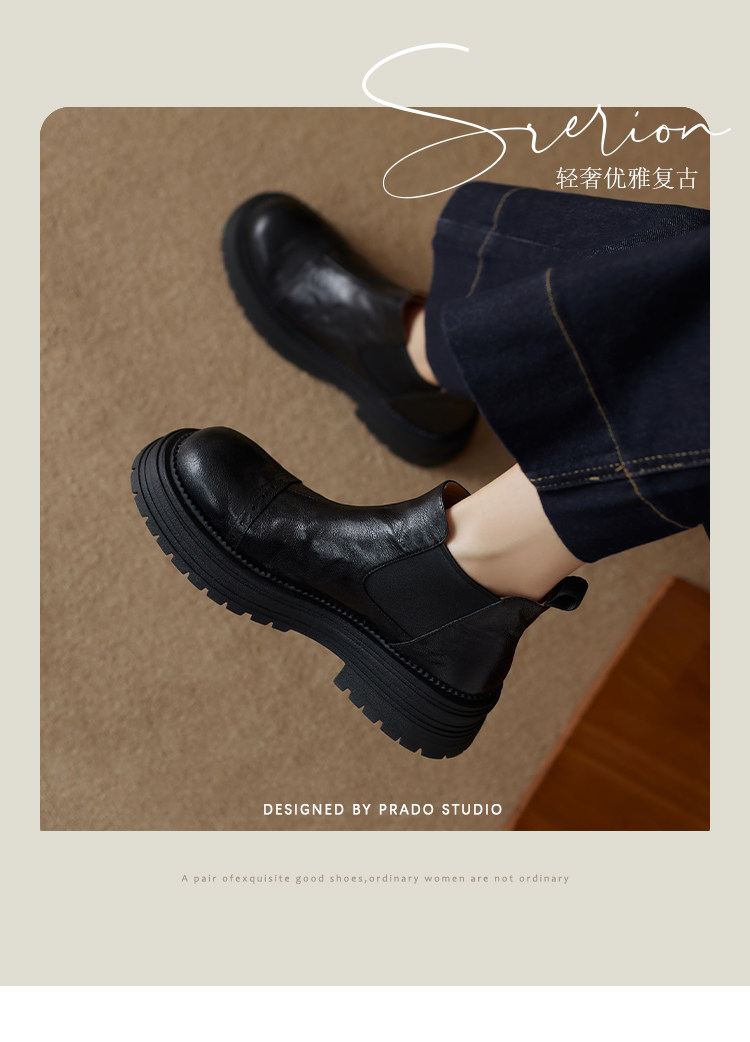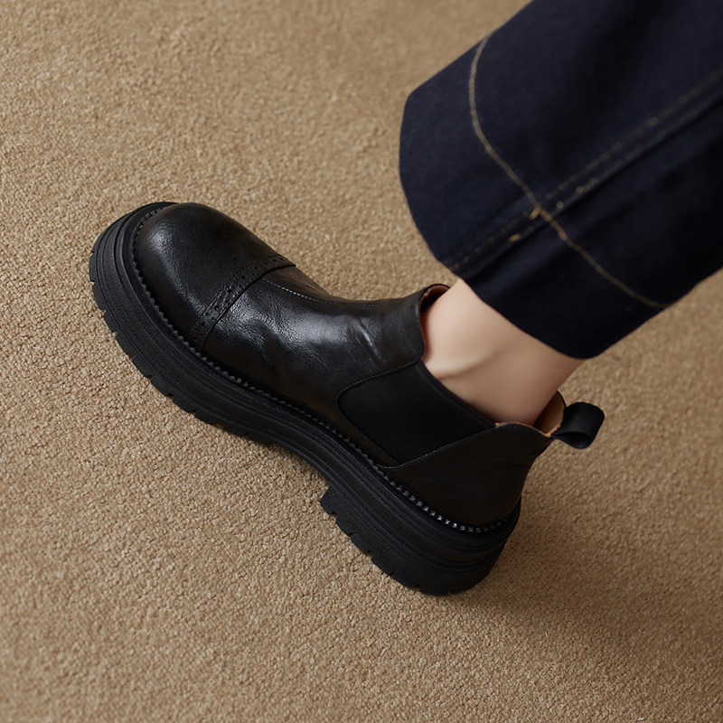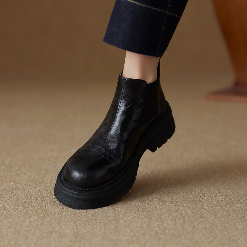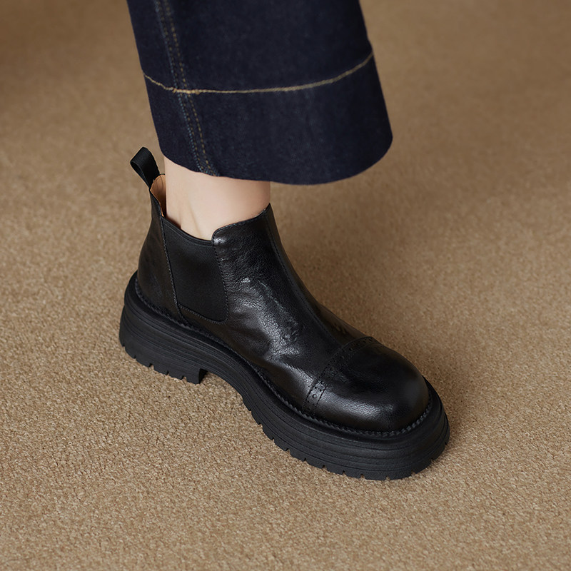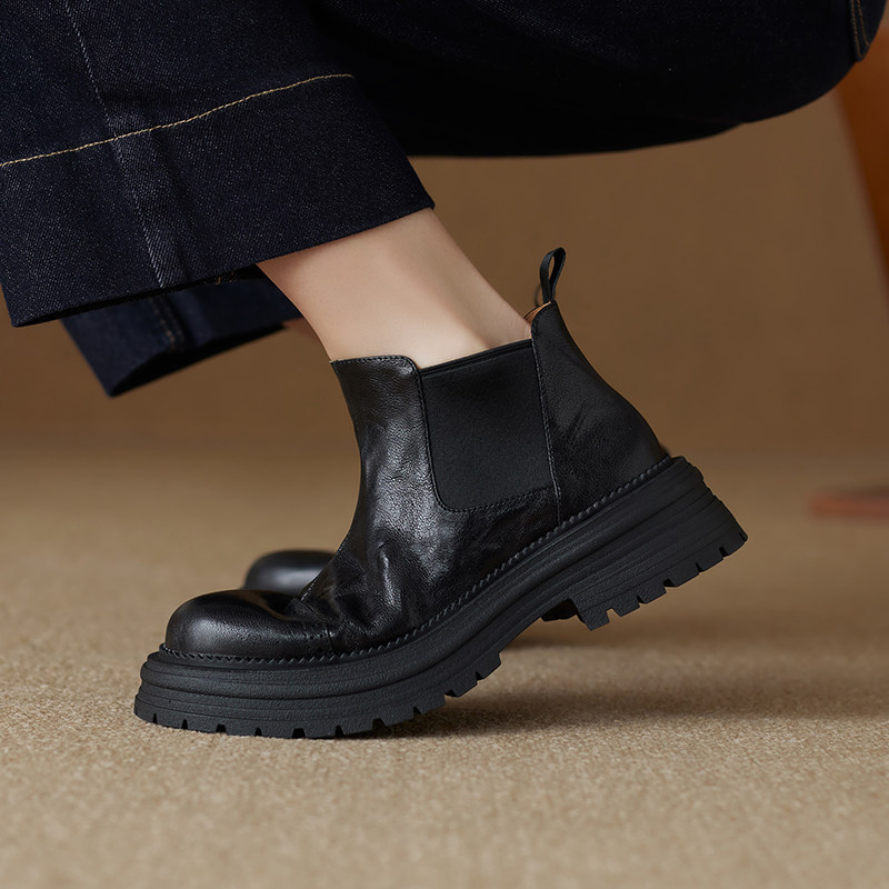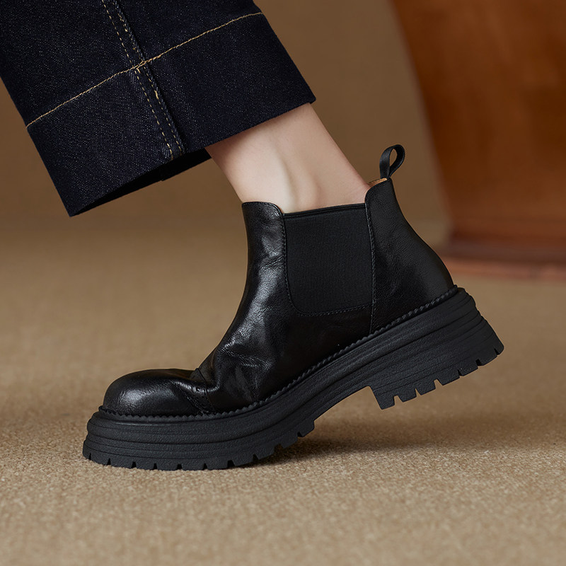 軟羊皮厚底英倫風切爾西靴2025秋冬新款圓頭真皮靴子短靴女馬丁靴