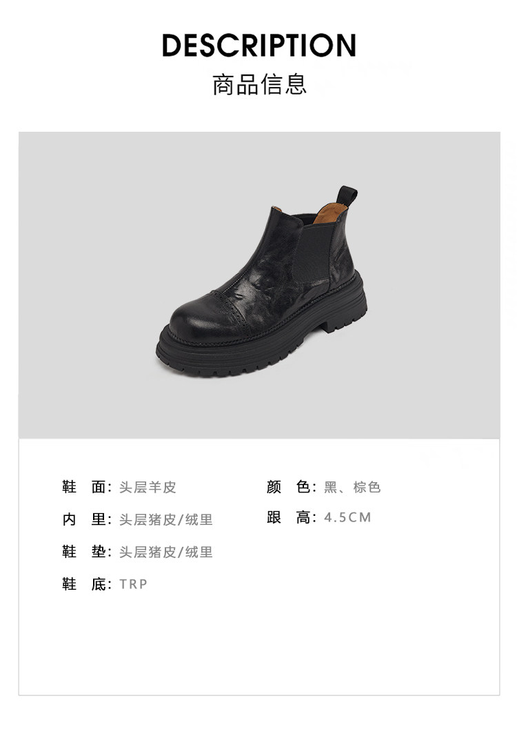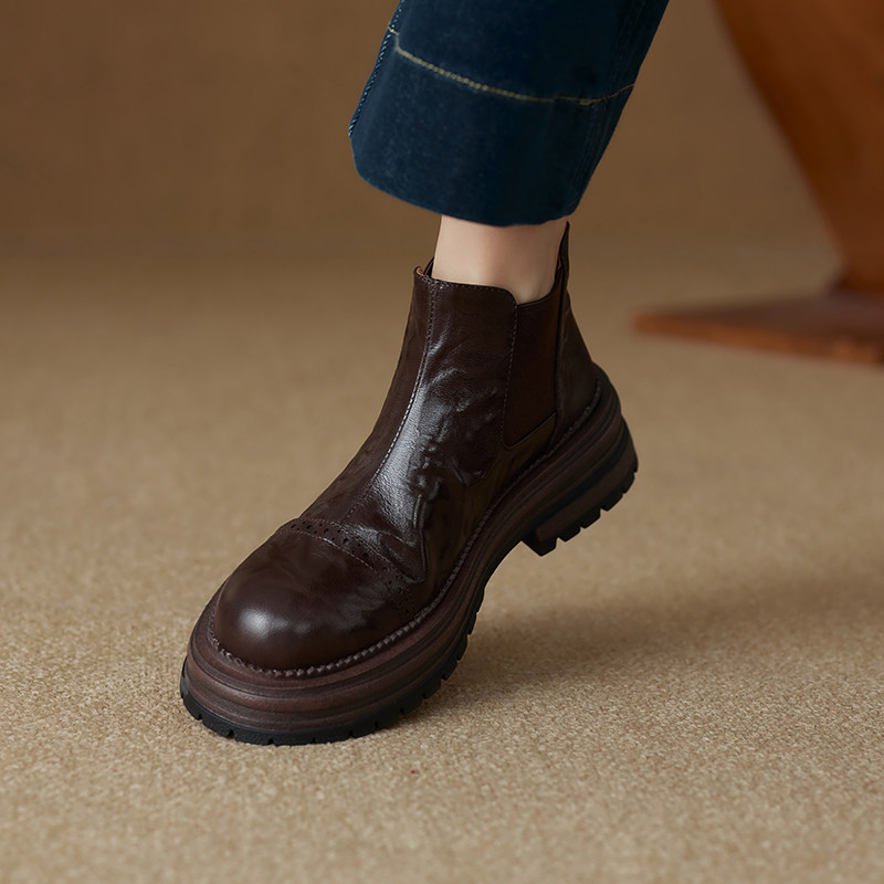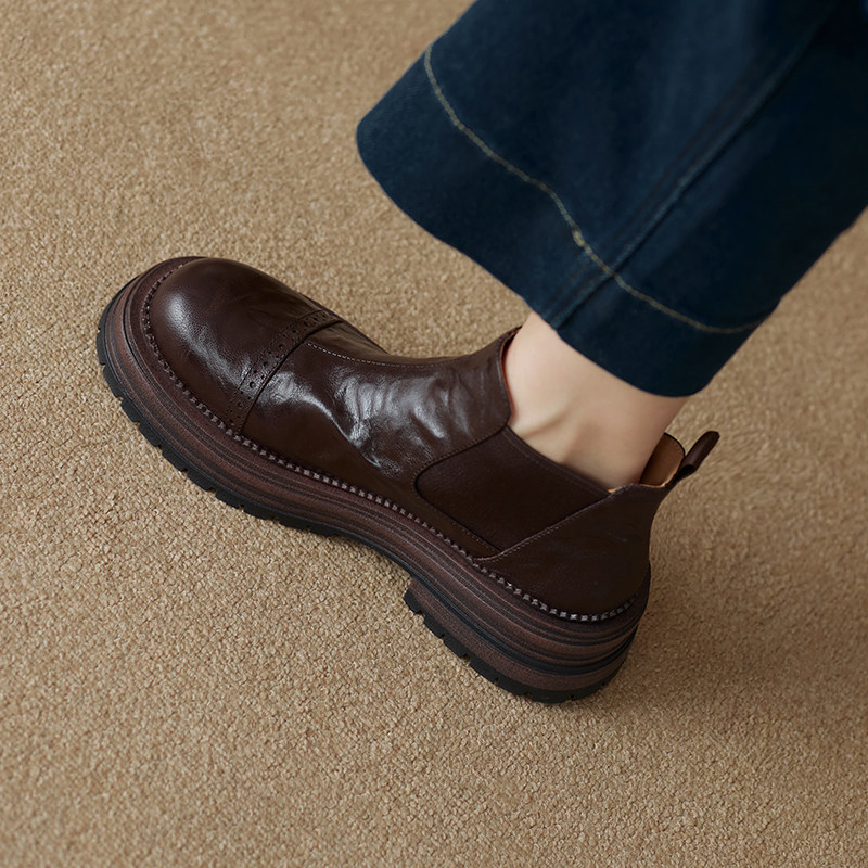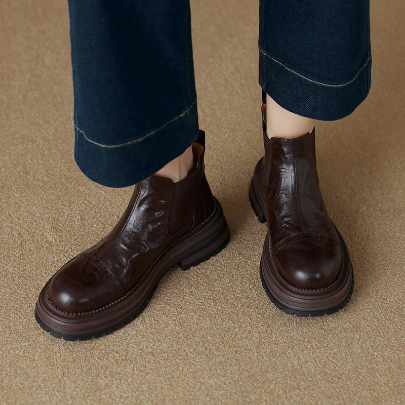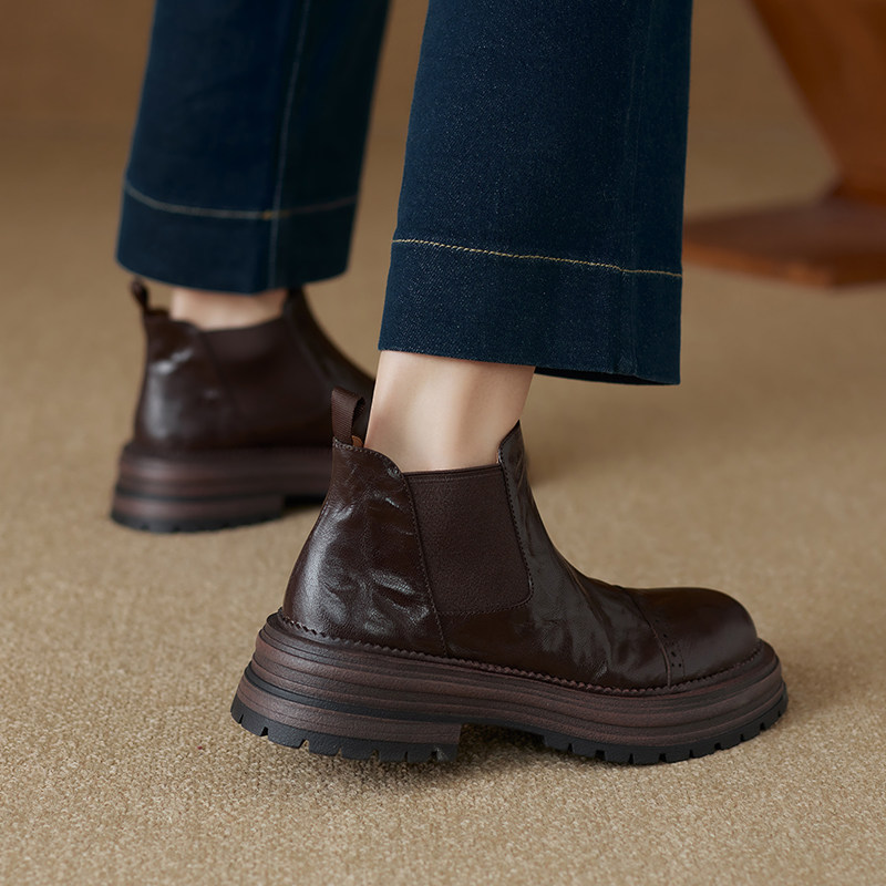 軟羊皮厚底英倫風切爾西靴2025秋冬新款圓頭真皮靴子短靴女馬丁靴