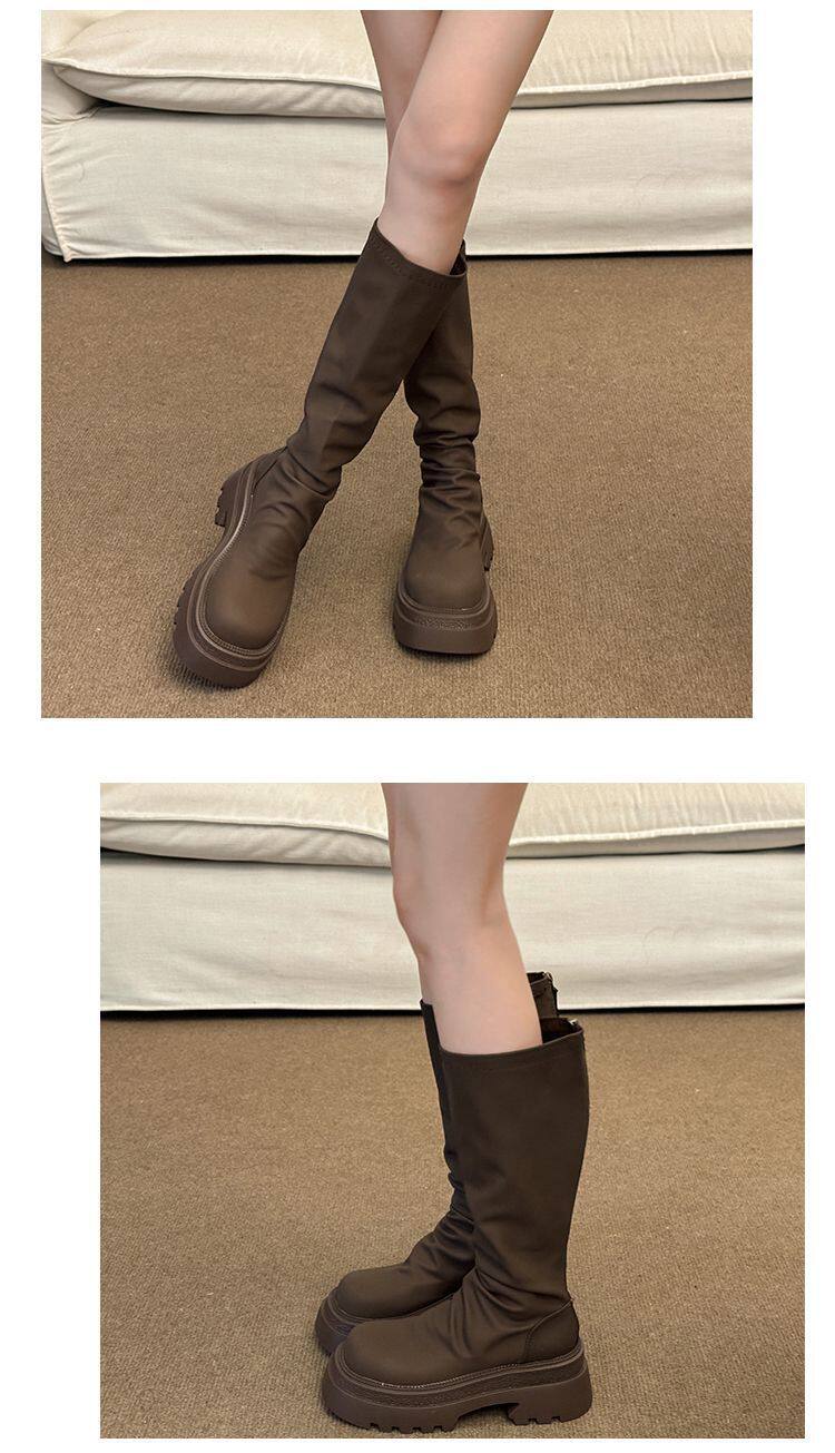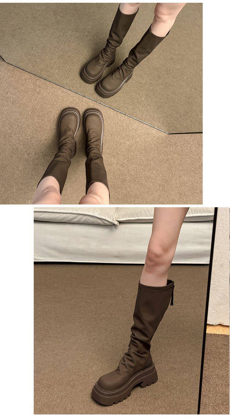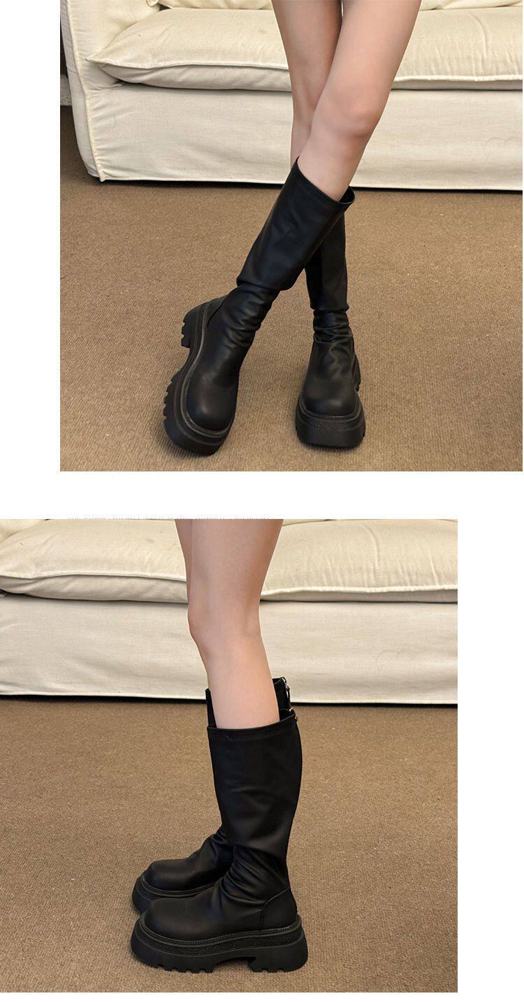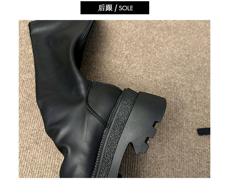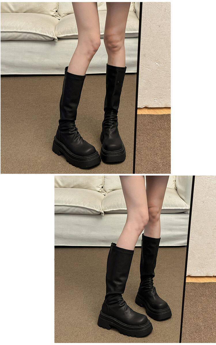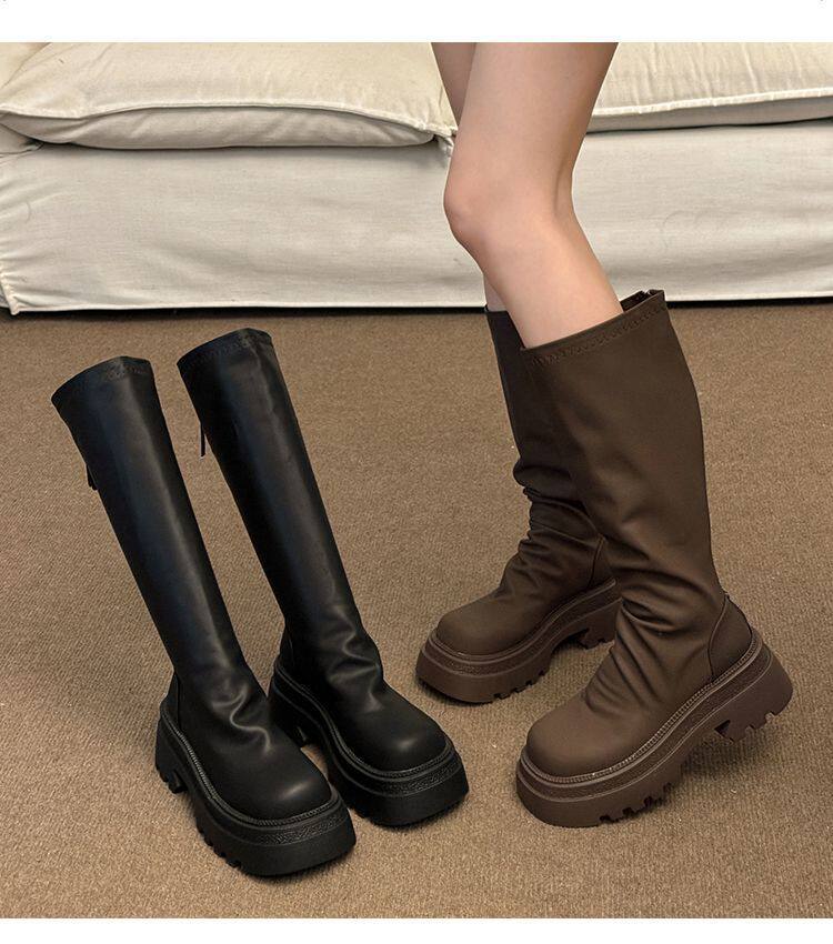 牛皮版~秋冬新款瘦瘦長筒靴小個子厚底騎士靴子不過膝堆堆長靴女