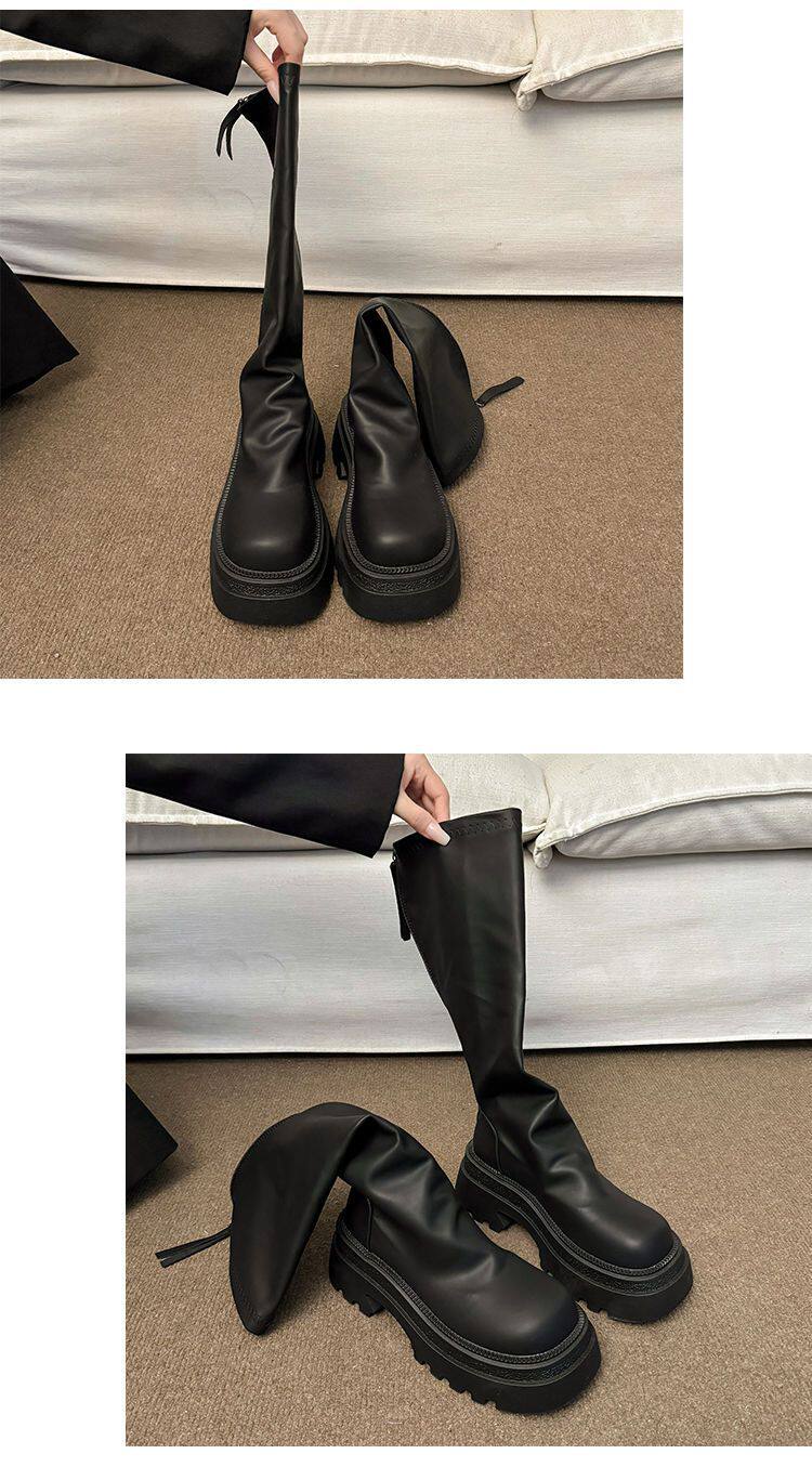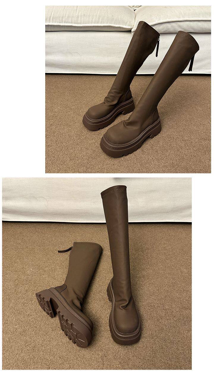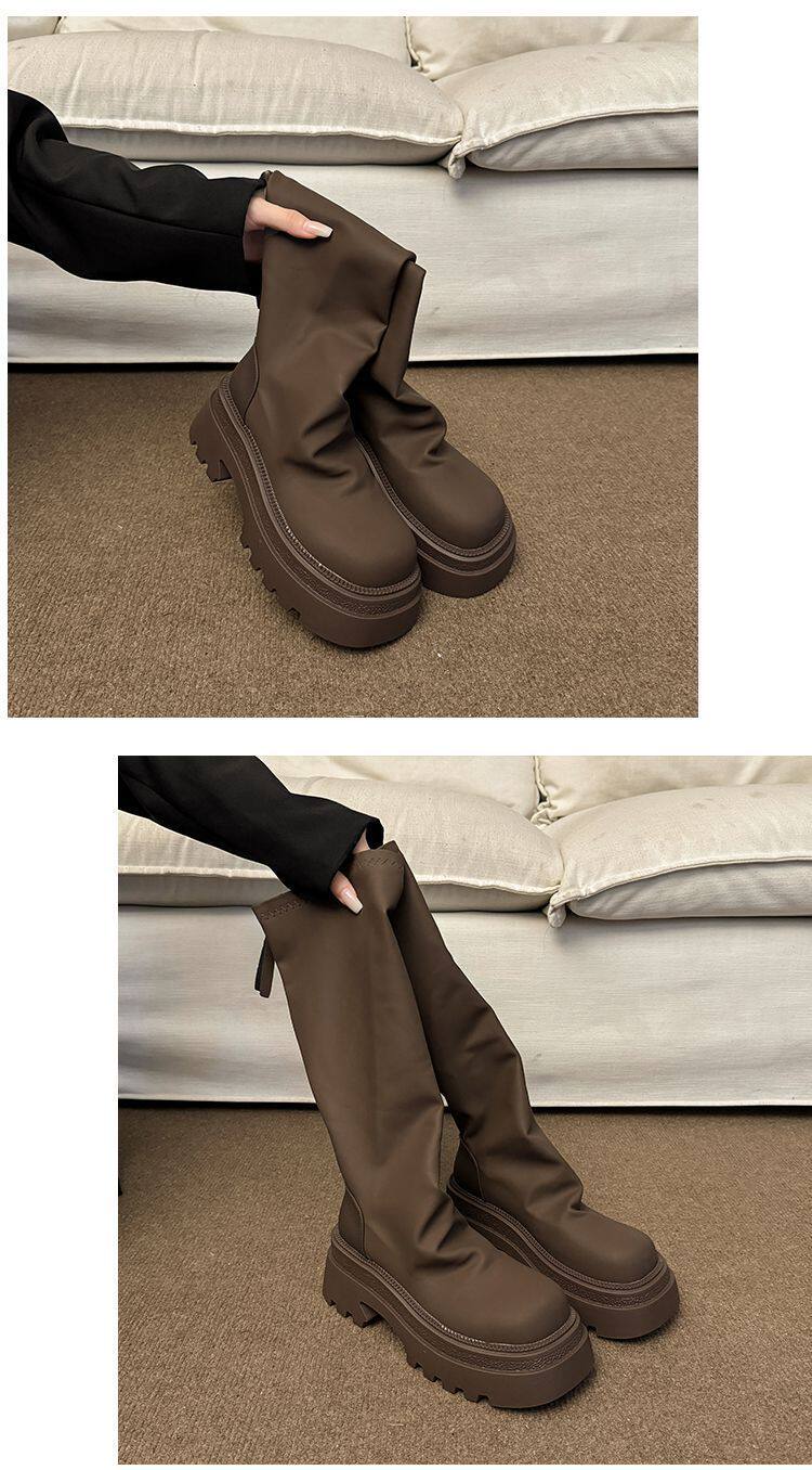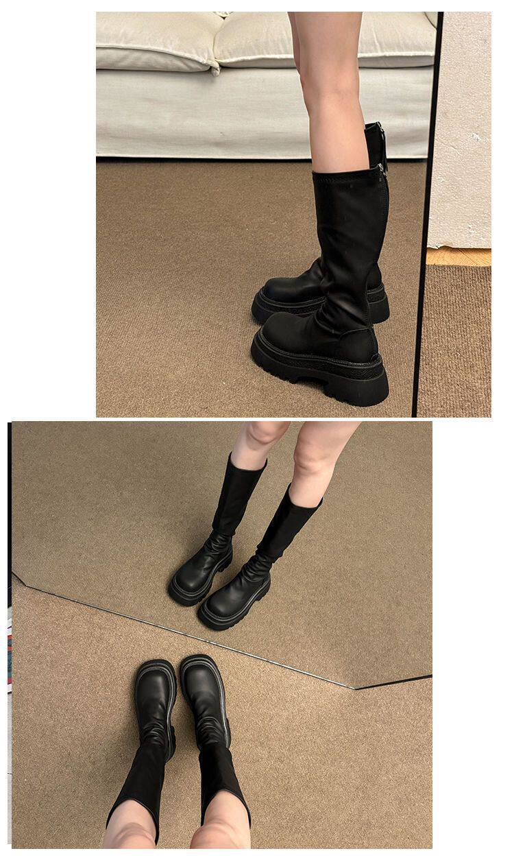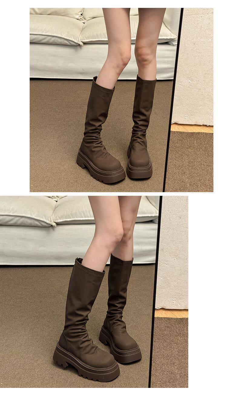牛皮版~秋冬新款瘦瘦長筒靴小個子厚底騎士靴子不過膝堆堆長靴女