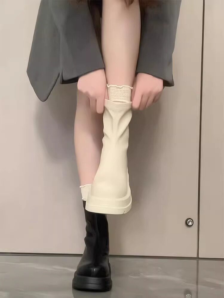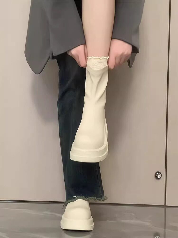 白色短靴女款春秋季厚底彈力馬丁靴粗跟圓頭切爾西靴後拉鍊瘦瘦靴