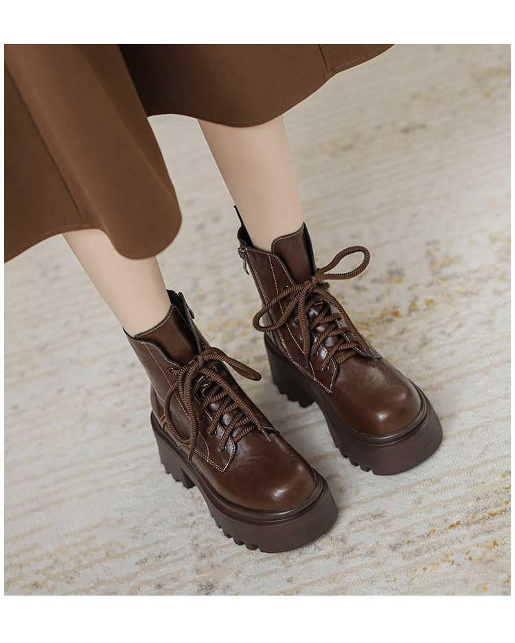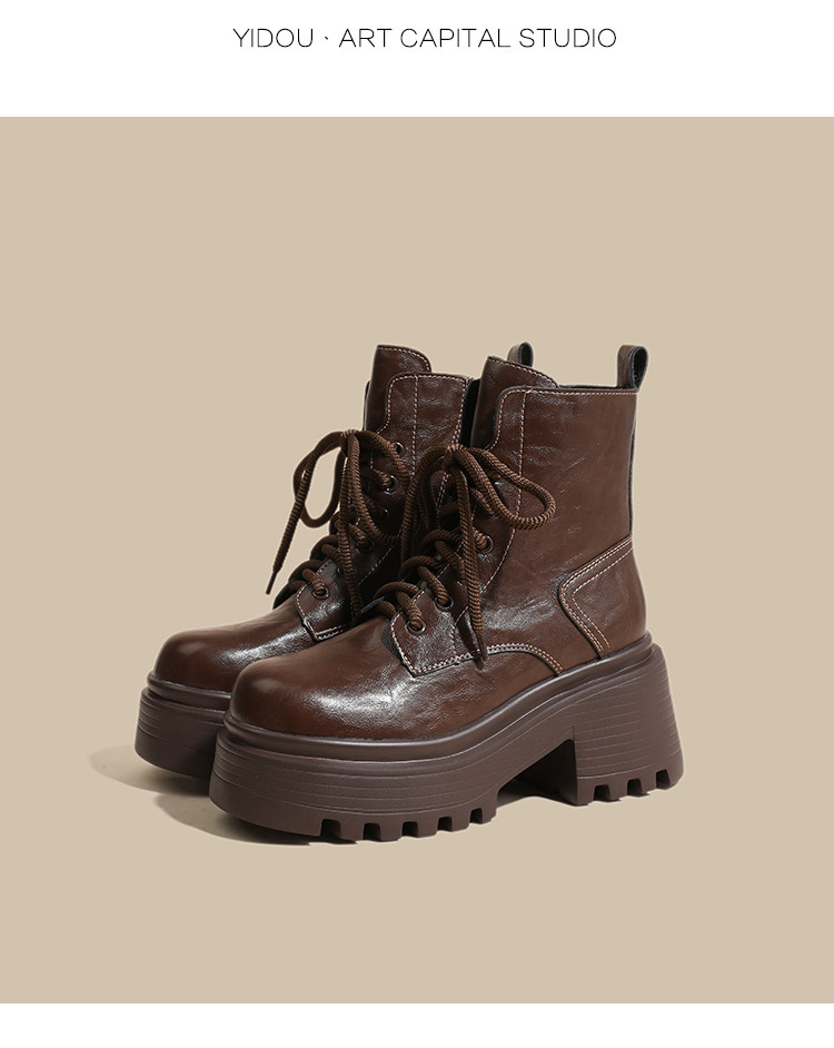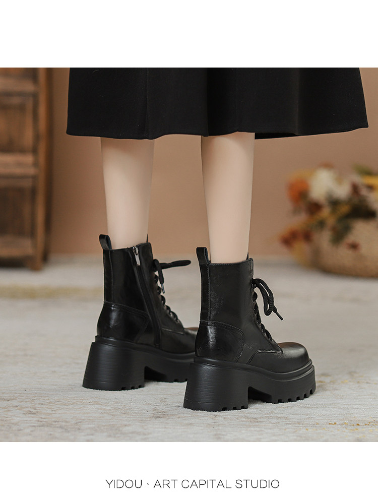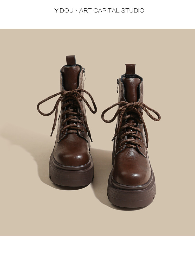 小個子真皮馬丁靴女秋冬季加絨厚底內增高女靴棕色爆款英倫風短靴