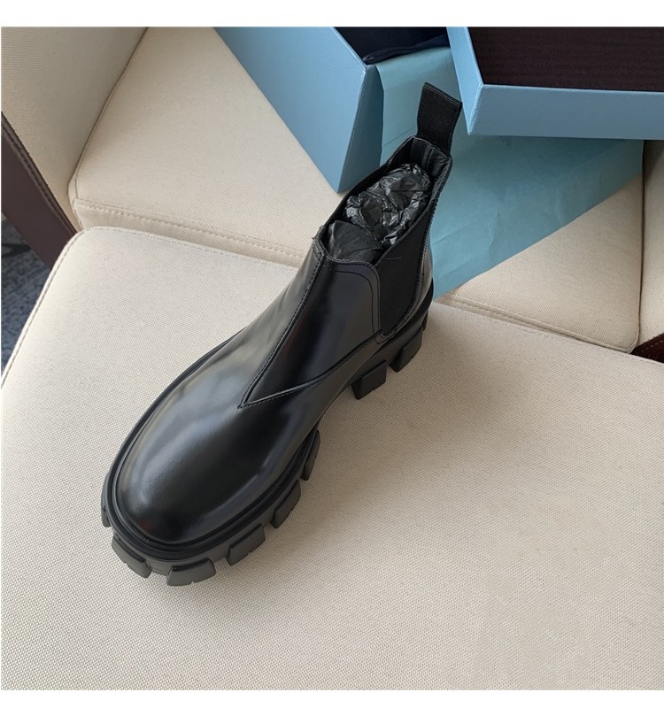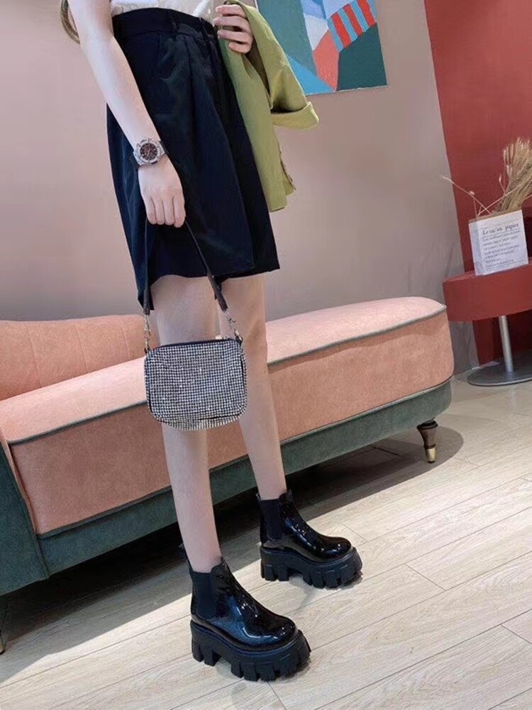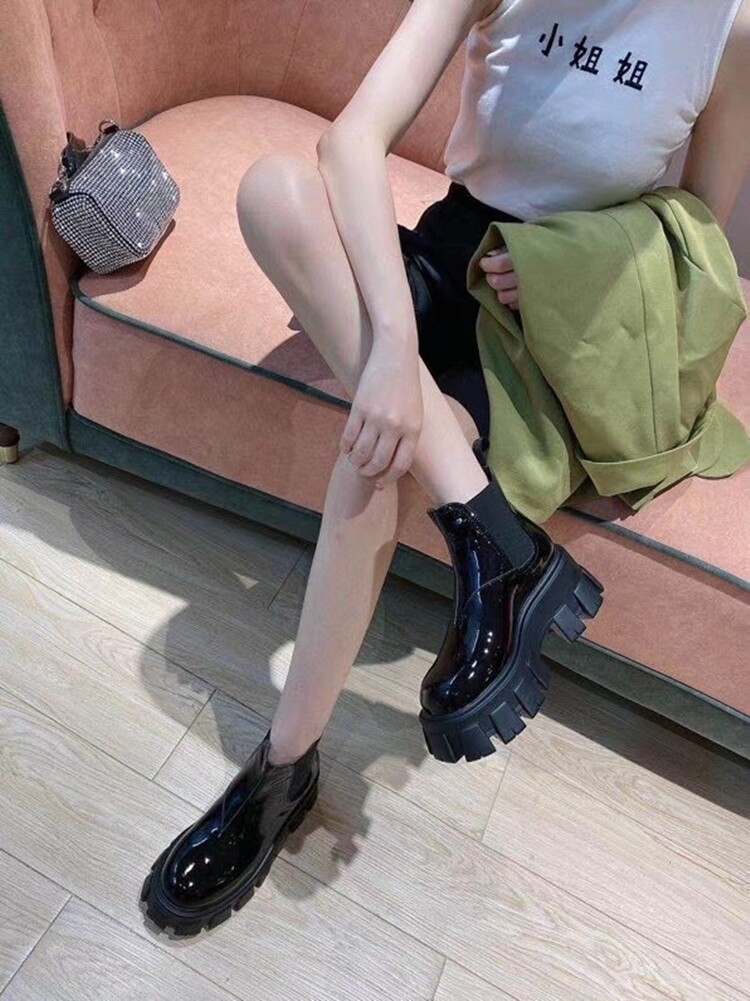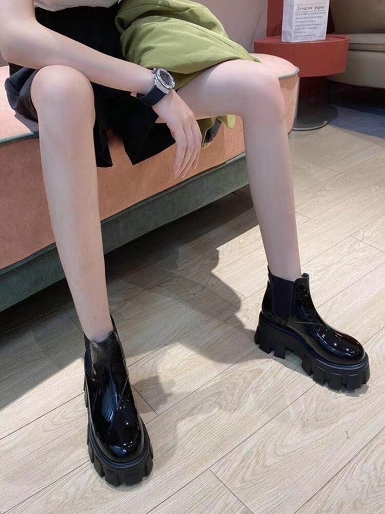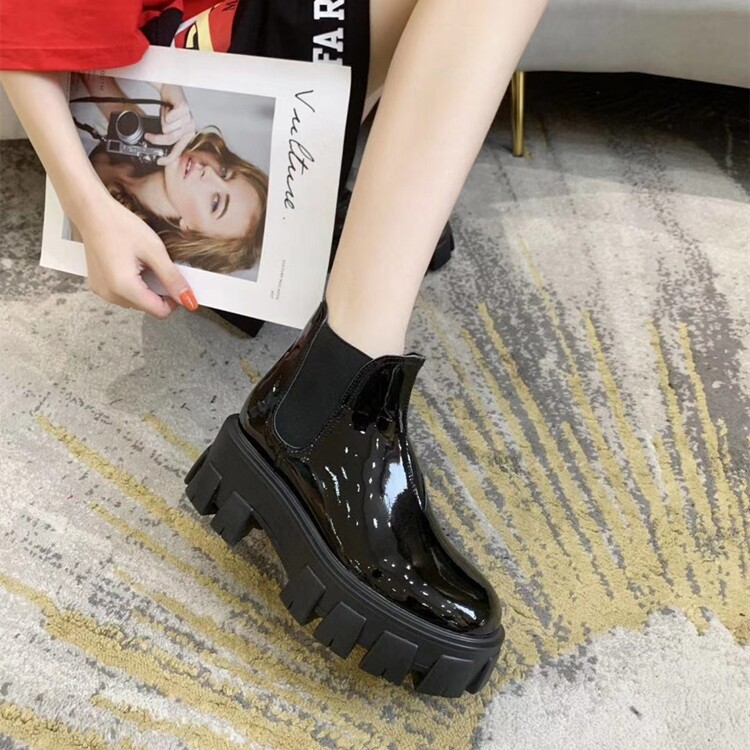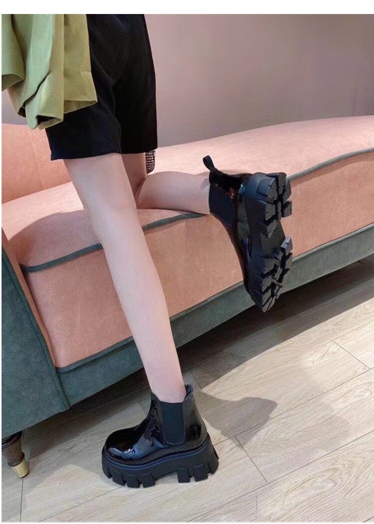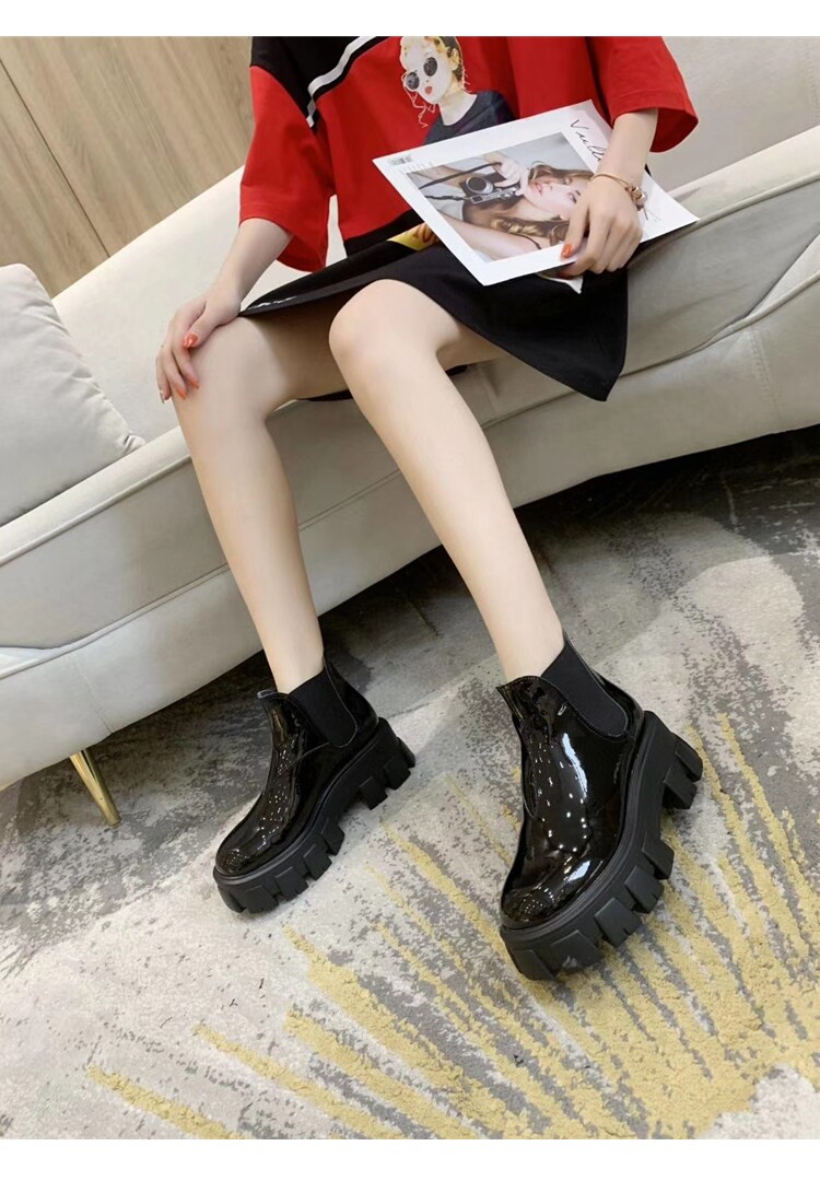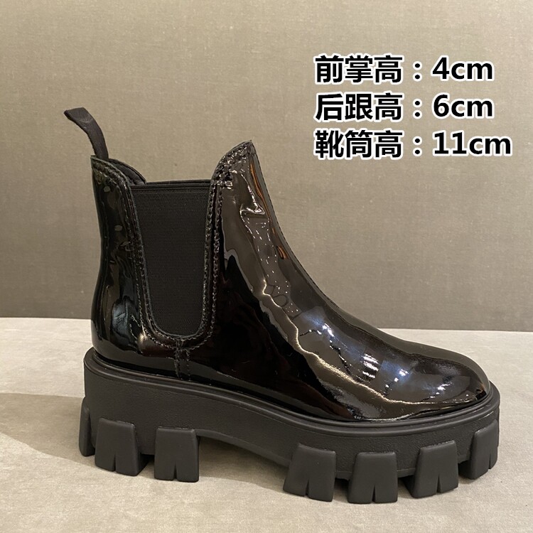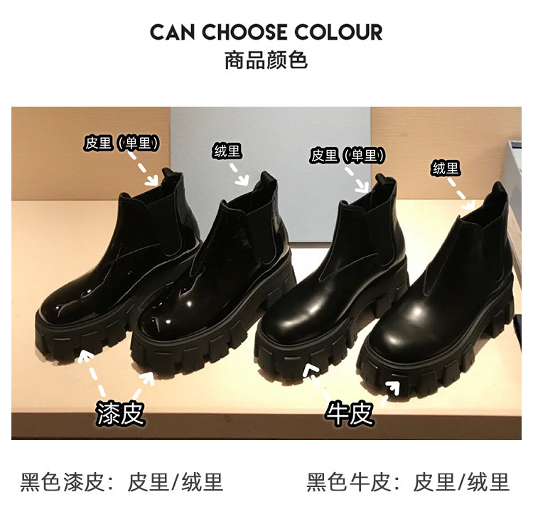 劉雯同款真皮切爾西短靴女2026新款冬菸筒松糕厚底增高馬丁靴加絨
