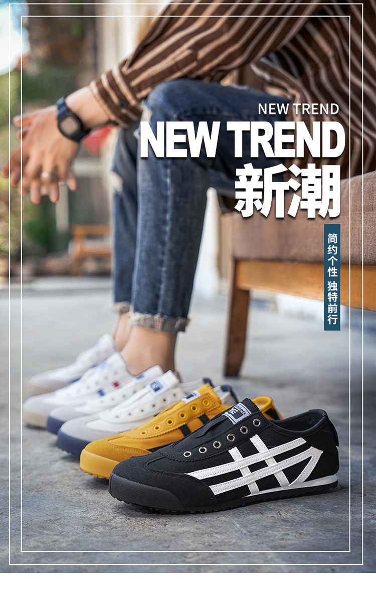Tige虎塚男鞋春夏休閒帆布鞋一腳蹬老虎鞋情侶板鞋男女生阿甘鞋N