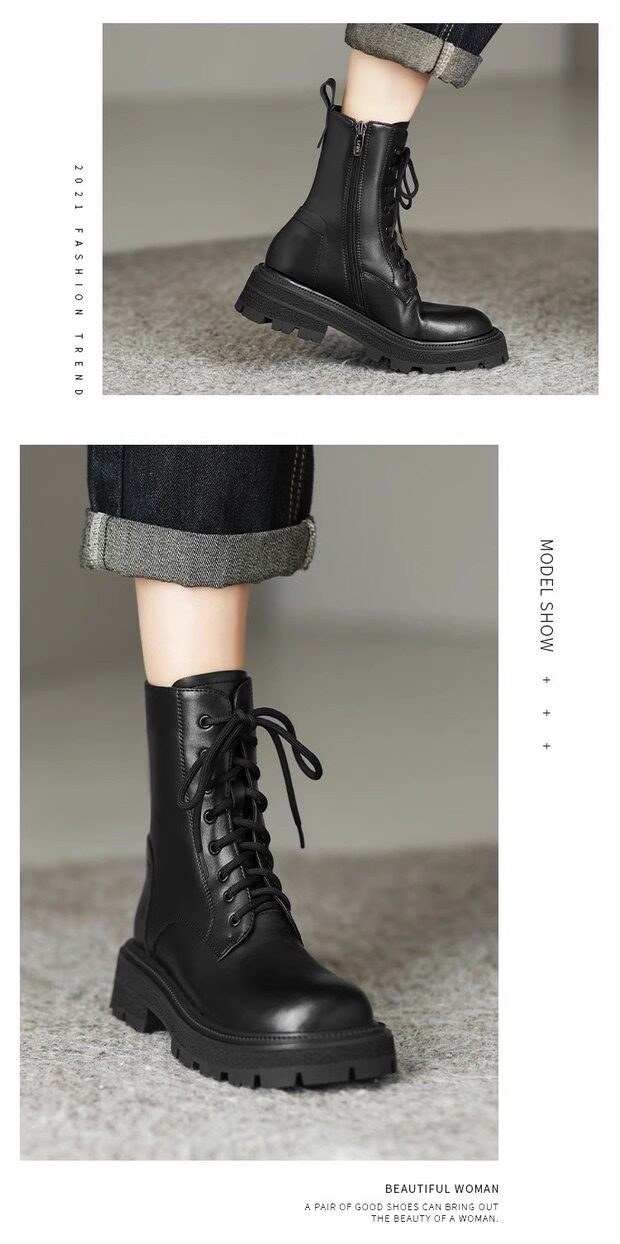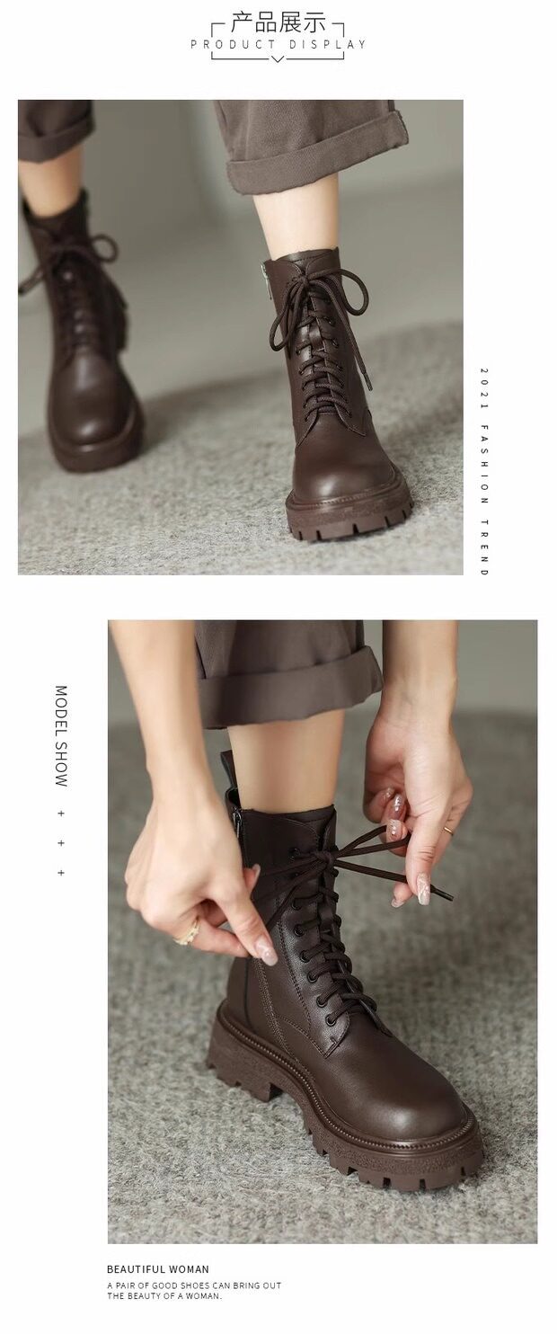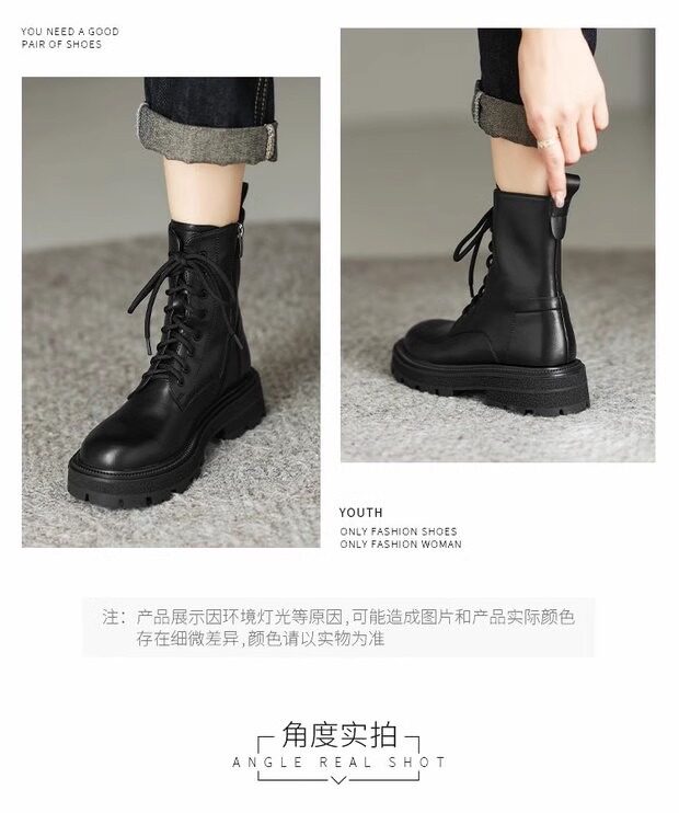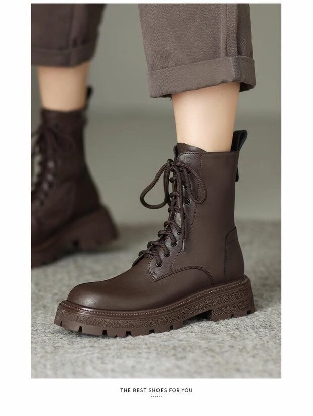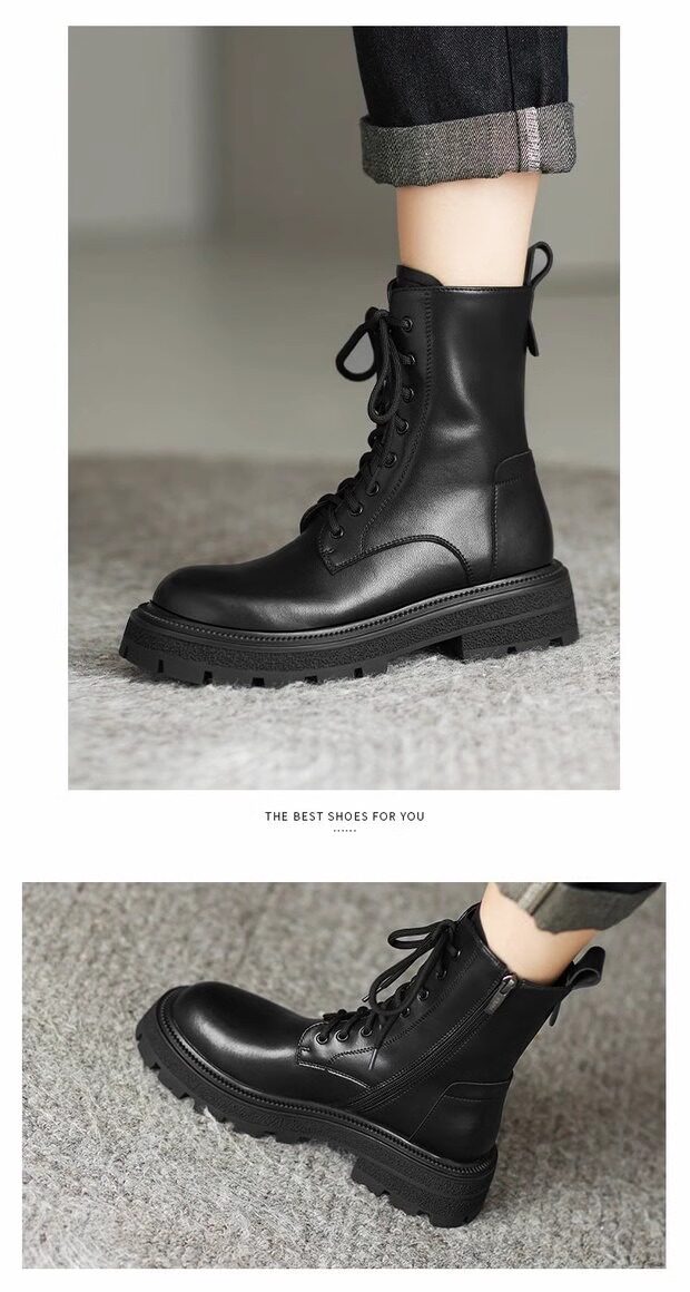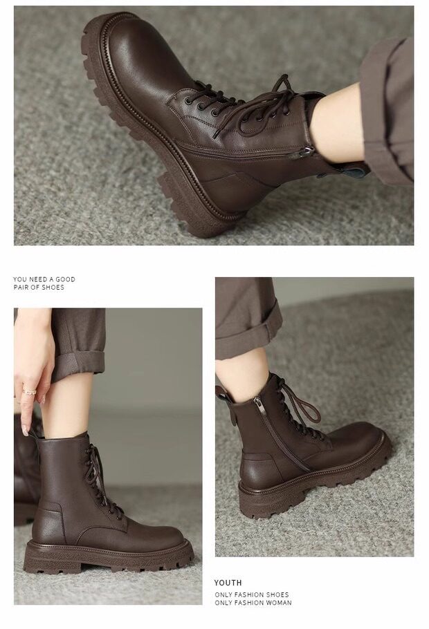 超軟全牛皮厚底馬丁靴女春秋單靴2025冬新款英倫風軟底系帶短靴絨