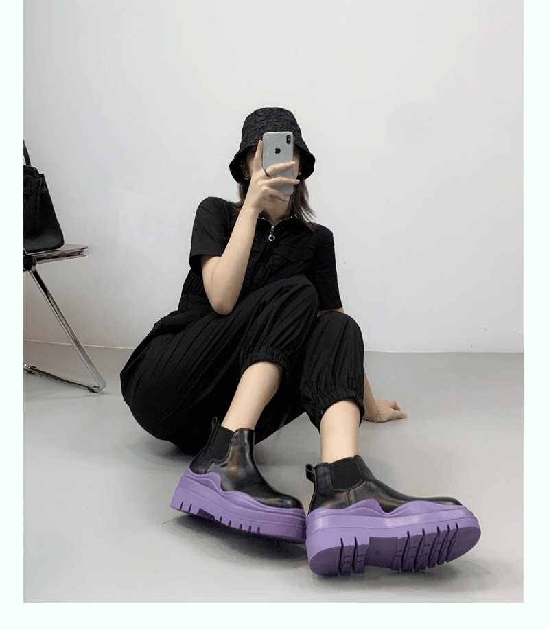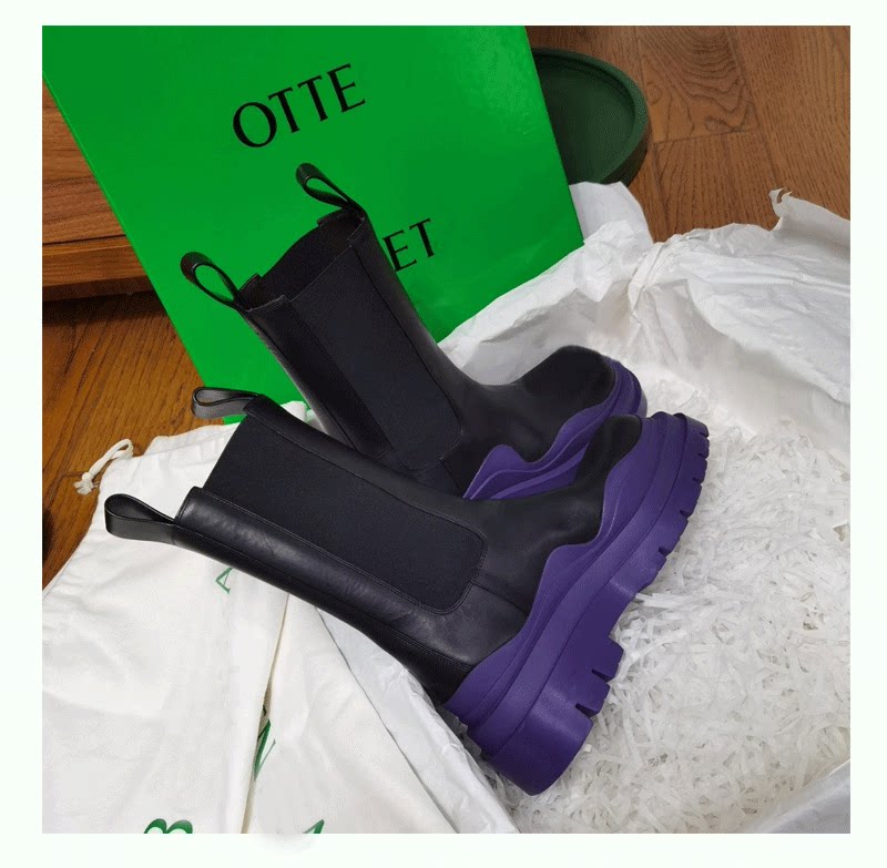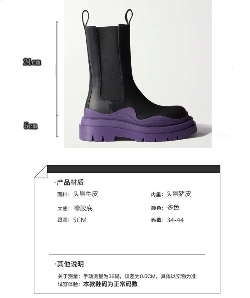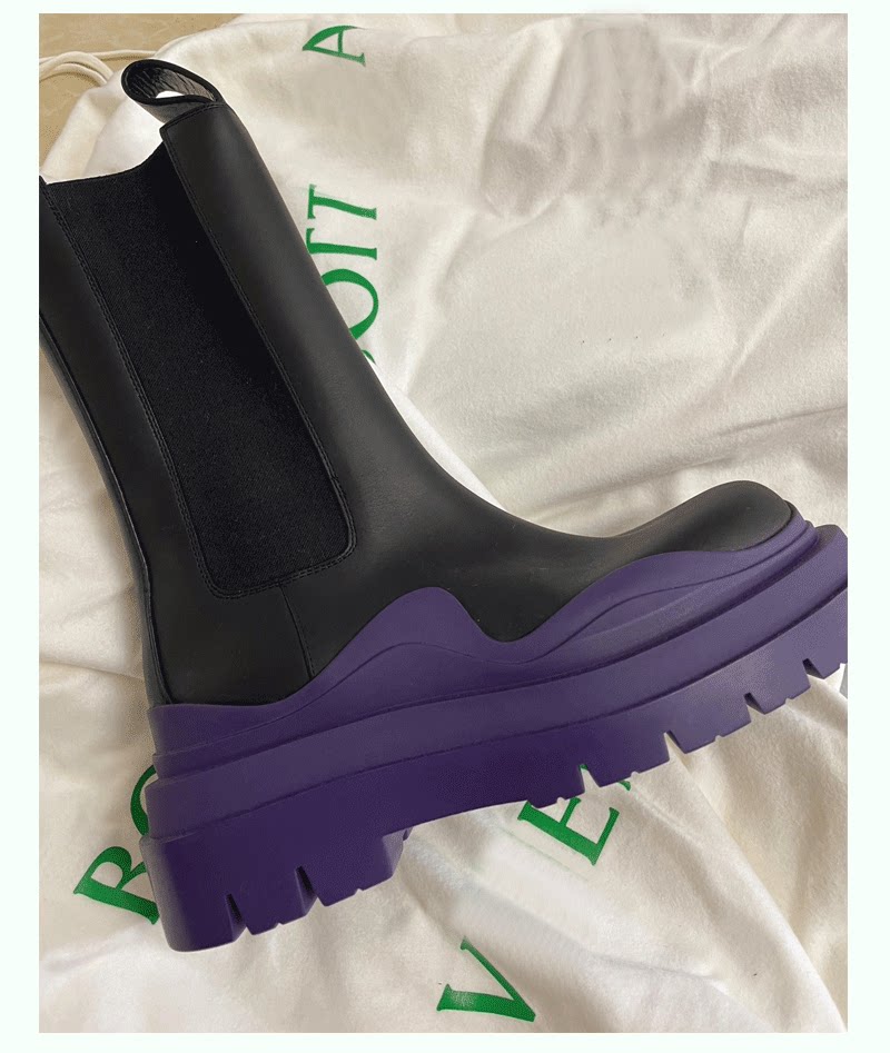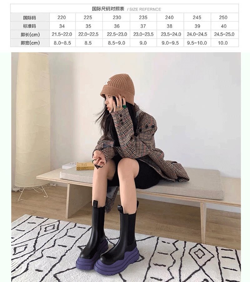 大碼菸筒靴女41-42中筒切爾西靴mona同款真皮厚底紫色馬丁靴