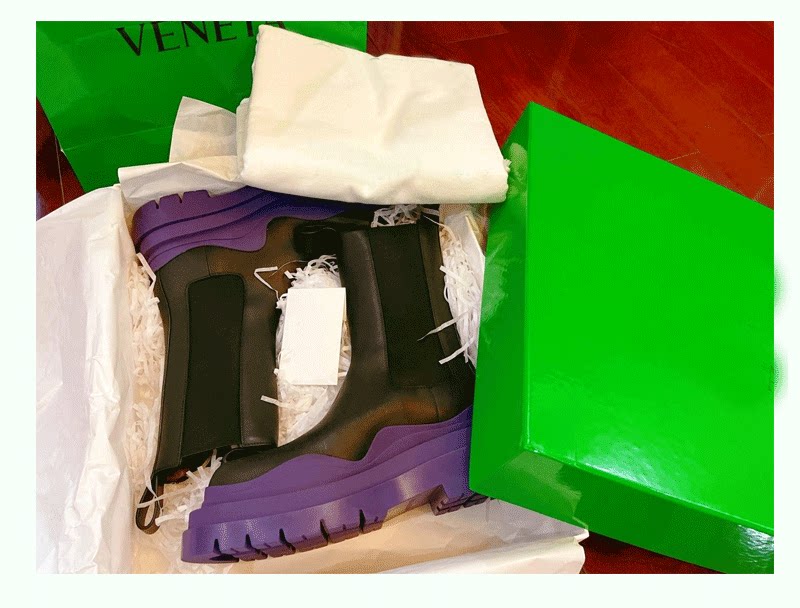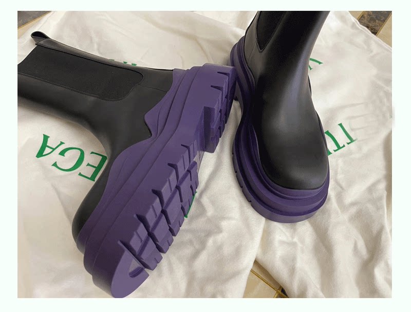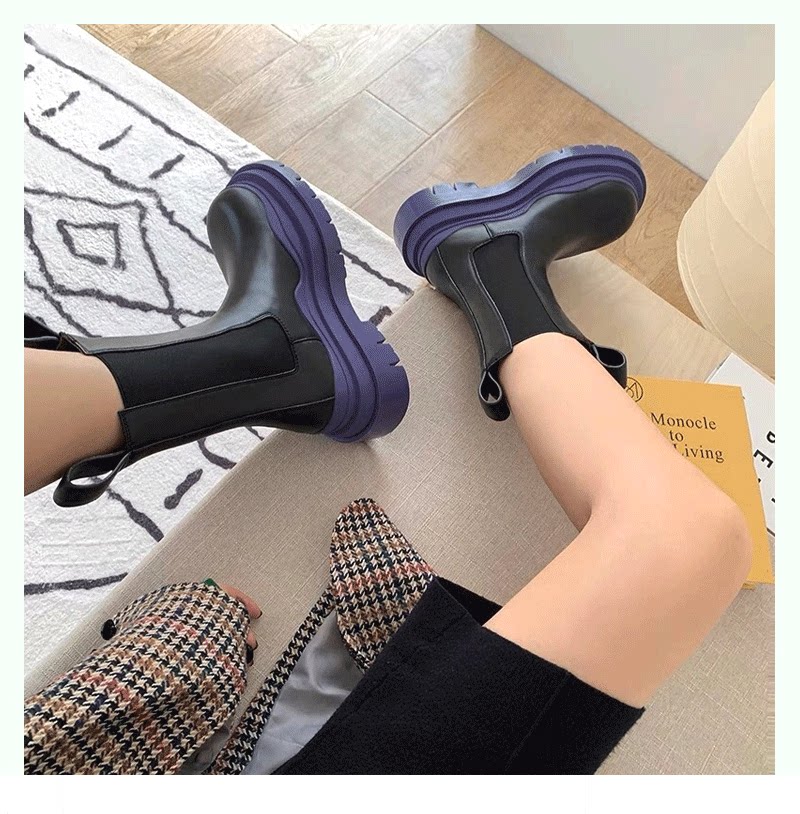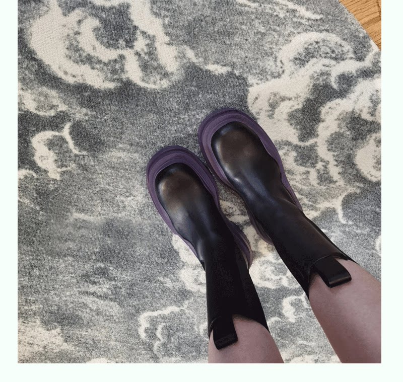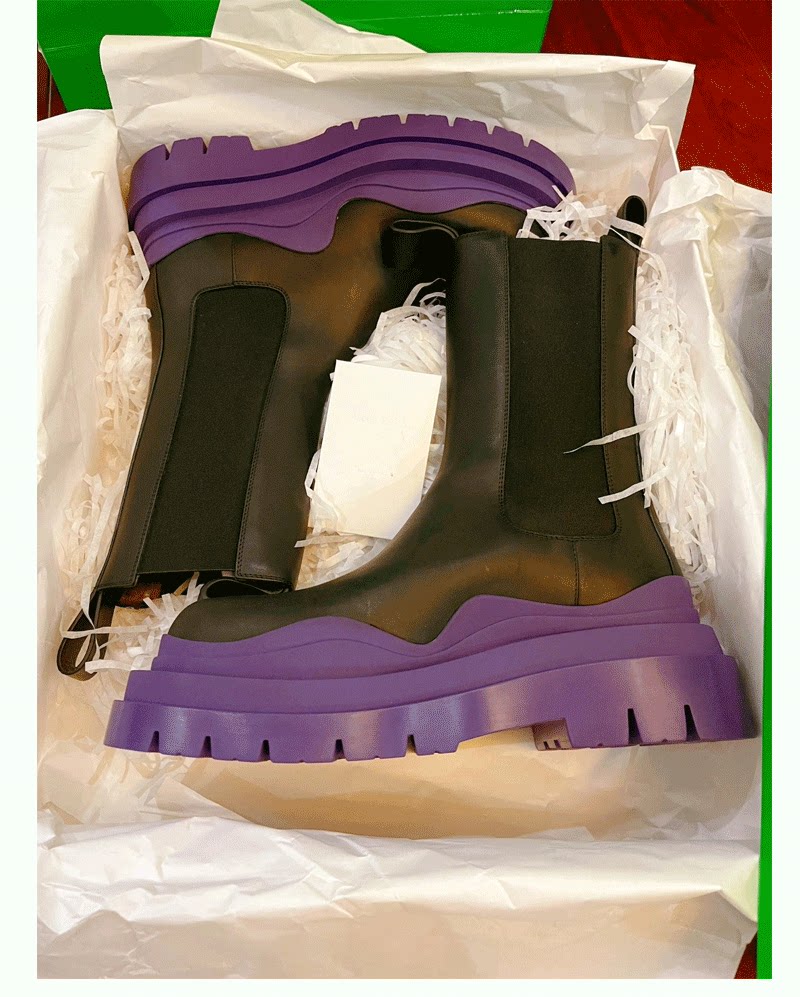 大碼菸筒靴女41-42中筒切爾西靴mona同款真皮厚底紫色馬丁靴