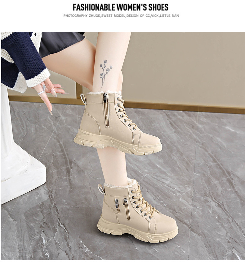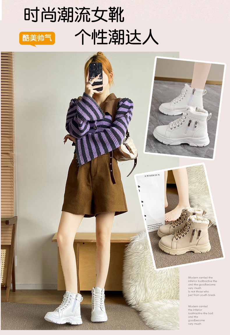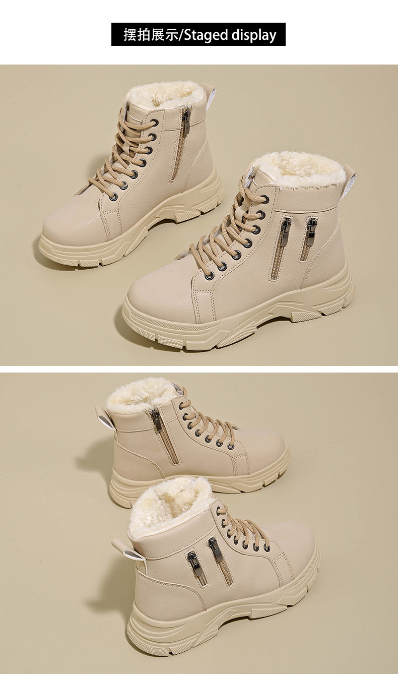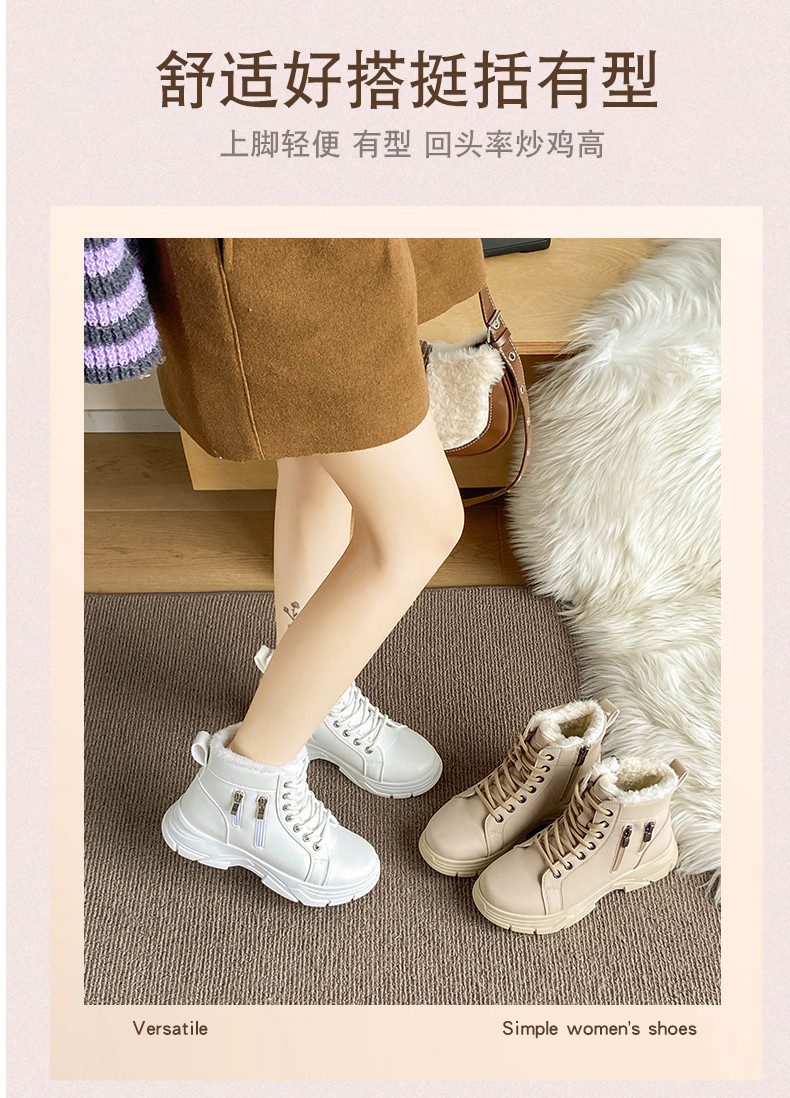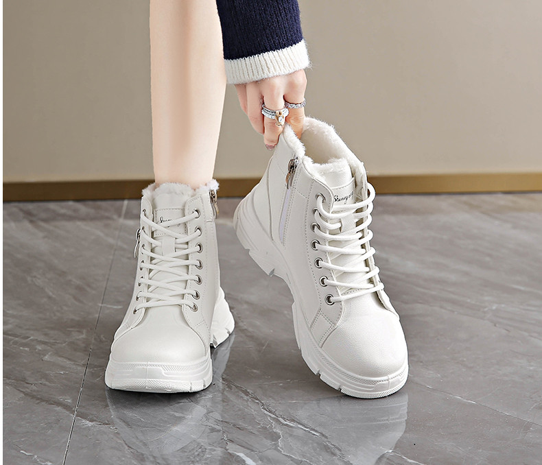 高幫運動鞋女2026新款秋冬季厚底加絨二棉鞋雪地靴保暖皮面馬丁靴