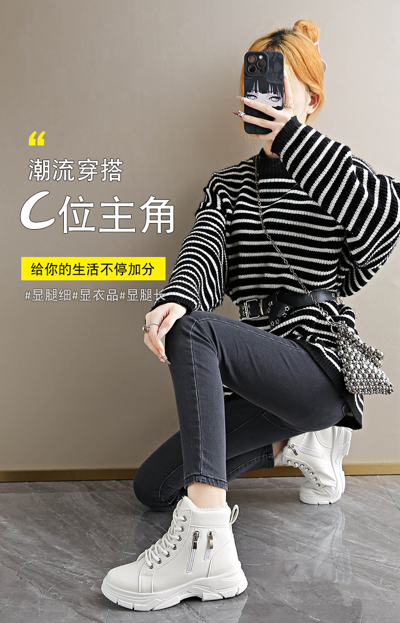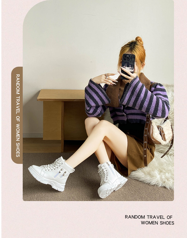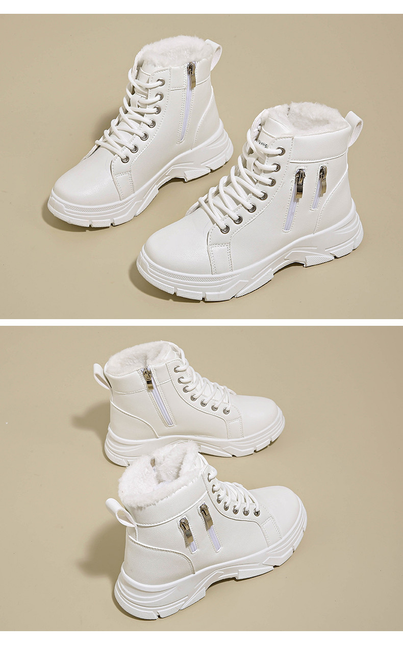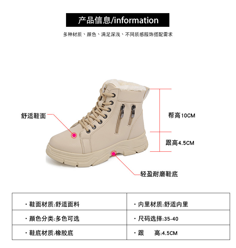 高幫運動鞋女2026新款秋冬季厚底加絨二棉鞋雪地靴保暖皮面馬丁靴